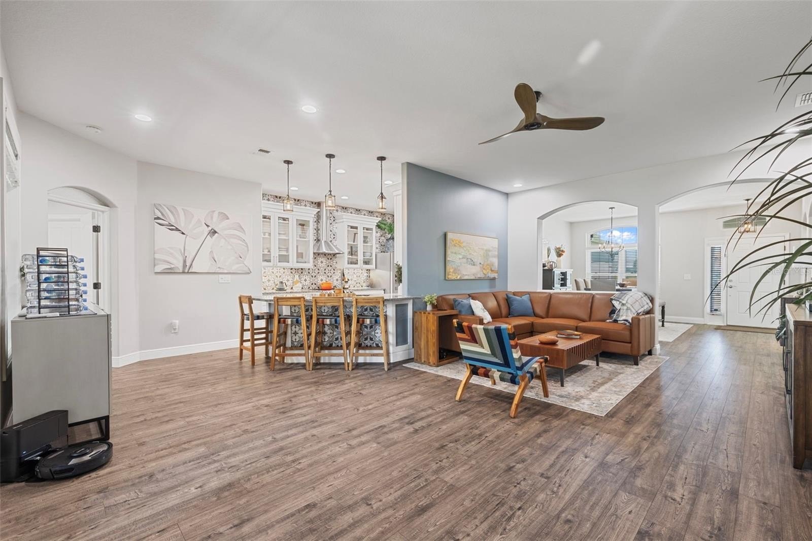This exquisite 4-bedroom, 2-bath home is the definition of move-in ready. Every detail—inside and out—has been thoughtfully and tastefully updated, both cosmetically and mechanically (AC 2025, Roof 2022, Water Heater 2022, Epoxy Garage floor 2025). From the moment you walk in, it feels that the home is staged however, it is a beautifully lived-in space, meticulously cared for and maintained with pride. The versatile three-way split floor plan offers both privacy and connection, perfectly suited for modern living. A flex space provides endless possibilities—ideal for a home office, den, or creative retreat. Throughout the home, flooring has been upgraded with only two rooms featuring carpet, ensuring both comfort and easy maintenance. At the heart of the home lies a masterful kitchen, where granite countertops, glass-front cabinets, and a hooded stove create a space that is as beautiful as it is functional. Every element has been carefully chosen to inspire both everyday cooking and memorable gatherings. The primary suite feels like a private sanctuary. Recently updated, the ensuite bath features dual sinks and vanities, a separate shower and soaking tub, and a zen-like design that invites you to unwind and escape from the day. The primary closet is masterfully designed, offering both style and exceptional organization. Step outside to a beautifully tiled exterior patio, the perfect place to relax or entertain in style. Beyond its beauty, this home offers peace of mind with major systems recently updated, including the roof, A/C, water heater, and garage floor—all reflecting the same meticulous care found throughout. The design blends elegance and warmth, creating an inviting atmosphere that feels both refined and comfortable. Every finish, fixture, and surface has been chosen with intention, making this home truly stand out from the rest. With no CDD and a price positioned to move, this exceptional property offers not just a home—but a lifestyle—where quality, style, and peace of mind come together effortlessly.