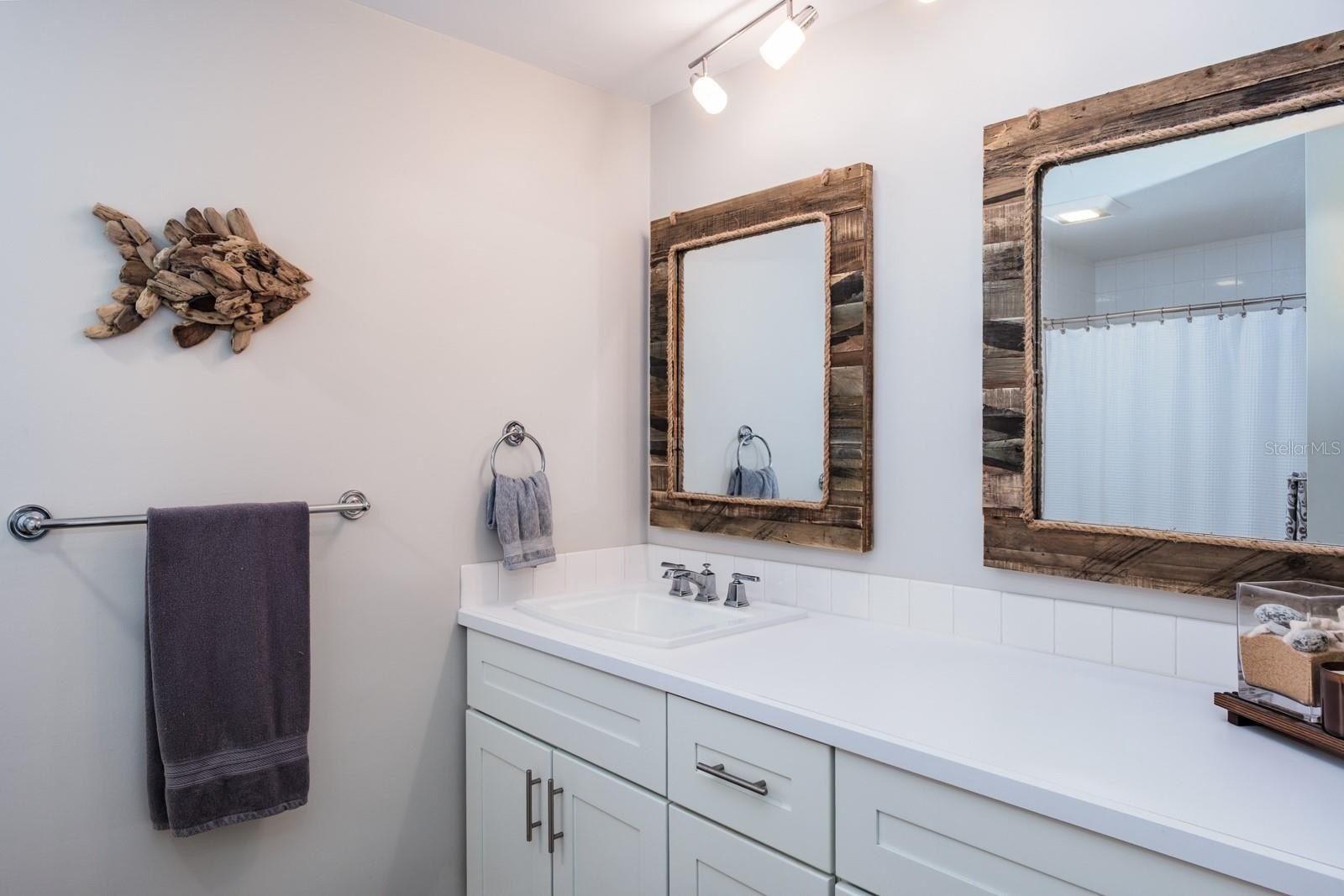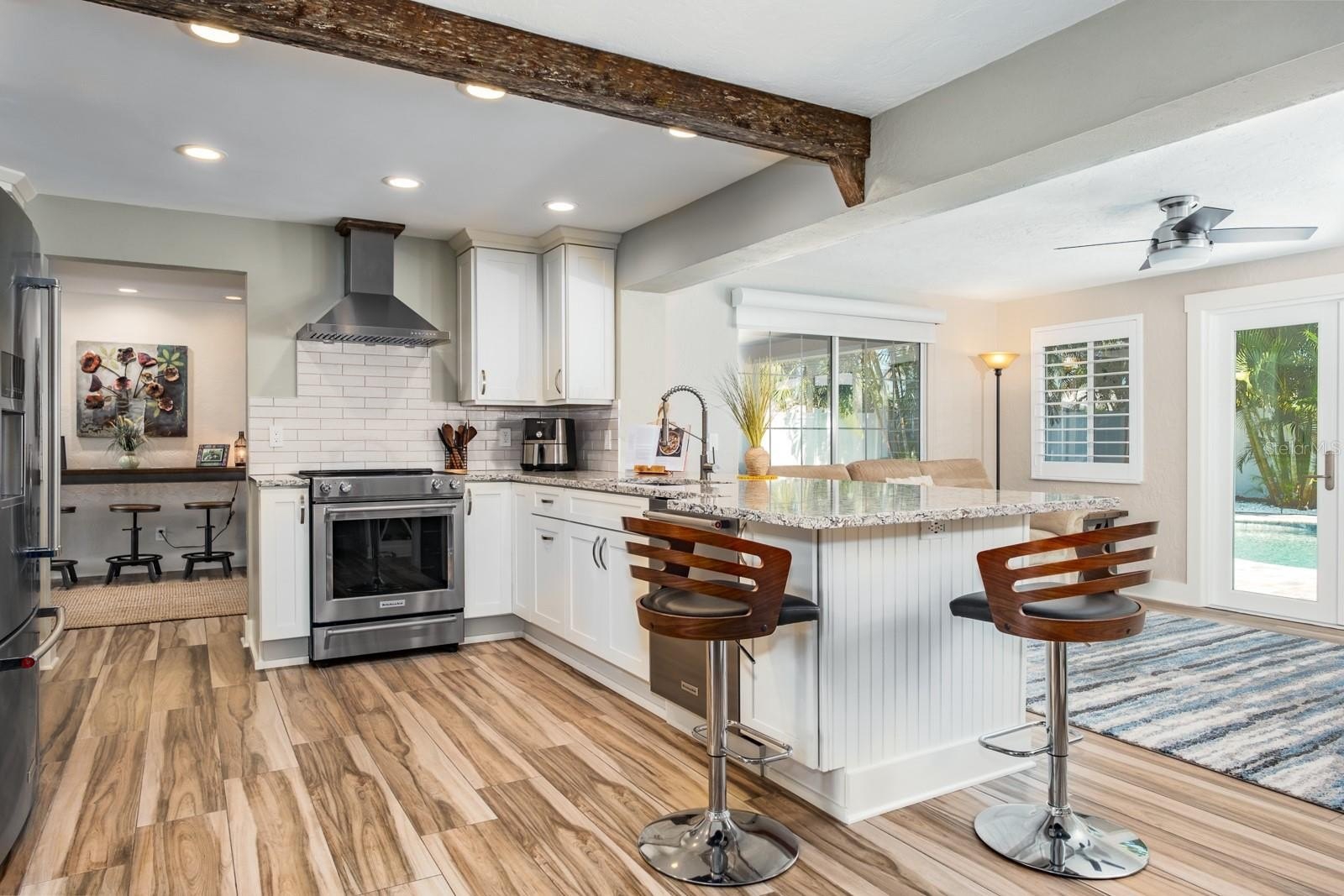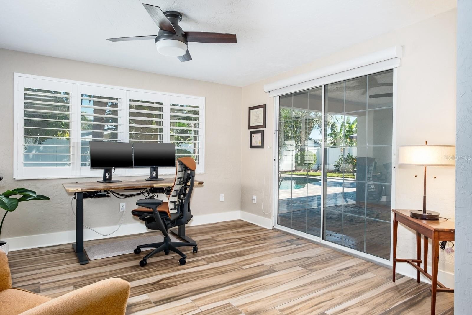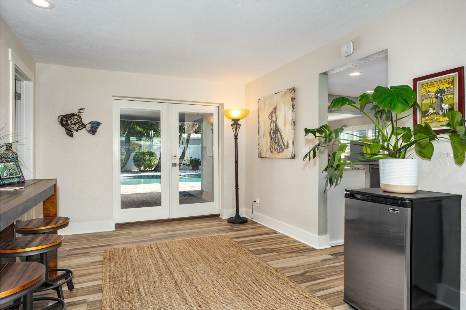 Welcome to the secluded Island of Vina Del Mar! This 2BR/2BA coastal-inspired home in the coveted Vina Del Mar neighborhood offers light-filled, open-concept living with views of the landscaped backyard and saltwater pool. The updated kitchen features custom quartz countertops, all-wood cabinetry & pantry with soft-close drawers, and a striking 100-year-old cypress beam with matching accent trim. The split floor plan includes a spacious primary suite with an en suite bath, a walk-in closet with custom shelving, and a versatile office/den/nursery space with pool access. The guest suite offers a built-in closet and adjacent bath, with a custom pocket door for added privacy. Two distinct living areas provide flexibility—one for larger gatherings, the other is open to the kitchen with direct pool access. The covered lanai offers shade while overlooking the private backyard, with an adjacent lounge area ideal for cooling off indoors. Meticulously upgraded and kept, the home features a new roof (2025), pool pump (2024), water purification & filtration system (2022), water heater (2020), Air Knight purification system (2017), custom Pebble-finish saltwater pool (2017), wood plank-style porcelain flooring, plantation shutters, Nest smart thermostat & smoke/CO detectors, updated electrical panel, newer windows and doors, fresh paint, and more. The two-car garage provides additional storage, while underground power lines preserve unobstructed views. Nearby Vina Del Mar Park offers a playground, dog park, pickleball, tennis, and basketball courts. Cruise down to the beach, restaurants, shops and entertainment in famous Pass-A-Grille or even a short drive to the vibrant Downtown St Pete for nightlife and the St Pete Pier. Don’t miss your chance to live the Salt Life!