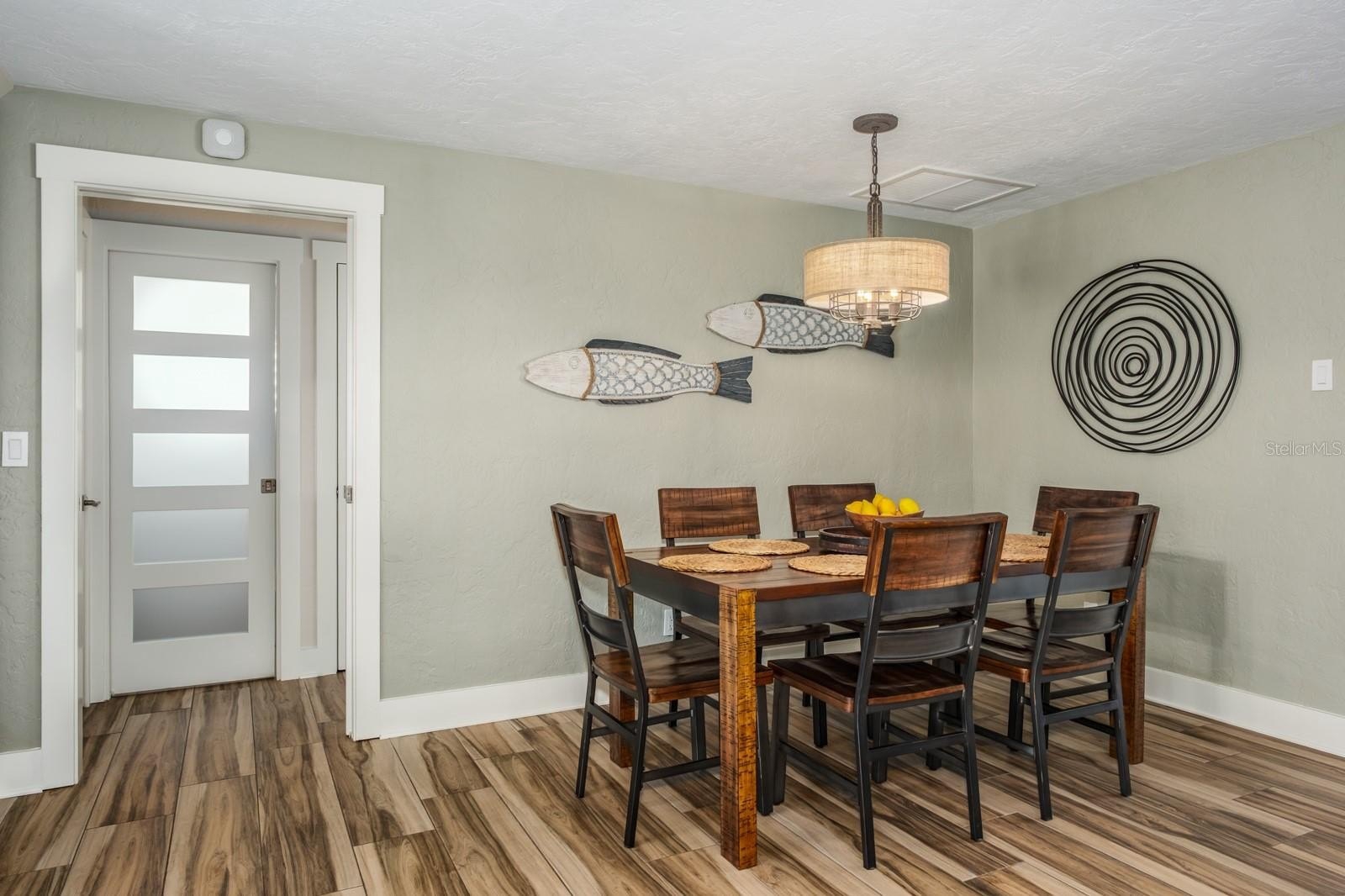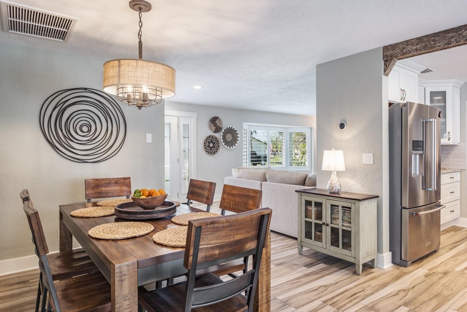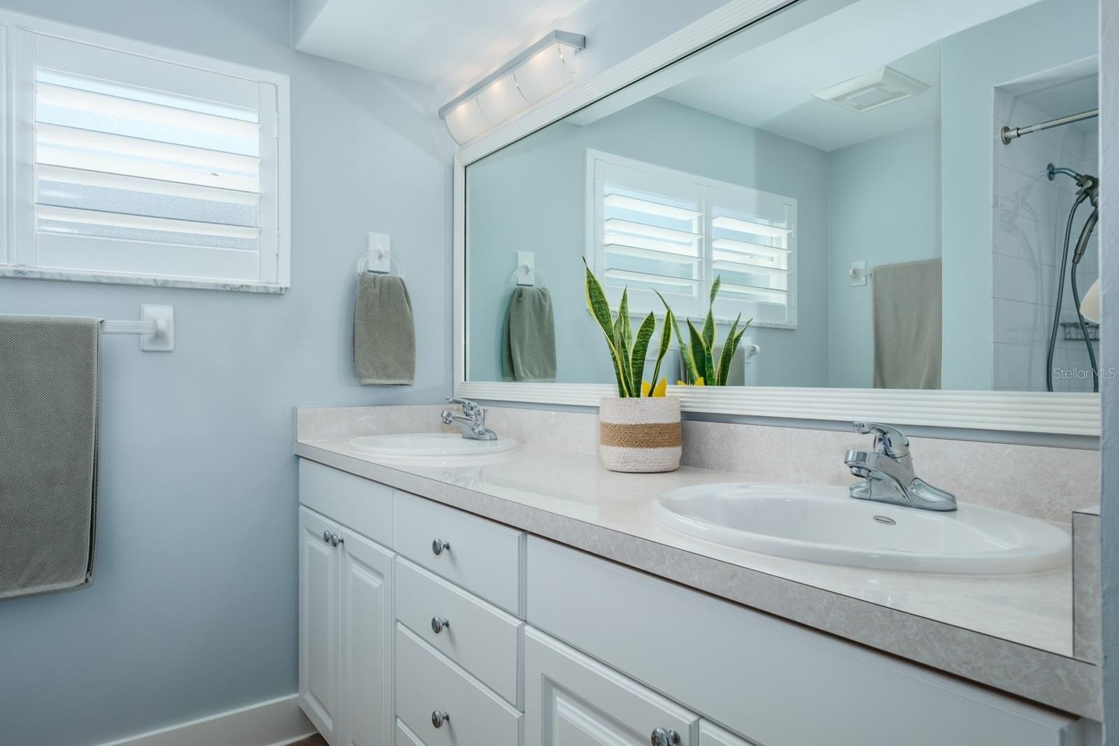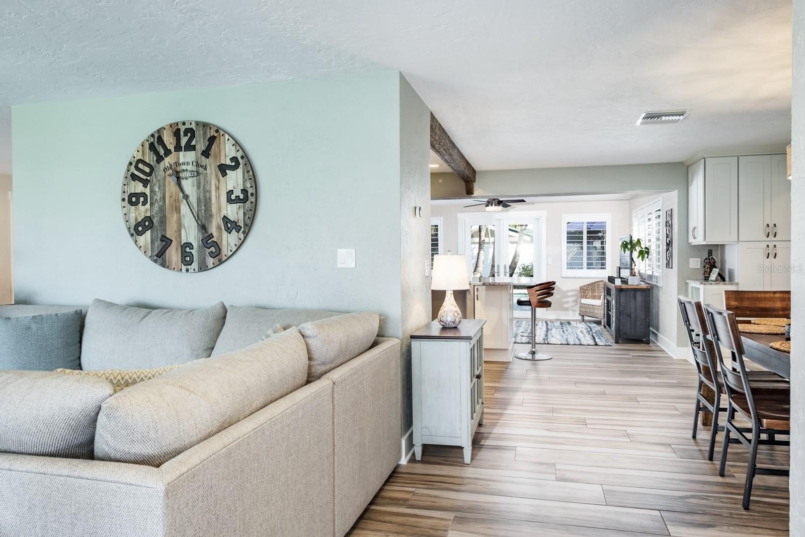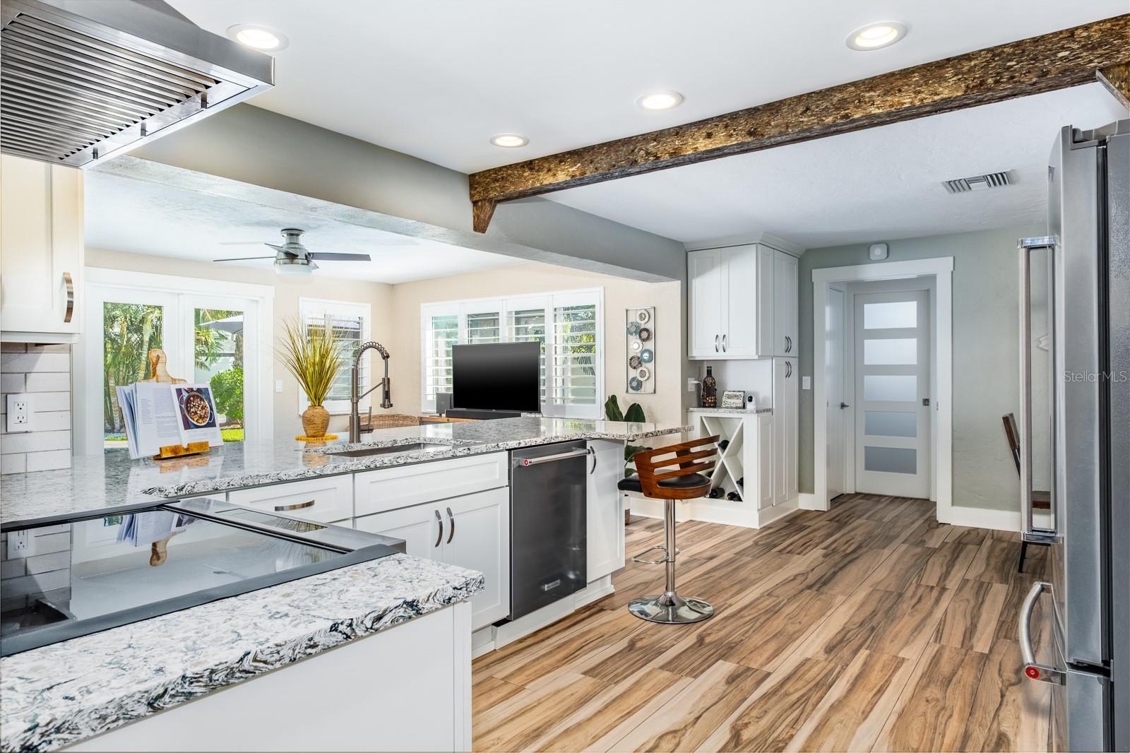 Welcome to the secluded Island of Vina Del Mar! This 2BR/2BA coastal-inspired home in the coveted Vina Del Mar neighborhood offers light-filled, open-concept living with views of the landscaped backyard and saltwater pool. The updated kitchen features custom quartz countertops, all-wood cabinetry & pantry with soft-close drawers, and a striking 100-year-old cypress beam with matching accent trim. The split floor plan includes a spacious primary suite with an en suite bath, a walk-in closet with custom shelving, and a versatile office/den/nursery space with pool access. The guest suite offers a built-in closet and adjacent bath, with a custom pocket door for added privacy. Two distinct living areas provide flexibility—one for larger gatherings, the other is open to the kitchen with direct pool access. The covered lanai offers shade while overlooking the private backyard, with an adjacent lounge area ideal for cooling off indoors. Meticulously upgraded and kept, the home features a new roof (2025), pool pump (2024), water purification & filtration system (2022), water heater (2020), Air Knight purification system (2017), custom Pebble-finish saltwater pool (2017), wood plank-style porcelain flooring, plantation shutters, Nest smart thermostat & smoke/CO detectors, updated electrical panel, newer windows and doors, fresh paint, and more. The two-car garage provides additional storage, while underground power lines preserve unobstructed views. Nearby Vina Del Mar Park offers a playground, dog park, pickleball, tennis, and basketball courts. Cruise down to the beach, restaurants, shops and entertainment in famous Pass-A-Grille or even a short drive to the vibrant Downtown St Pete for nightlife and the St Pete Pier. Don’t miss your chance to live the Salt Life!