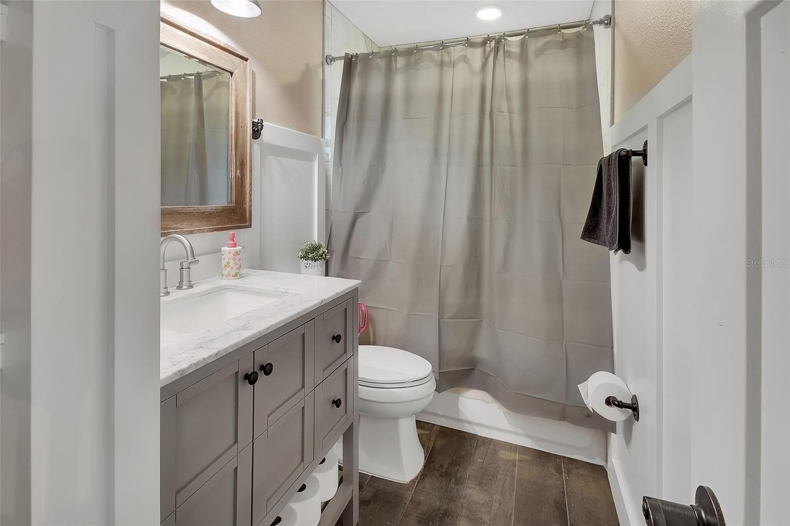 Check out this 3 bedroom 3 bathroom, block home on almost an acre of land with beautiful live oaks and in a private, secluded neighborhood! This home has a metal roof, new septic system and has completely renovated inside and out within the last 5 years! The kitchen offers shaker style cabinets with quartz countertops, stainless steel appliances and a large farm style sink! The home has a split plan offering a formal master suite with a walk-in shower and large bathroom! The guest bedrooms are both good size with one bedroom having a full bathroom to it itself! The LVP flooring ran though-out the house is seamless along with tile in the bathrooms. There is also a full inside laundry with pantry space and room for more storage! On the exterior you will find a cute covered front porch, and a large open back lanai for any of your entertaining needs! Come check this place out!