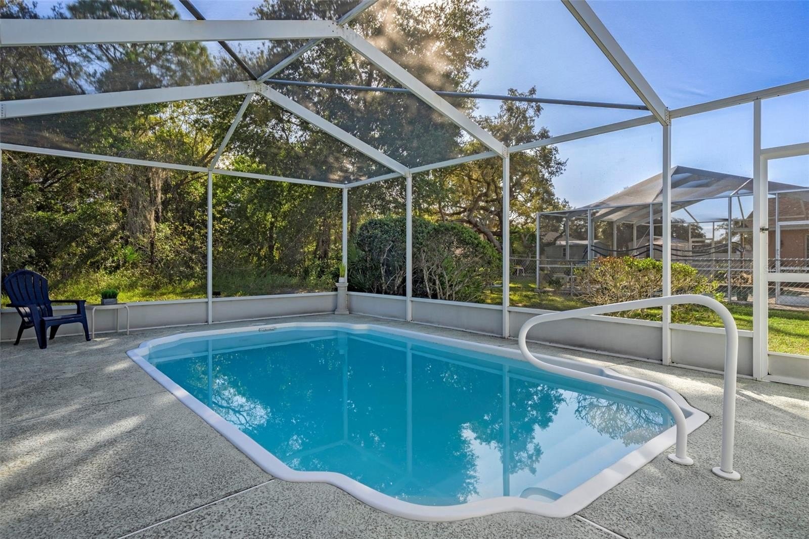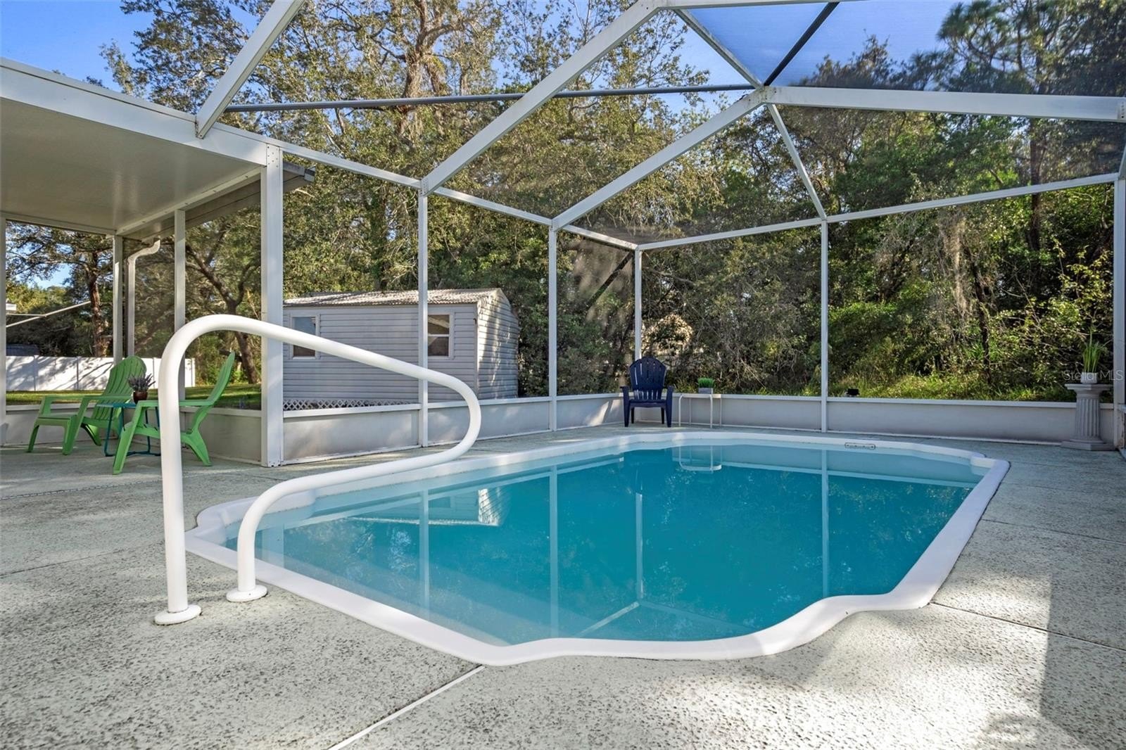 Cash Only Offers will be considered for this Unrepaired Sinkhole Home. This beautiful three bedroom, two bathroom, two car garage Pool home shines inside and out! Featuring a New A/C installed in 2017, gorgeous tile floors, a bright and open living room with cathedral ceilings and elegant plant shelves, this home creating a warm and inviting atmosphere. The master bedroom is a true retreat with a large walk-in closet, step-in shower, and a beautiful vanity. There are two lovely guest bedrooms, each with fan/lights and large closets. You will love the well-appointed guest bathroom with a tub/shower combination providing comfort and convenience for family or visitors. There is a gorgeous kitchen with an abundance of cabinets and counter top space. You will love the spacious walk-in pantry offering plenty of storage space. There is a wonderful inside utility room for your washer and dryer. The two car garage is spacious with convient shelving that does stay with the home. Step outside to your own private oasis — a sparkling fiberglass inground pool surrounded by a covered lanai area, this space is perfect for outdoor dining and relaxing poolside. The beautiful yard features a large shed with electric, offering plenty of extra storage or workspace. Located close to shopping, dining, medical offices, and schools, this home combines comfort and convenience.