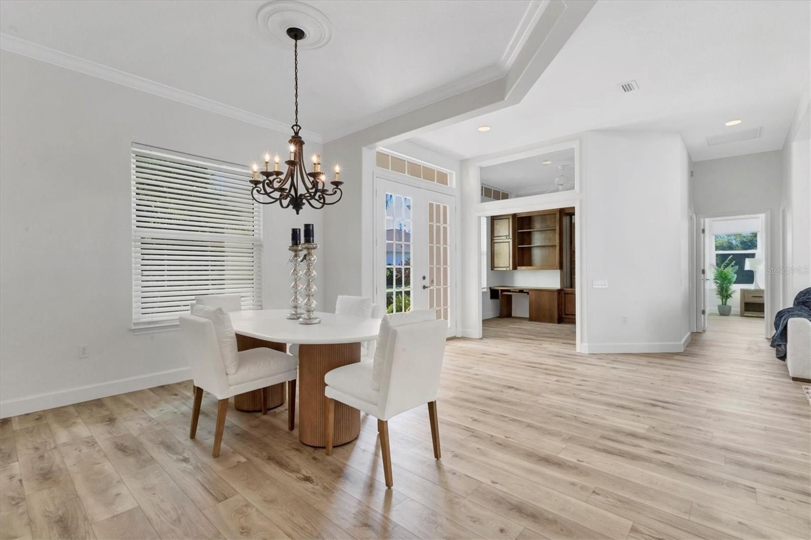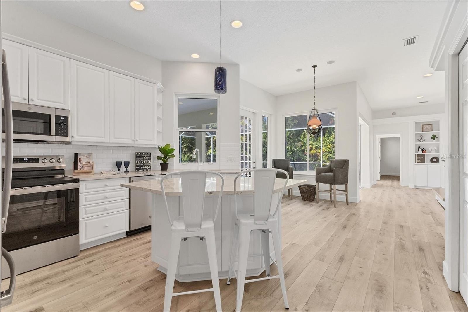 One or more photo(s) has been virtually staged. Stunning 4-bedroom pool home with lake view in Hawthorn Park! Welcome to this beautifully updated 4 bedroom, 3.5 bath home featuring a den and 2 car garage in the highly sought after Hawthorn Park community. Step inside to find brand new luxury vinyl plank flooring throughout and a bright, open layout that perfectly frames the serene lake views. The gourmet kitchen boasts granite countertops, crisp white cabinetry, and brand-new stainless-steel appliances. Enjoy seamless indoor-outdoor living with pocket sliding glass doors that open to a screened-in pool and lanai, perfect for relaxing or entertaining. Ideally located close to the beach, Robinson Preserve, and local dining, this home offers the perfect blend of comfort, style, and convenience.
