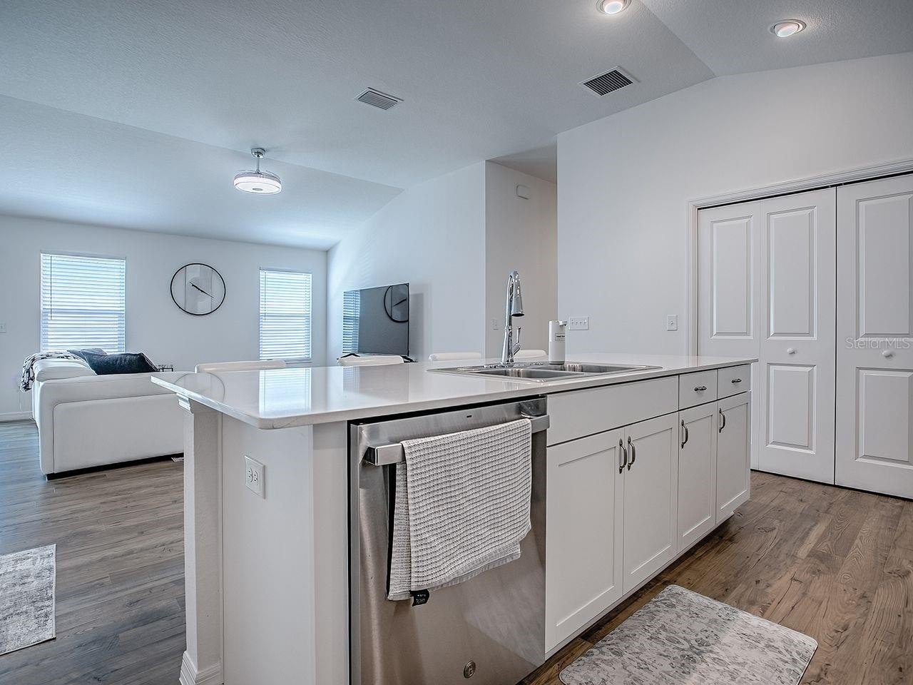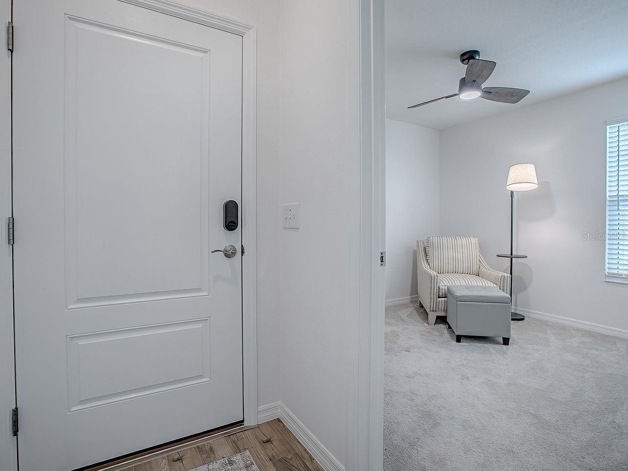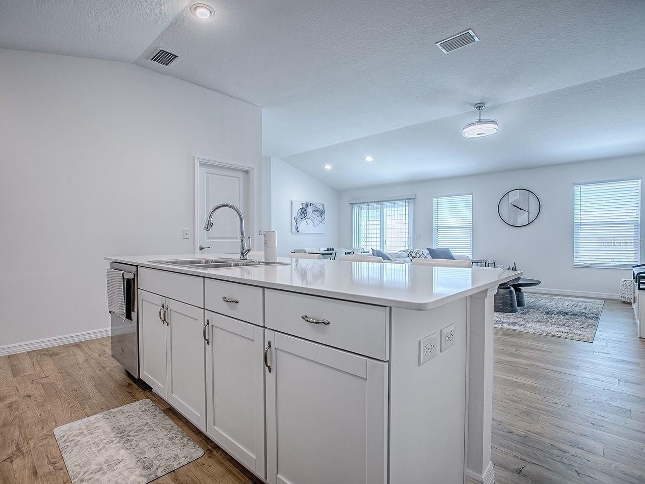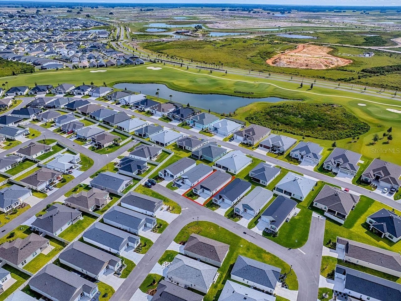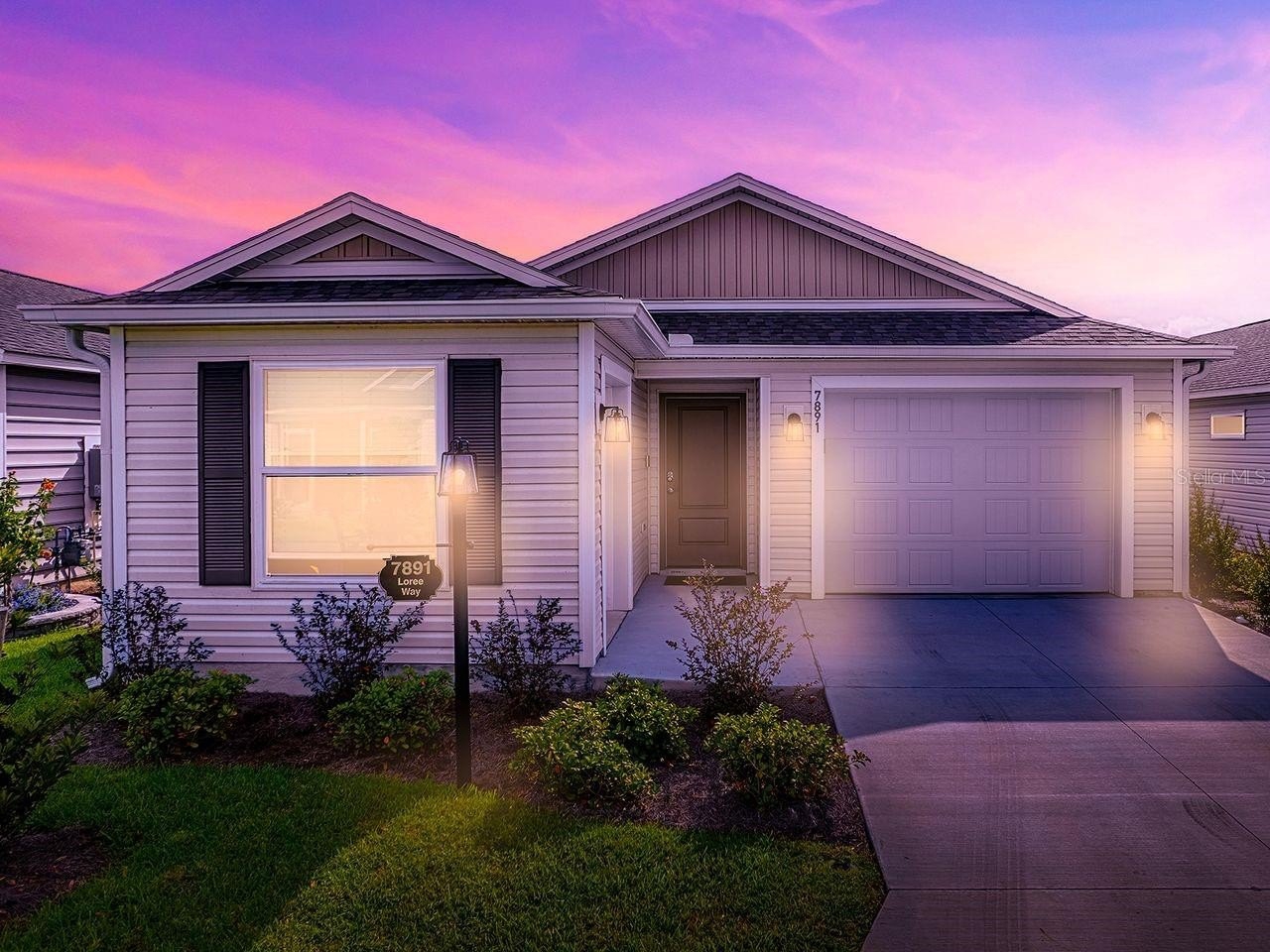 Welcome to the Village of Shady Brook where this Emerald model is a gem that will truly dazzle you! This home is as close to brand new as you can get! It has only been occupied for a few days in the past year and is being offered completely TURNKEY WITH GOLF CART! It also has a GOLF CART GARAGE! Some of the many features are high 10’ ceilings, no popcorn, sturdy premium laminate wood look flooring, tile floors in bathrooms, QUARTZ counters, new appliances (GE), washer and dryer, HUGE primary closet, SMART HOME (Centric Fiber), GAS RANGE, gas dryer and gas tankless water heater. Many upgrades have been made such as gutters added, blinds and room darkening drapes, Fandeliers (as opposed to basic ceiling fans), permanent air filter (no changing), timer fans, soft close toilet seats and bidet seats in both bathrooms, glass shower doors that have been treated to prevent water spots, clothes hanging rack in laundry closet, pullouts in cabinets, Ecobee ring doorbell and keyless entry keypad. This home comes complete with all new furniture in a clean, contemporary style, including a beautiful leather sofa with lumbar support. This neighborhood is a prime location in that it is only 1.8 miles from Eastport Town Square and is surrounded by Shallow Creek Golf Course. Don’t miss out on your opportunity to buy new and have all the work done already!!! Call today for an appointment!!