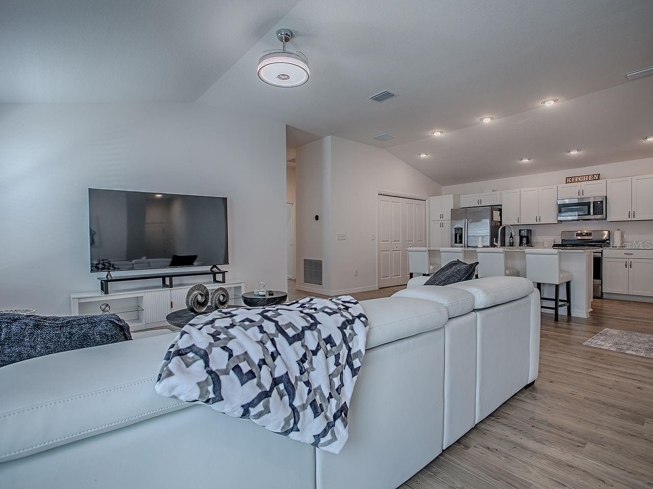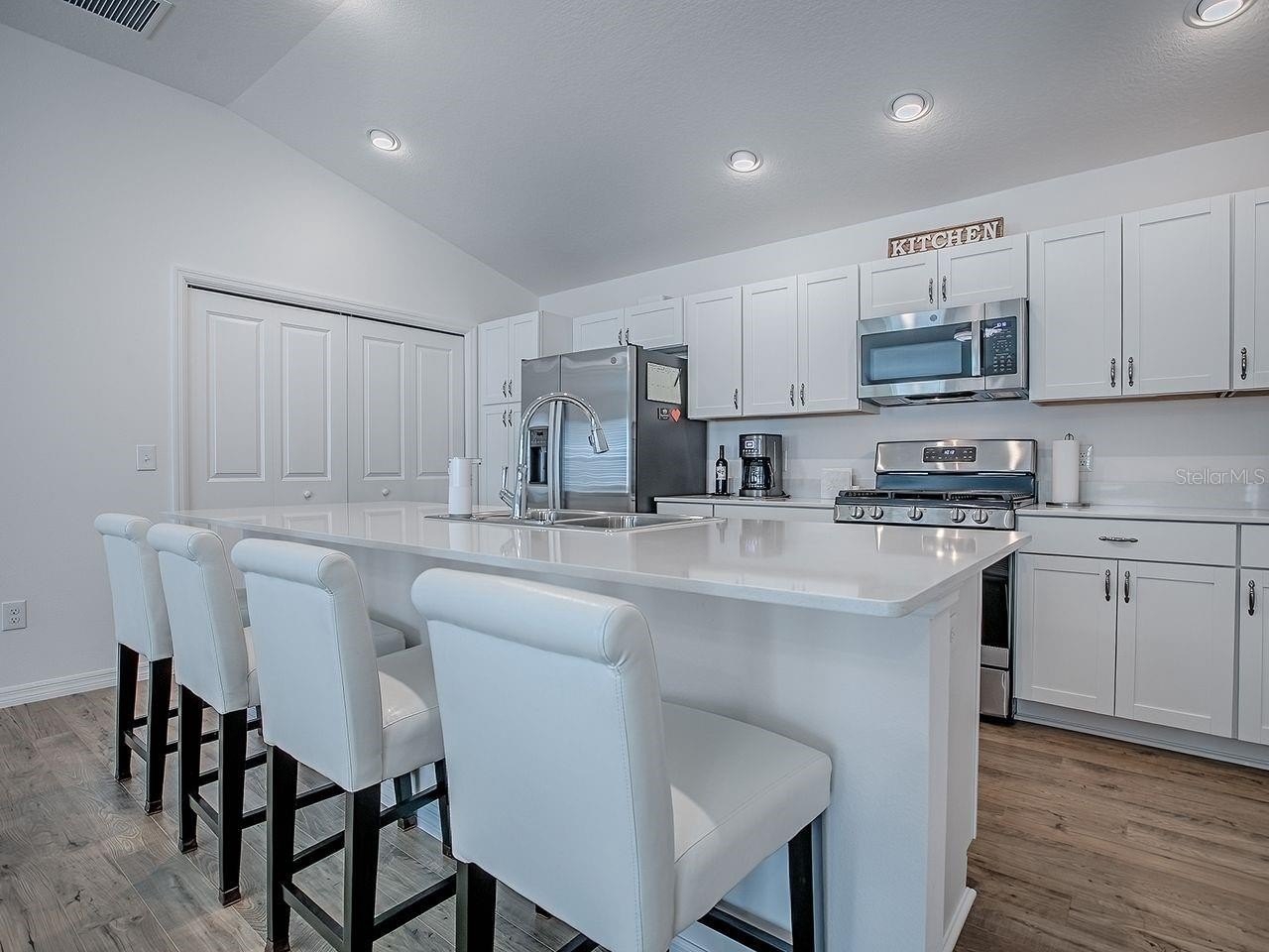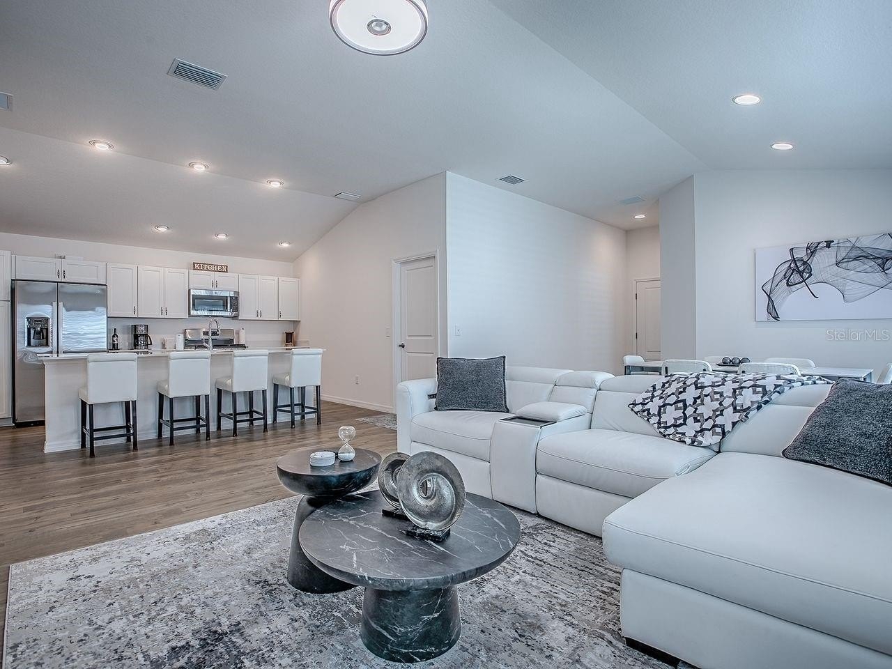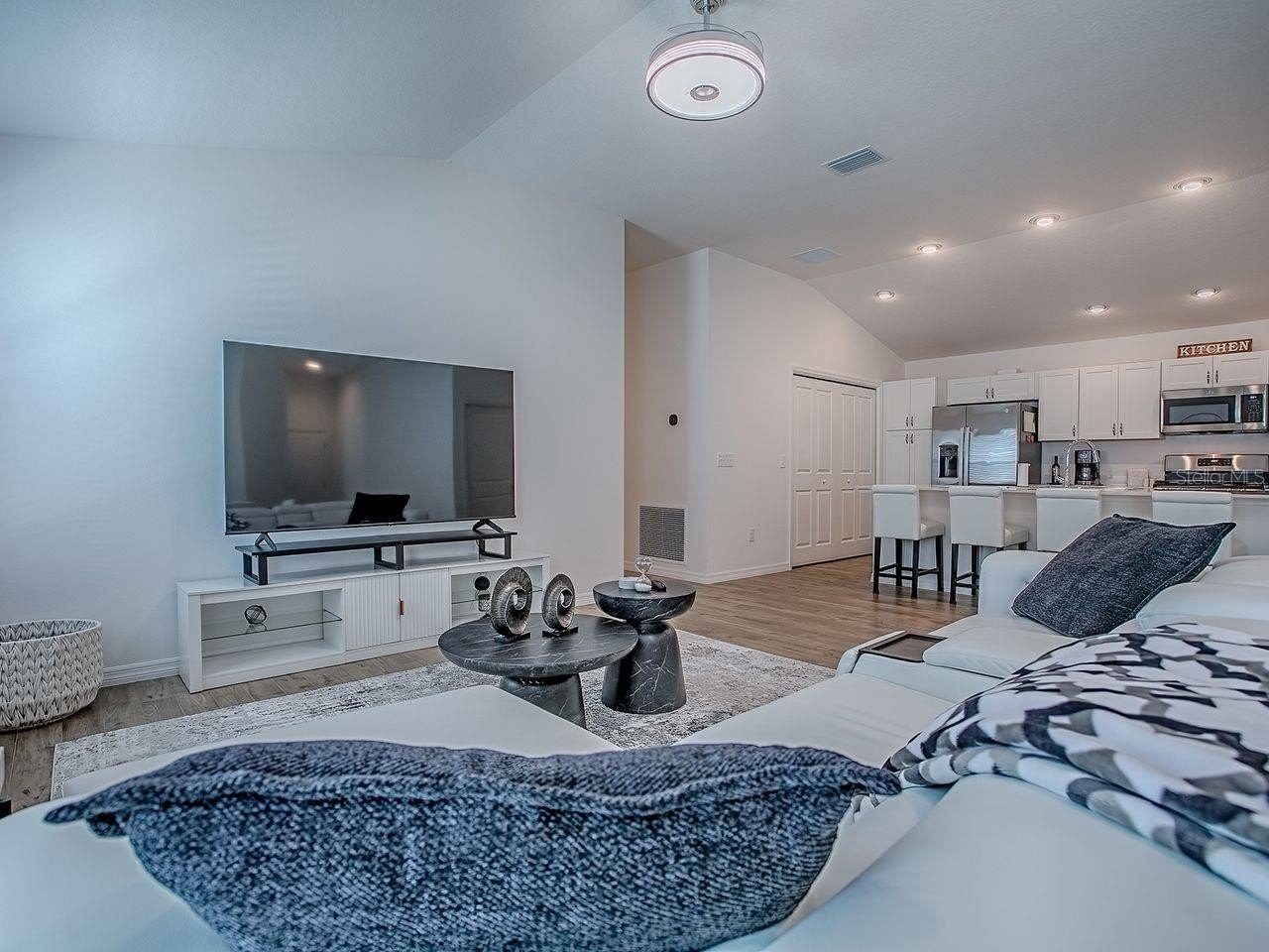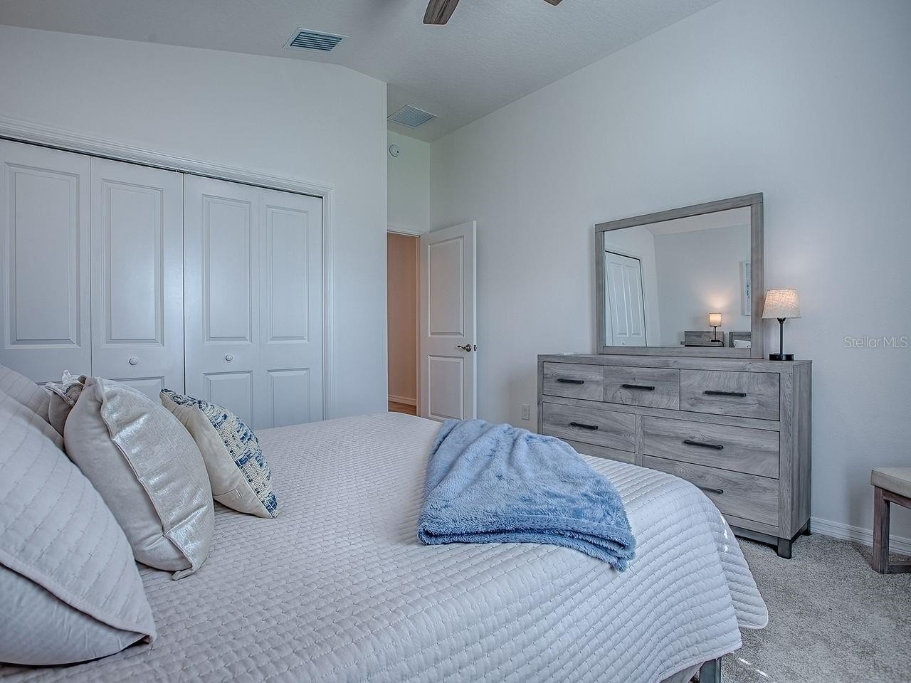 Welcome to the Village of Shady Brook where this Emerald model is a gem that will truly dazzle you! This home is as close to brand new as you can get! It has only been occupied for a few days in the past year and is being offered completely TURNKEY WITH GOLF CART! It also has a GOLF CART GARAGE! Some of the many features are high 10’ ceilings, no popcorn, sturdy premium laminate wood look flooring, tile floors in bathrooms, QUARTZ counters, new appliances (GE), washer and dryer, HUGE primary closet, SMART HOME (Centric Fiber), GAS RANGE, gas dryer and gas tankless water heater. Many upgrades have been made such as gutters added, blinds and room darkening drapes, Fandeliers (as opposed to basic ceiling fans), permanent air filter (no changing), timer fans, soft close toilet seats and bidet seats in both bathrooms, glass shower doors that have been treated to prevent water spots, clothes hanging rack in laundry closet, pullouts in cabinets, Ecobee ring doorbell and keyless entry keypad. This home comes complete with all new furniture in a clean, contemporary style, including a beautiful leather sofa with lumbar support. This neighborhood is a prime location in that it is only 1.8 miles from Eastport Town Square and is surrounded by Shallow Creek Golf Course. Don’t miss out on your opportunity to buy new and have all the work done already!!! Call today for an appointment!!
