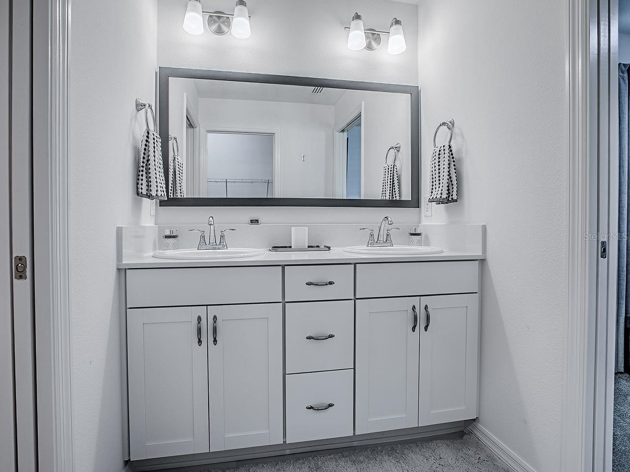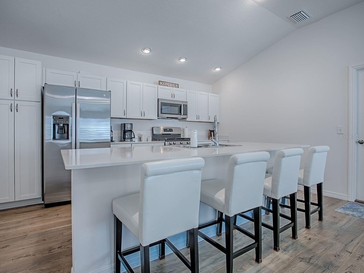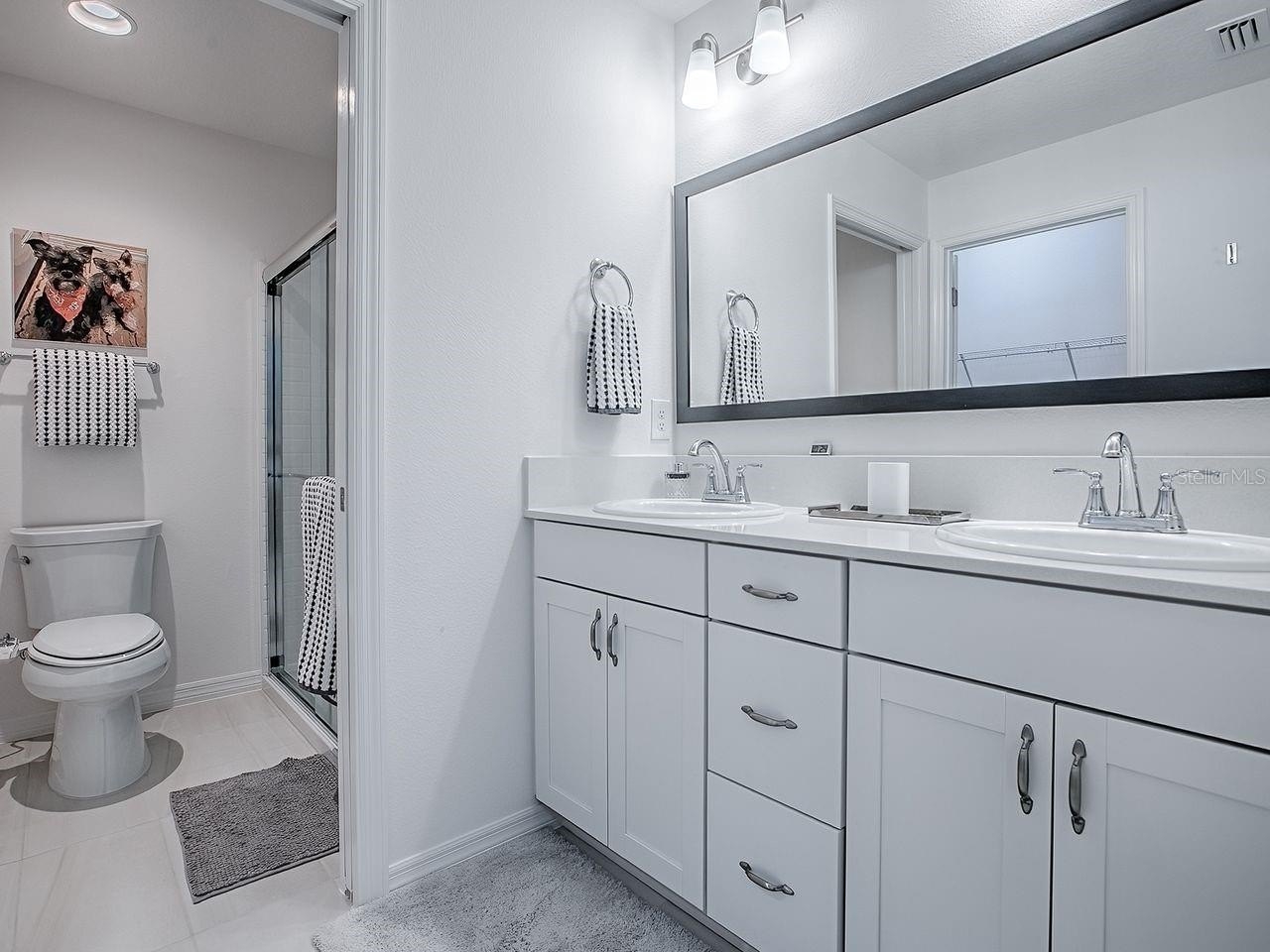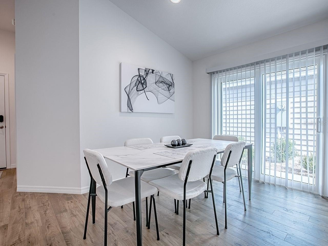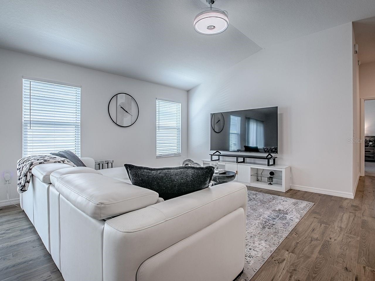 Welcome to the Village of Shady Brook where this Emerald model is a gem that will truly dazzle you! This home is as close to brand new as you can get! It has only been occupied for a few days in the past year and is being offered completely TURNKEY WITH GOLF CART! It also has a GOLF CART GARAGE! Some of the many features are high 10’ ceilings, no popcorn, sturdy premium laminate wood look flooring, tile floors in bathrooms, QUARTZ counters, new appliances (GE), washer and dryer, HUGE primary closet, SMART HOME (Centric Fiber), GAS RANGE, gas dryer and gas tankless water heater. Many upgrades have been made such as gutters added, blinds and room darkening drapes, Fandeliers (as opposed to basic ceiling fans), permanent air filter (no changing), timer fans, soft close toilet seats and bidet seats in both bathrooms, glass shower doors that have been treated to prevent water spots, clothes hanging rack in laundry closet, pullouts in cabinets, Ecobee ring doorbell and keyless entry keypad. This home comes complete with all new furniture in a clean, contemporary style, including a beautiful leather sofa with lumbar support. This neighborhood is a prime location in that it is only 1.8 miles from Eastport Town Square and is surrounded by Shallow Creek Golf Course. Don’t miss out on your opportunity to buy new and have all the work done already!!! Call today for an appointment!!