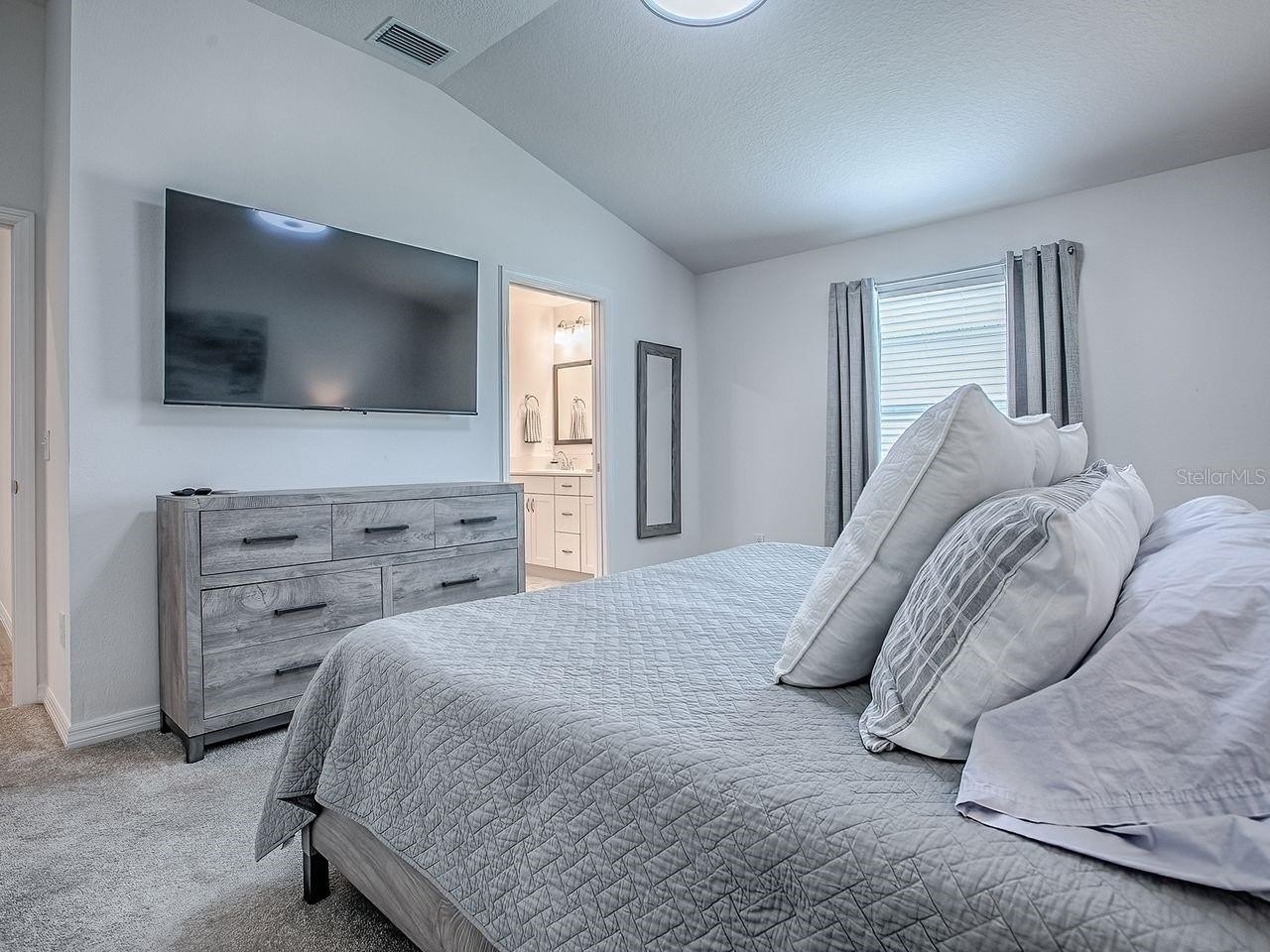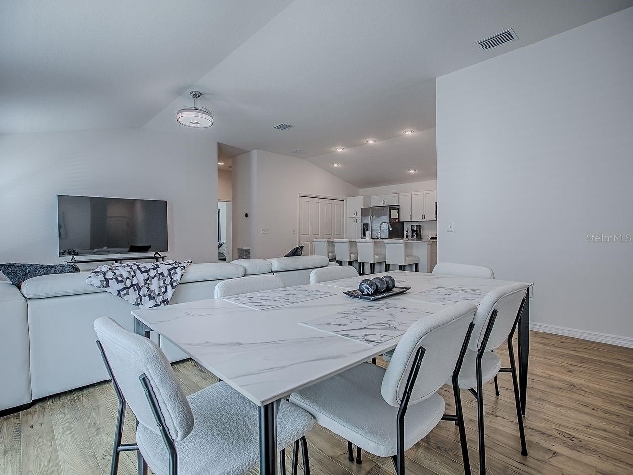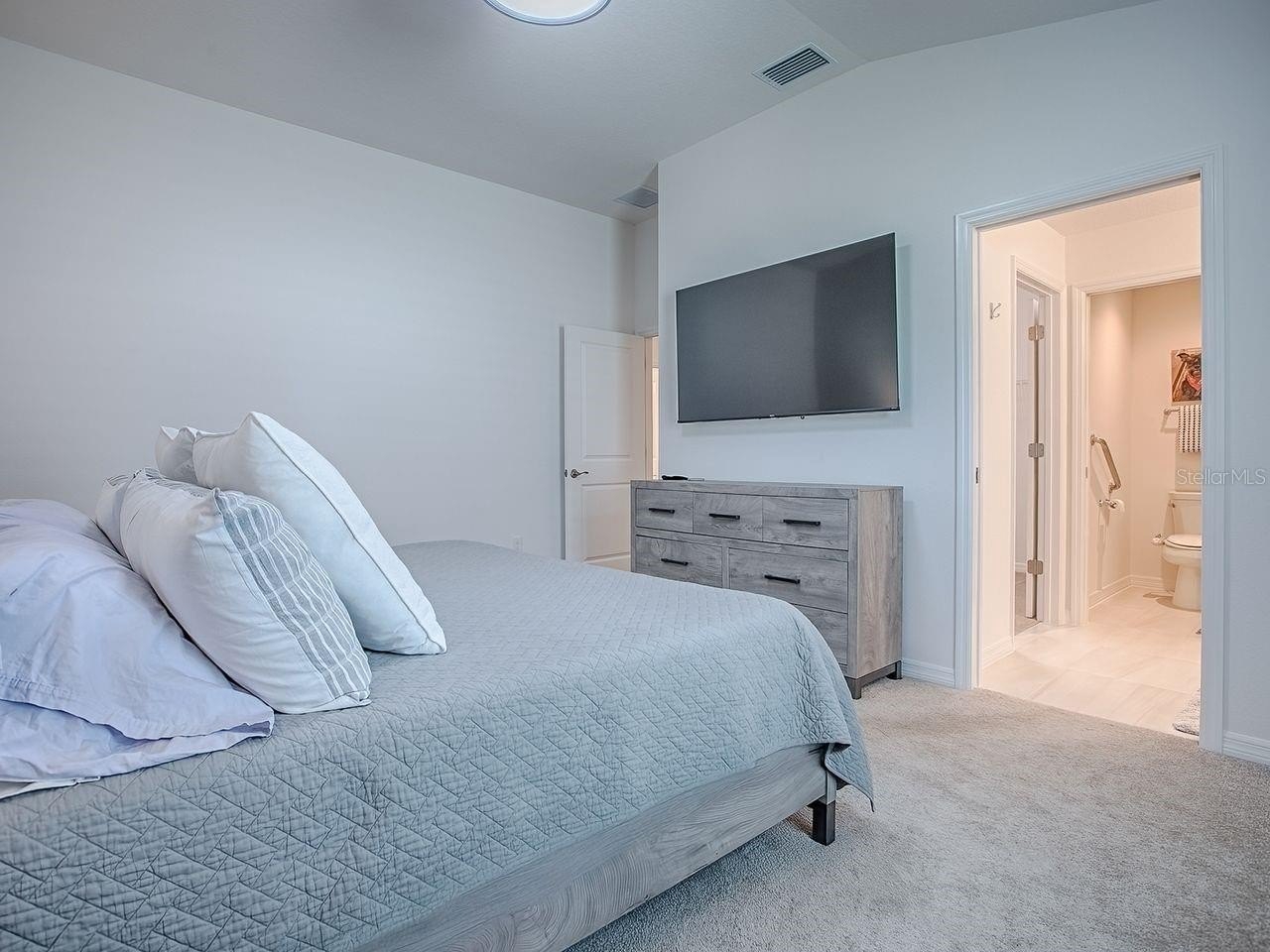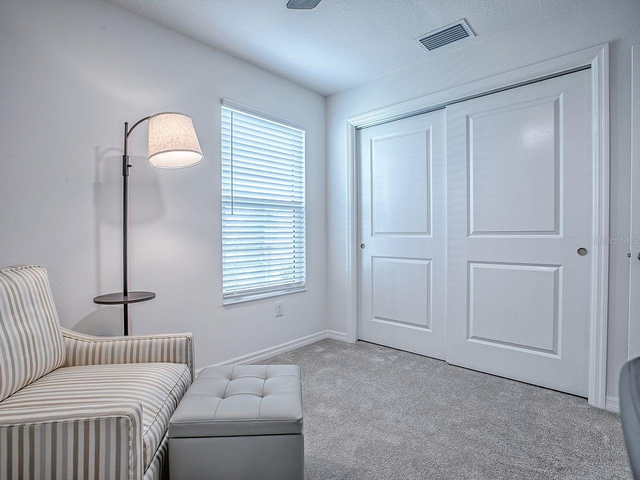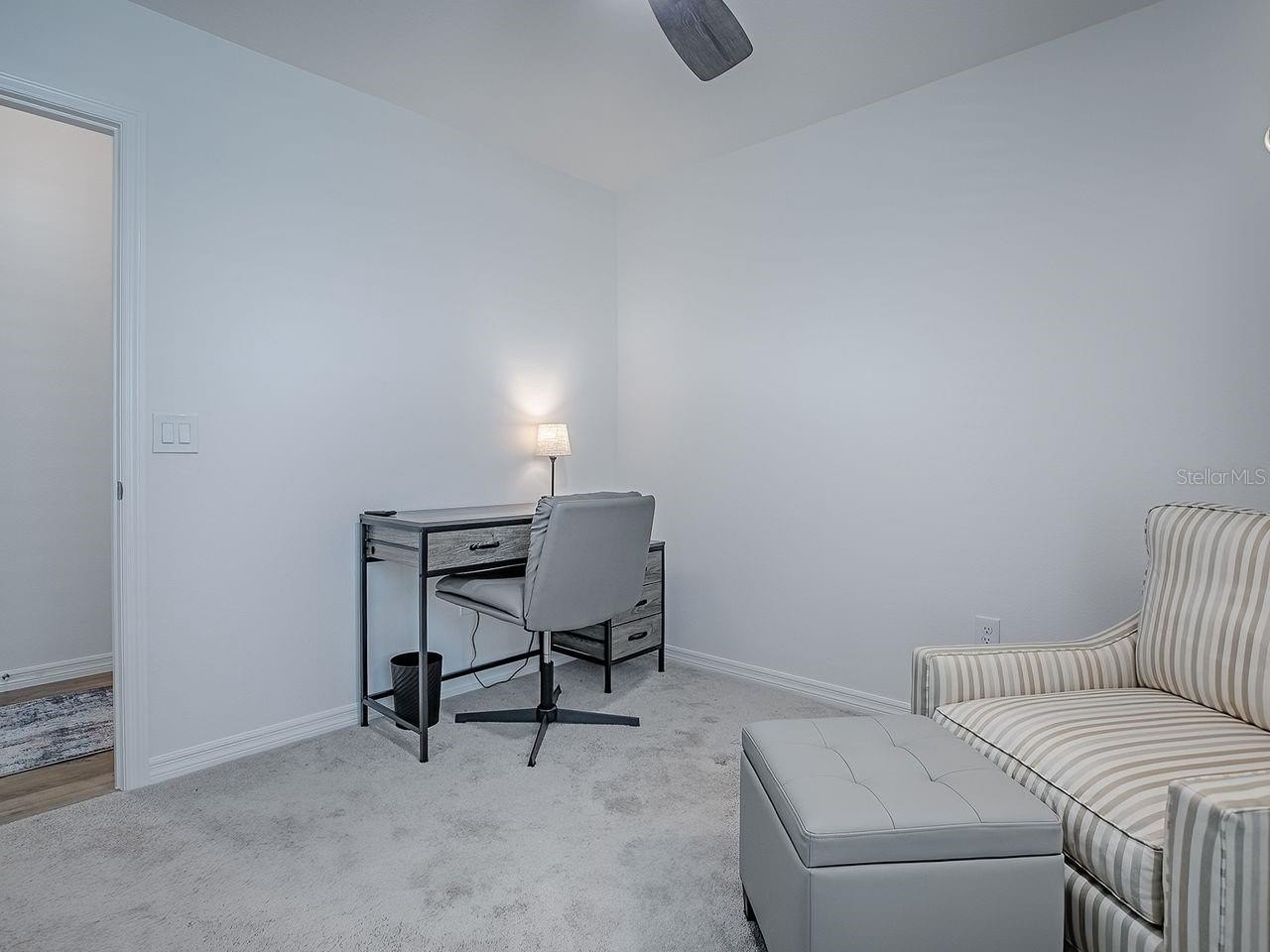 Welcome to the Village of Shady Brook where this Emerald model is a gem that will truly dazzle you! This home is as close to brand new as you can get! It has only been occupied for a few days in the past year and is being offered completely TURNKEY WITH GOLF CART! It also has a GOLF CART GARAGE! Some of the many features are high 10’ ceilings, no popcorn, sturdy premium laminate wood look flooring, tile floors in bathrooms, QUARTZ counters, new appliances (GE), washer and dryer, HUGE primary closet, SMART HOME (Centric Fiber), GAS RANGE, gas dryer and gas tankless water heater. Many upgrades have been made such as gutters added, blinds and room darkening drapes, Fandeliers (as opposed to basic ceiling fans), permanent air filter (no changing), timer fans, soft close toilet seats and bidet seats in both bathrooms, glass shower doors that have been treated to prevent water spots, clothes hanging rack in laundry closet, pullouts in cabinets, Ecobee ring doorbell and keyless entry keypad. This home comes complete with all new furniture in a clean, contemporary style, including a beautiful leather sofa with lumbar support. This neighborhood is a prime location in that it is only 1.8 miles from Eastport Town Square and is surrounded by Shallow Creek Golf Course. Don’t miss out on your opportunity to buy new and have all the work done already!!! Call today for an appointment!!