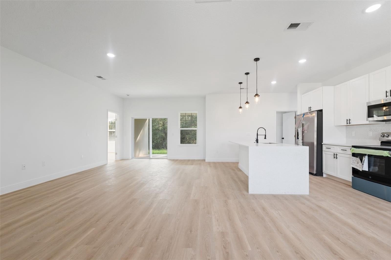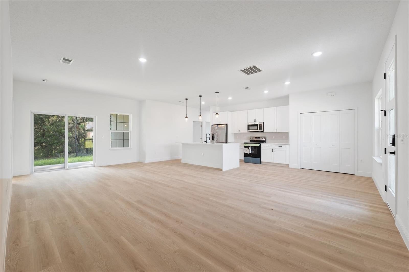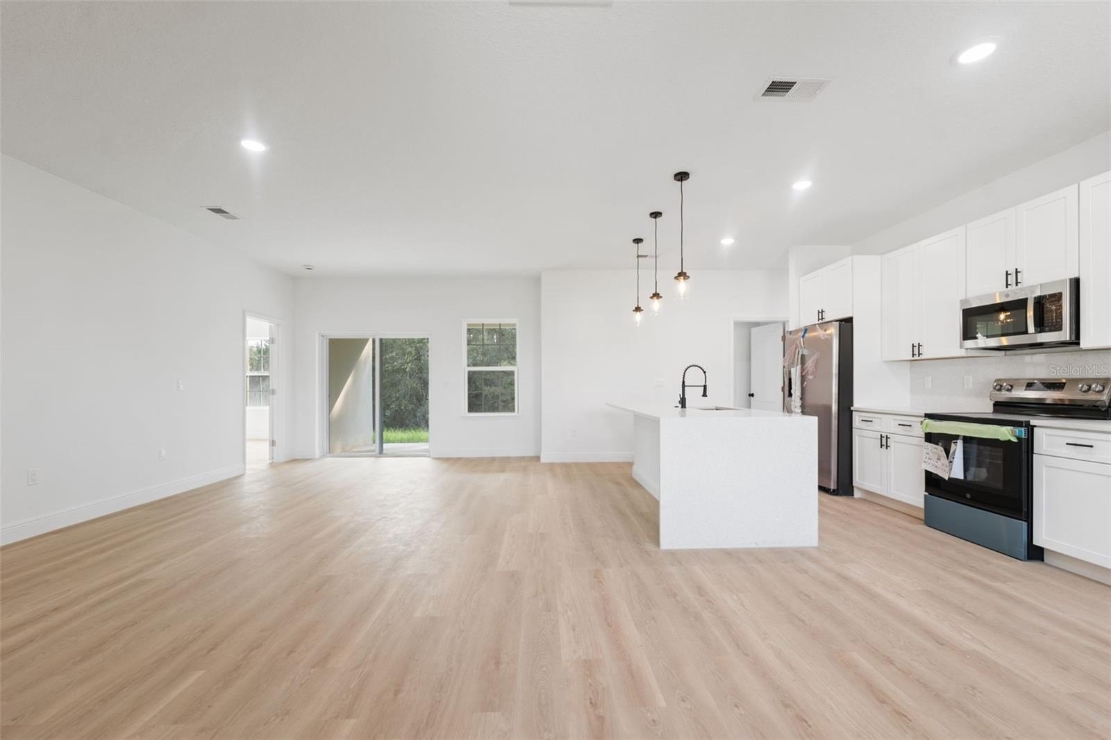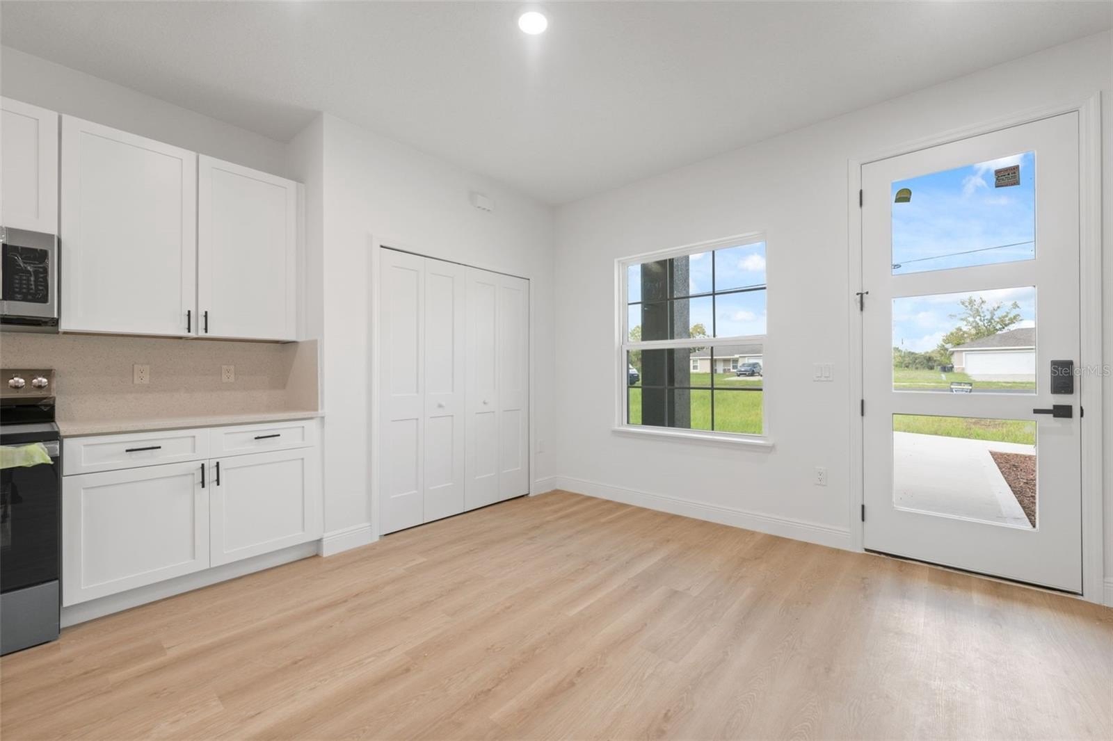 The bright and airy living room and dining room are ideal for entertaining or relaxing with loved ones. The heart of the home is the gorgeous kitchen, featuring solid wood cabinets, stone countertops, and modern appliances, all included. Whether you're cooking for guests or enjoying a quiet meal, this space blends function with style.
