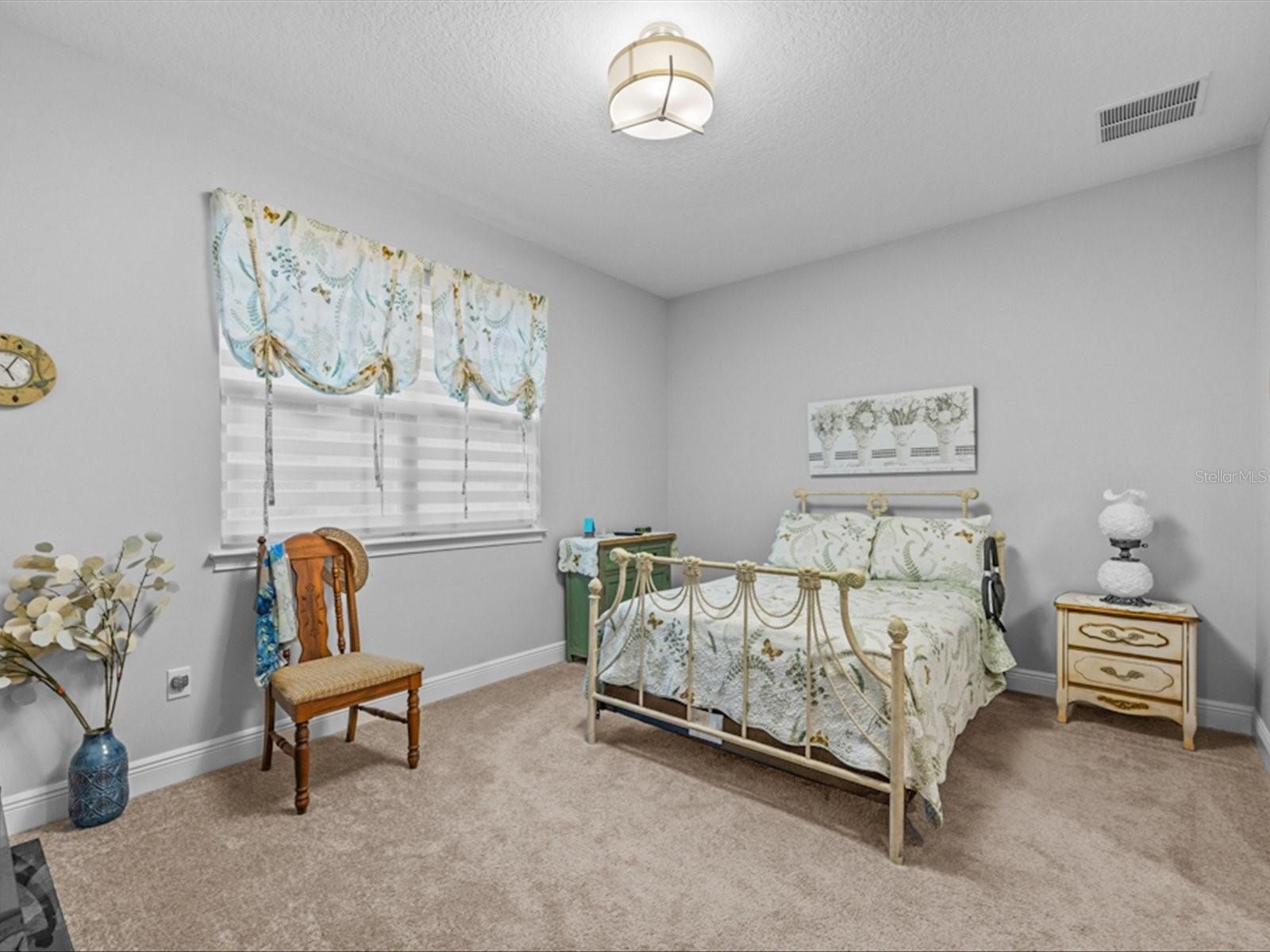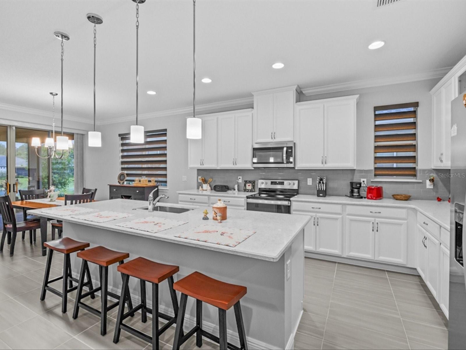 Welcome to 3345 Sagebrush Street, located in the highly sought-after South Lakes of Harmony, a premier 55+ golf community in Harmony, Florida. Built in 2022, this almost brand-new home offers 3 bedrooms, 3 bathrooms, and 2,355 square feet of beautifully designed living space. The open-concept floor plan features high ceilings, modern finishes, and a seamless flow from the kitchen to the dining and living areas, making it perfect for both entertaining and everyday living. Each bedroom is generously sized, and with three full bathrooms, this home provides both comfort and privacy for family and guests. Step outside to the screened-in lanai, where you can relax and enjoy serene pond views—an ideal backdrop for your morning coffee or evening sunset.