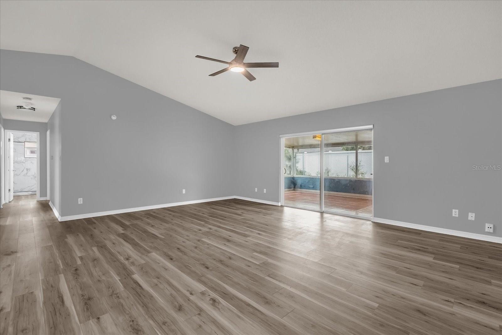 Enjoy Florida living at its finest in the large screened-in porch at the rear of the home — perfect for gatherings or quiet evenings outdoors.
