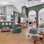 The chef-inspired central kitchen is a showpiece with crisp white cabinetry, brushed nickel hardware, subway tile backsplash, and a full suite of high-end stainless steel appliances.