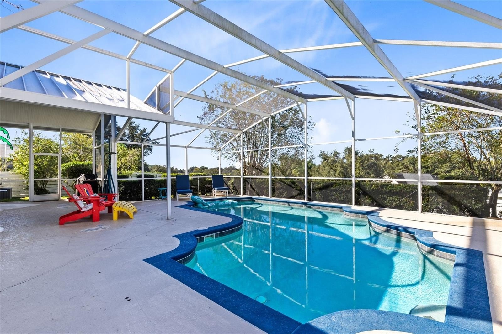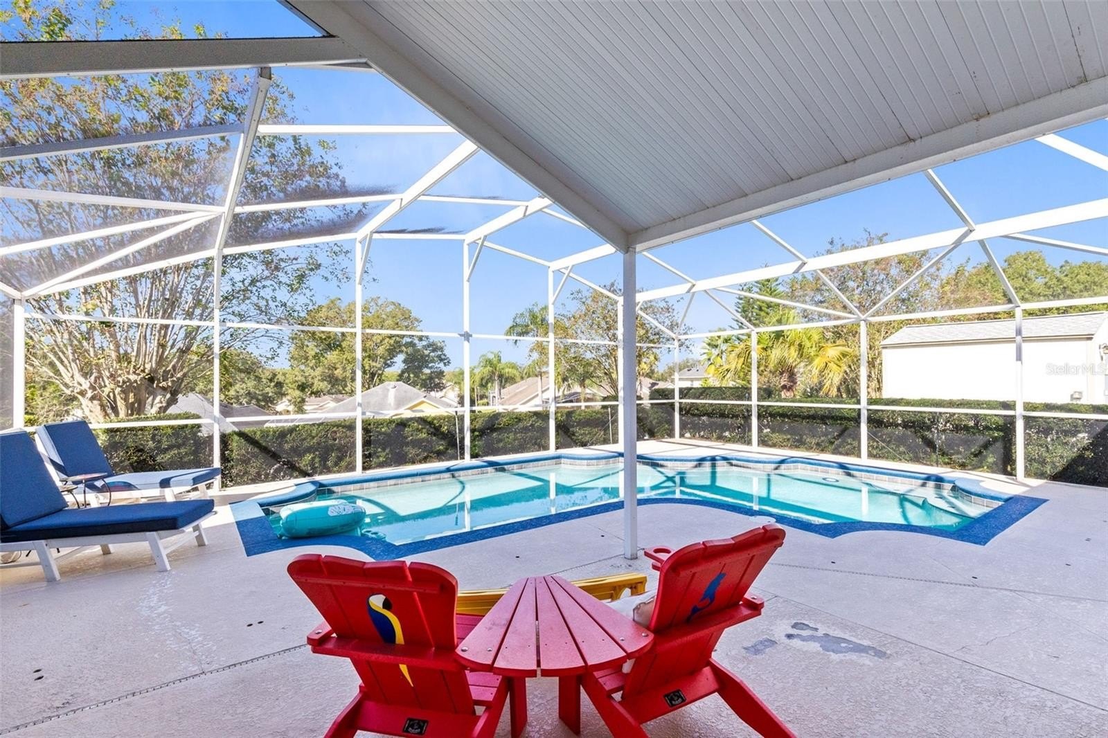 Whether you are looking for a place to call home or a short-term rental near Disney, you will NOT want to miss this stunning, newly renovated, 3 bed, 2 bath plus an office pool home with paid off solar panels! As soon as you walk in, you we will be welcomed by an open floor with vaulted ceilings above, beautiful wood style tile throughout the home below and surrounded by natural light! The owners spared no expense when renovating the home and it truly shows in the master bath and kitchen. Every detail was thought out in the kitchen with all new appliances, deep basin sink, and breathtaking quartz countertop with streaks of gold that match the brushed gold cabinet hardware. The spacious owner’s suite comes complete with a walk-in closet, soaking tub and dual vanities. Entertain friends and family or just enjoy the Florida weather on this oversized, fully screened in patio with a huge pool! Enjoy your privacy with a fully fenced in back yard and no rear neighbor! The community also has 2 tennis courts, a clubhouse, volleyball courts and community pool all for a low $100 per quarter! This opportunity won’t last so schedule your private showing today!
