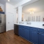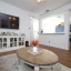 The open-concept floor plan boasts soaring ceilings, fresh paint, and a custom laundry area complete with Maytag Commercial Front loaders with a built-in pedestal and butcher block shelving.