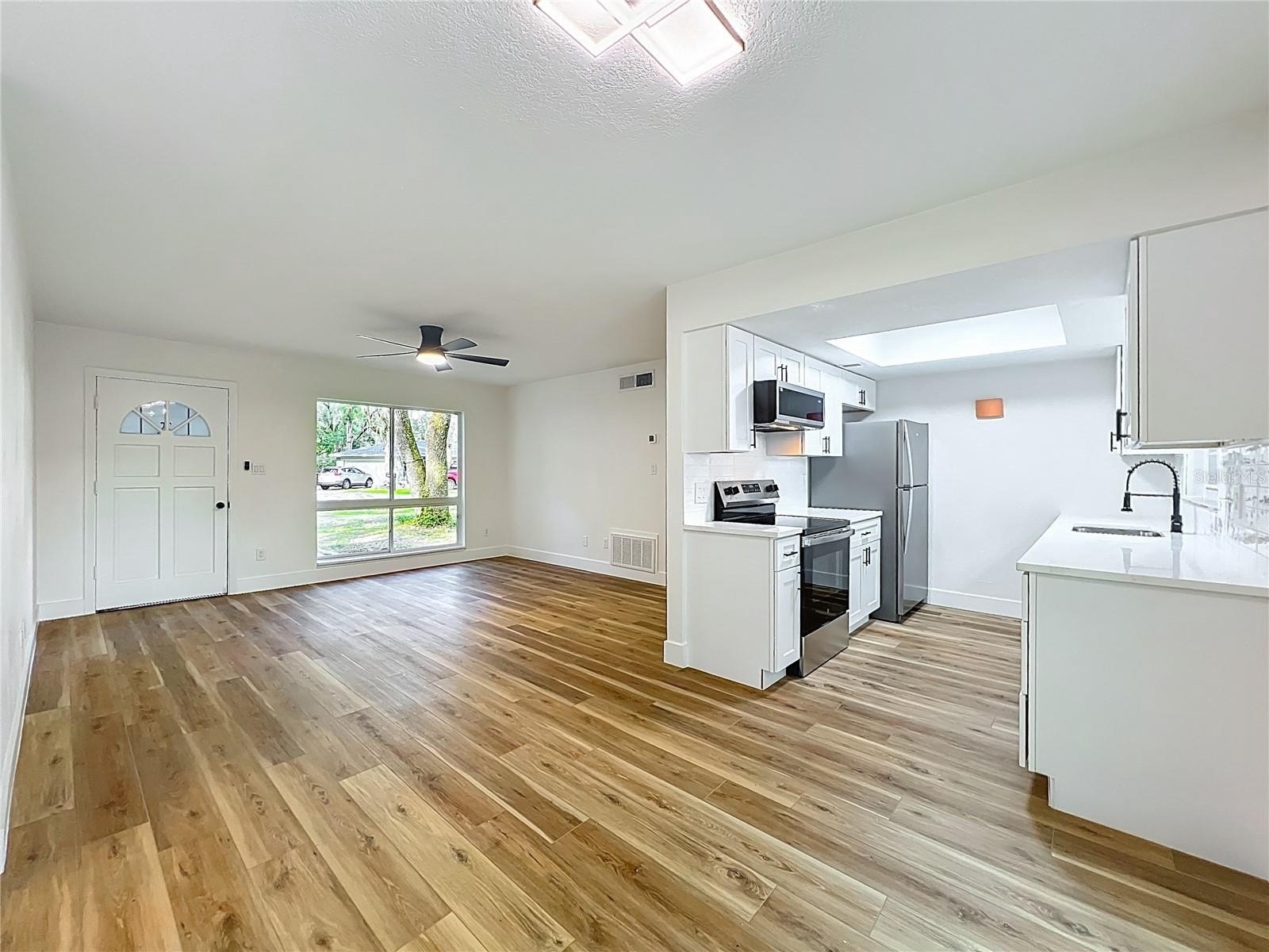 Step inside and you’ll immediately notice the bright, open layout with beautiful new flooring, upgraded doors and trim, and all-new lighting and ceiling fans throughout. The kitchen is a showstopper — featuring brand-new stainless steel appliances, sleek quartz countertops, and a gorgeous stacked tile backsplash — perfect for cooking and entertaining. Both bathrooms have been completely updated with designer finishes, quartz counters, and modern fixtures.