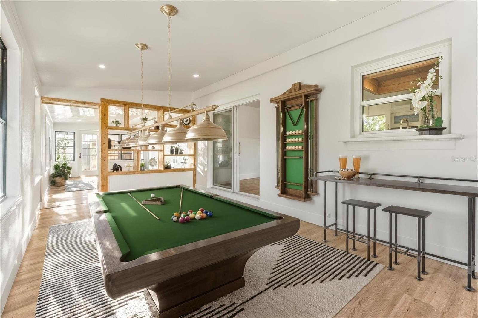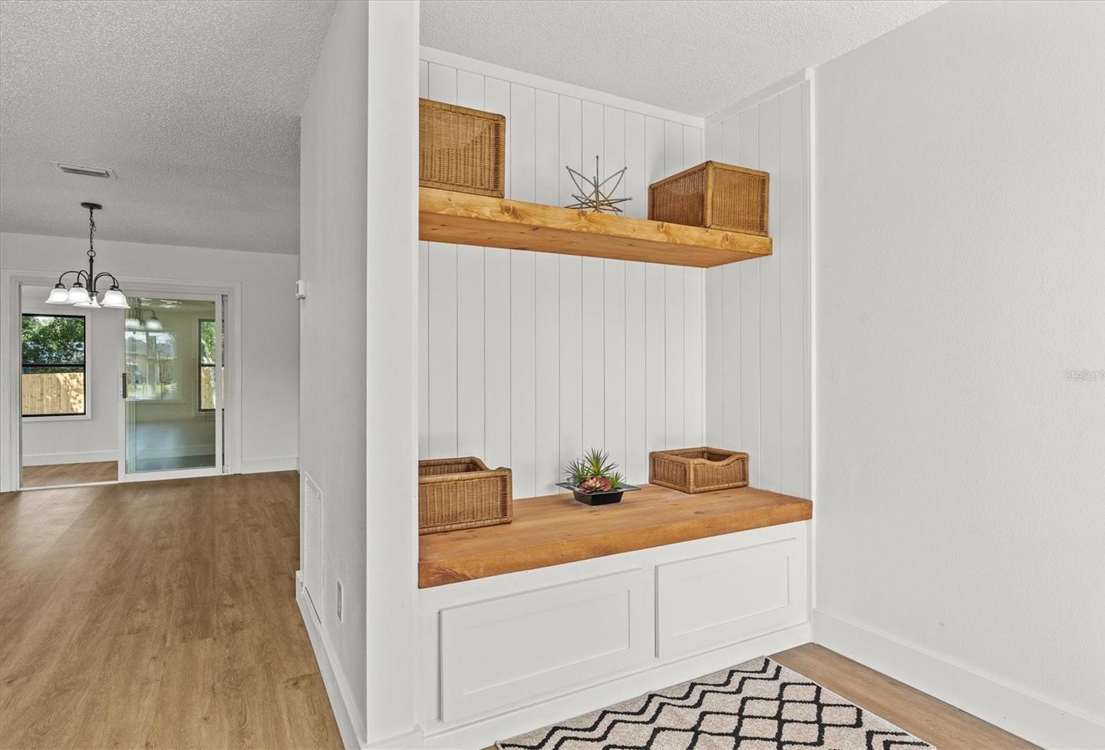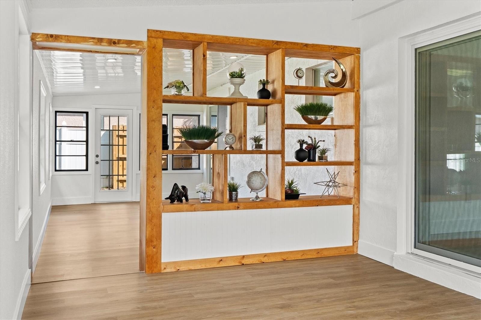 A BREATH OF FRESH AIR! This home has been updated with care, quality, and style, with functionality features everywhere you look. Showcase trim work and practical carpentry features give this home a ton of character and livable convenience. A beautiful bay window adds to the curb appeal and arrival, while adding natural light into the great room. The home has a split floor plan with the primary suite and 2nd bedroom with hallway bathroom are on one wing of the home. The 3rd bedroom or private office space with a full-sized closet is on the opposite side of the home. 450 square foot "Florida Room" interior space is heated and cooled, with major opportunity to accommodate a multitude of preferences. Pool table, craft space, bar room, game room, work from home space, etc. Geometric shelving built-ins give some additional flavor and add to the personal-touch potential of the home. 2-car garage! Washer and Dryer included. Updated windows and roof. Entire home including the 450-sqft space is all under one roof-type. Bring your toothbrush! This home needs nothing but a loving new owner. Amazing location in Deltona with major convenience to I-4 exit. This home also rests on a particularly nice street with lovely homes around it. Fully fenced big backyard. Two big Shade trees in the back.