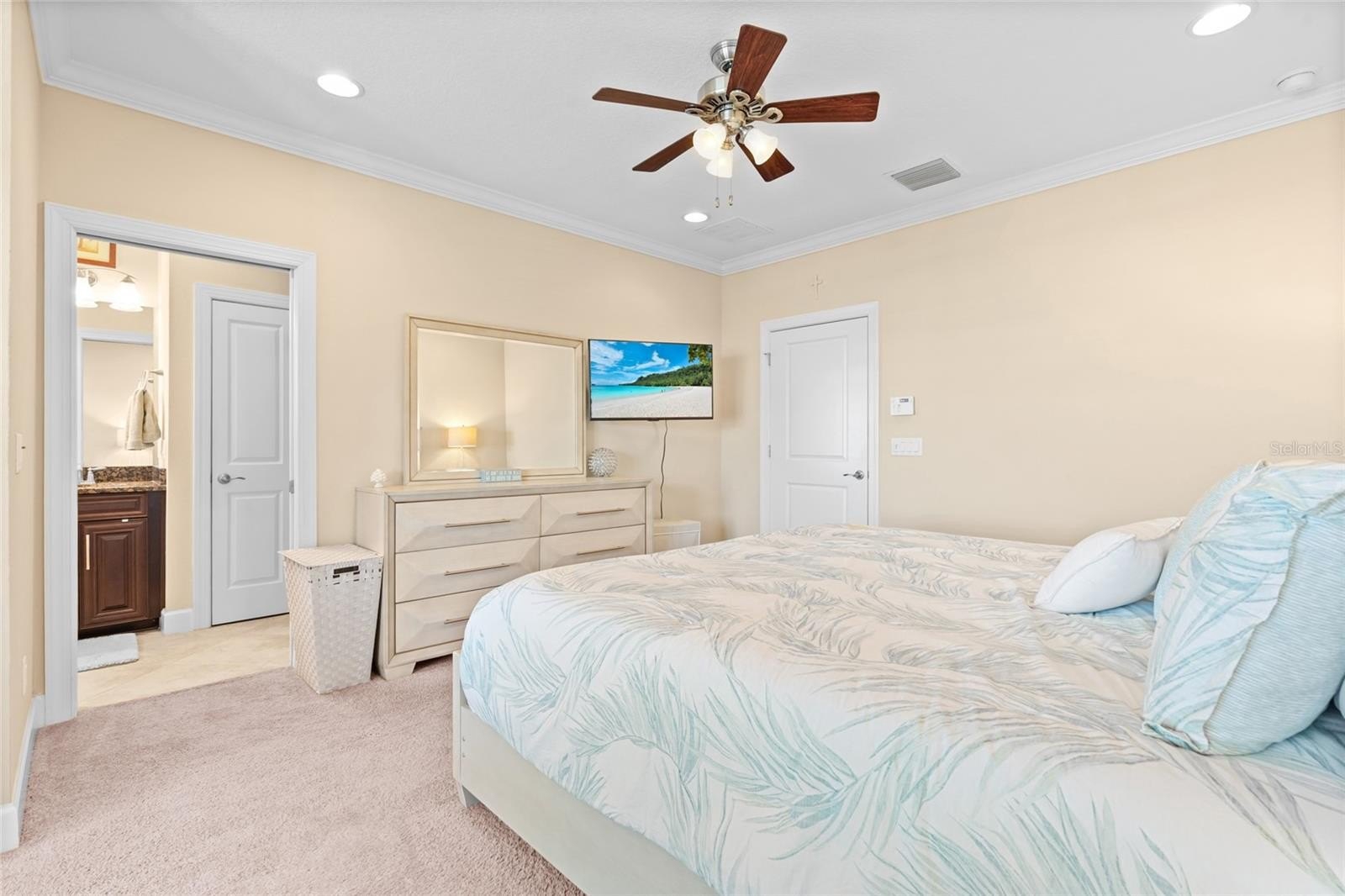 Inside, you’ll find luxury finishes throughout, including VOLUME CEILINGS, CROWN MOLDING, GRANITE COUNTERTOPS, 42-INCH CUSTOM CABINETRY, STAINLESS STEEL APPLIANCES, AND SURROUND SOUND. The OPEN-CONCEPT second floor features a spacious living room, dining area, and a versatile den that can serve as a home office or fourth bedroom. Enjoy breathtaking sunsets and refreshing coastal breezes from your PRIVATE BALCONY, complete with a retractable solar shade.