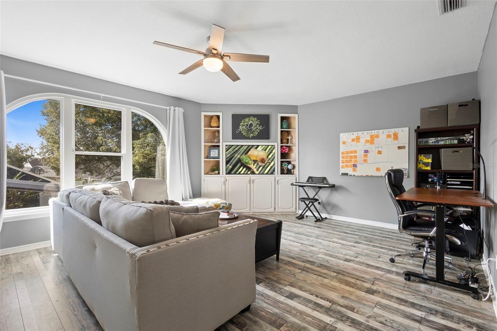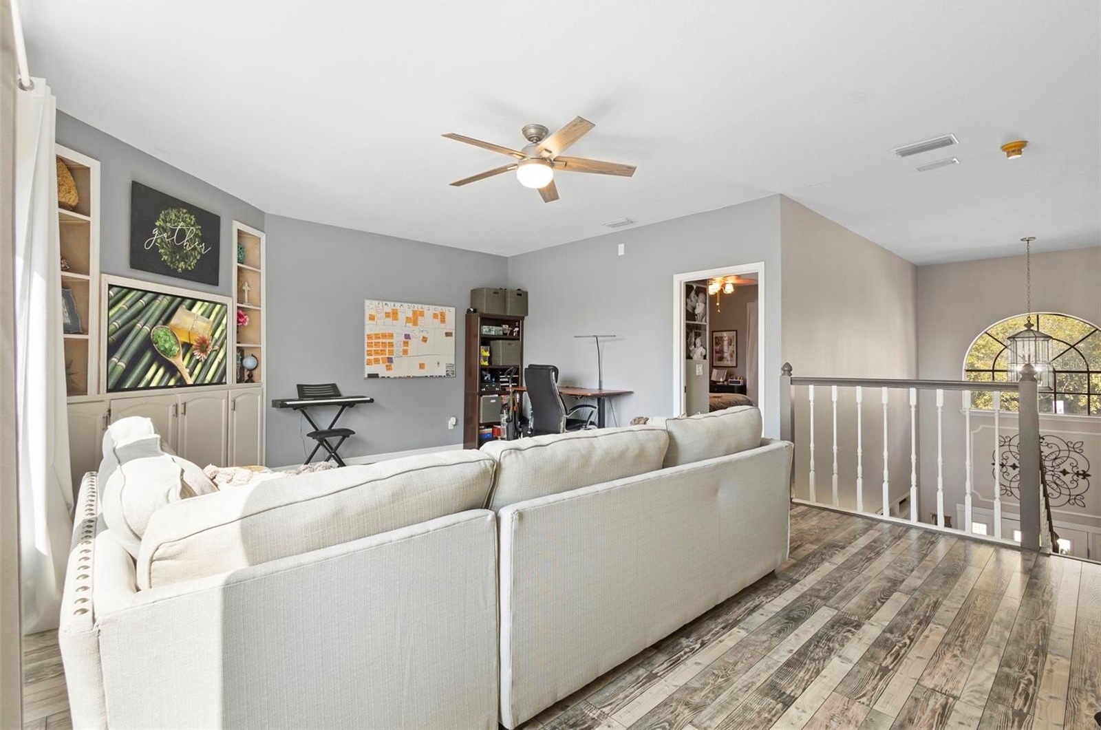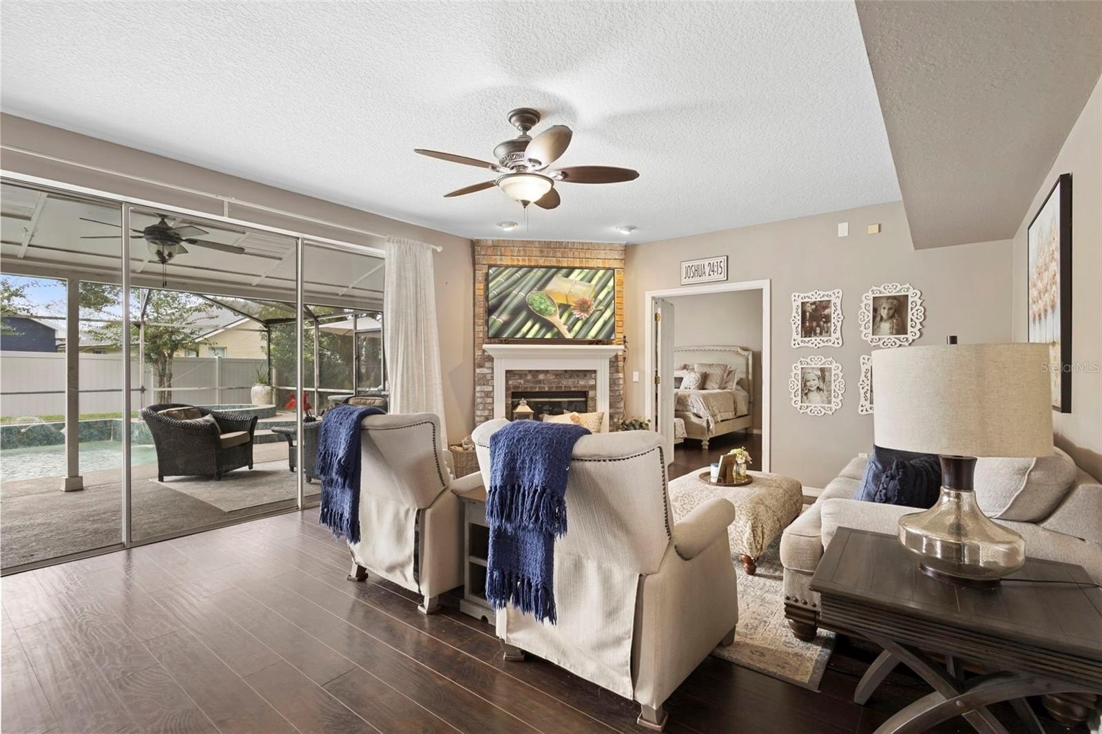 Welcome to your new home in Remington Park, Oviedo. This elegant five-bedroom home offers the perfect blend of comfort and style, thoughtfully designed for both everyday living and entertaining. Set on a desirable corner lot with a spacious front yard, the home makes a warm first impression. Inside, the formal dining room and a versatile front bedroom—ideal as a home office or study—set the tone for the well-planned layout. At the heart of the home, the open living room and kitchen overlook the screened-in pool and lanai, creating an effortless flow between indoor and outdoor living. The living room features generous space and a cozy fireplace, while the kitchen offers granite countertops, a breakfast bar, tile backsplash, pantry, and a bright dining nook. The primary suite is a peaceful retreat with a sitting area overlooking the pool, direct patio access, and a beautifully updated bath featuring dual quartz-topped vanities, a soaking tub, and a separate shower. Upstairs, a large loft provides additional living space, along with three bedrooms and an updated full bath. Step outside to enjoy the screened pool and covered lanai—perfect for relaxing or entertaining—and a privacy-fenced backyard with plenty of green space to play or garden. The roof was replaced in 2019. As a resident of Remington Park you will enjoy access to Lake Hayes, Basketball Courts, Pickleball Courts and a playground. Remington Park offers a prime Oviedo location close to SR 417, UCF, Research Park, Seminole State College, and Oviedo on the Park with great restaurants, shopping, and community events. With top-rated schools and an easy drive to the beaches and attractions, this is Central Florida living at its best. Schedule your private showing today and experience all this home has to offer.