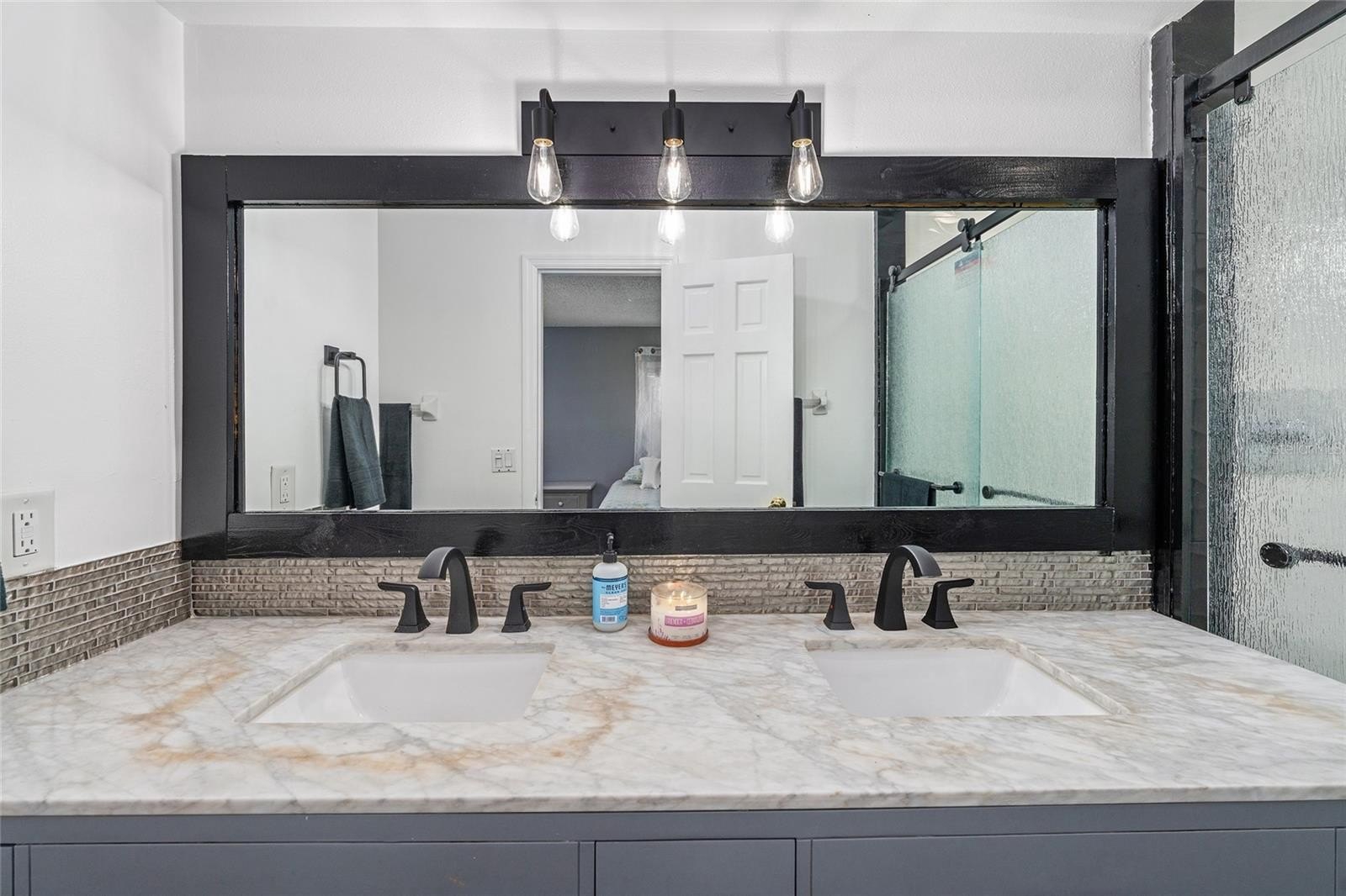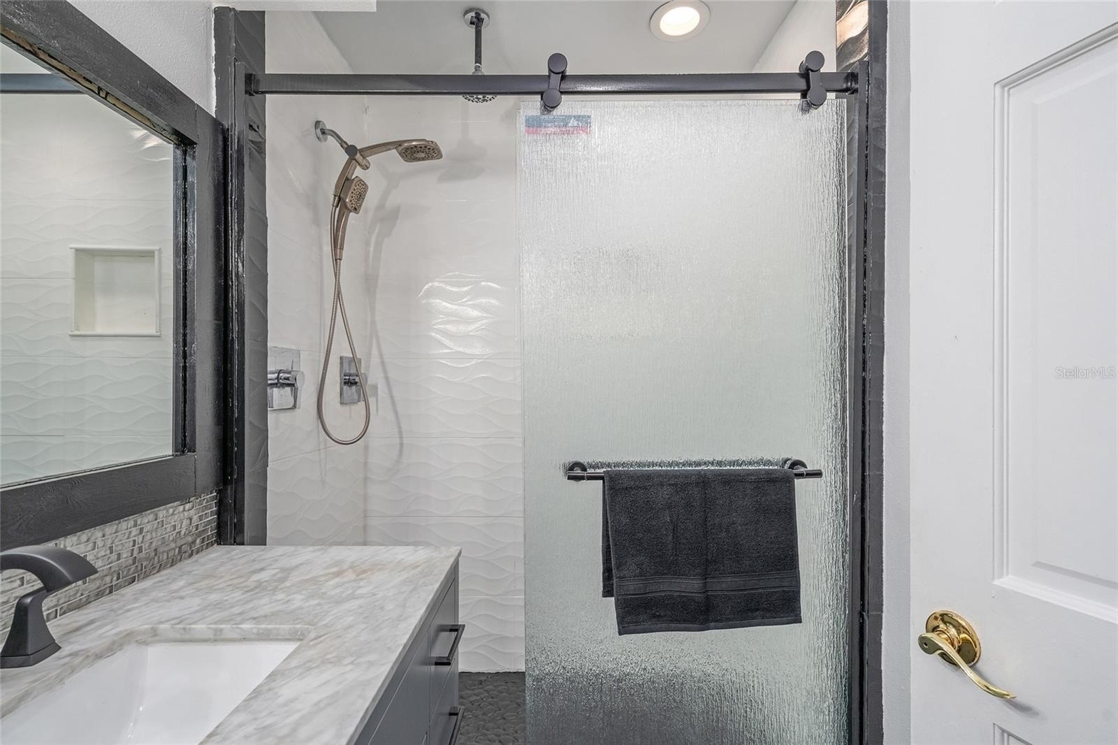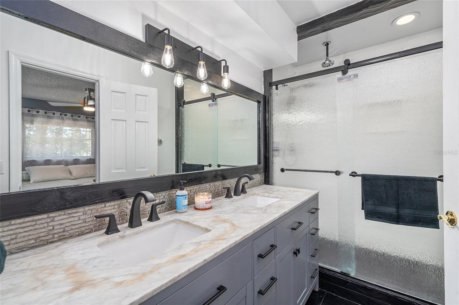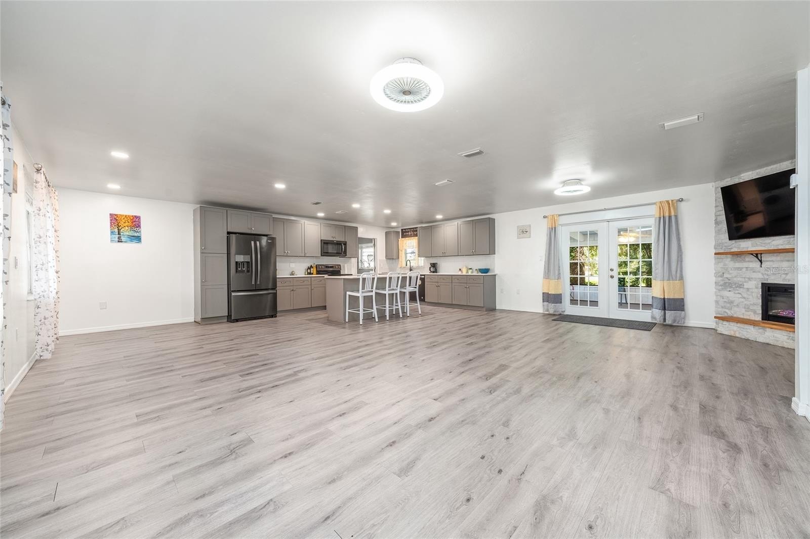 This beautifully updated home with a newer roof for peace of mind rests on a .76-acre oak-shaded corner lot in a quiet, established neighborhood. Located within easy walking distance to downtown Kissimmee, Neocity, and the SunRail station, it offers both serenity and accessibility. NO HOA here, and you’ll also enjoy effortless access to restaurants, shopping, public boat ramps, and the nearby bass-rich waters of Lake Toho. Inside, large windows fill the space with natural light, complementing a neutral color palette, updated lighting fixtures, and newly installed luxury vinyl plank flooring. The open living area is perfect for entertaining, featuring wide open spaces and a stacked stone fireplace that sets the tone for gatherings. Glass-inset French doors lead to a spacious screened Florida room with an in-ground spa, ideal for relaxing while overlooking the peaceful, tree-lined backyard. The recently updated kitchen is thoughtfully designed with Shaker-style cabinetry, a stainless farmhouse apron sink, recessed LED lighting, solid surface countertops, stainless steel appliances, and a center island that invites casual dining and conversation. The owner’s suite offers a spa-inspired retreat with a marble-topped double vanity and a walk-in shower adorned with custom tilework and pebble-style flooring. Two additional guest rooms and an updated full guest bath provide comfort for visitors or a growing household. A dedicated laundry room with a front-load washer and dryer adds everyday convenience. Bring your toys as the oversized lot easily accommodates boats, RVs, and outdoor gear. A storage shed adds functionality, and mature landscaping enhances the sense of calm and privacy. This home delivers the peaceful feel of country living with all the conveniences of city life, making it a rare and inviting find in the heart of Kissimmee.