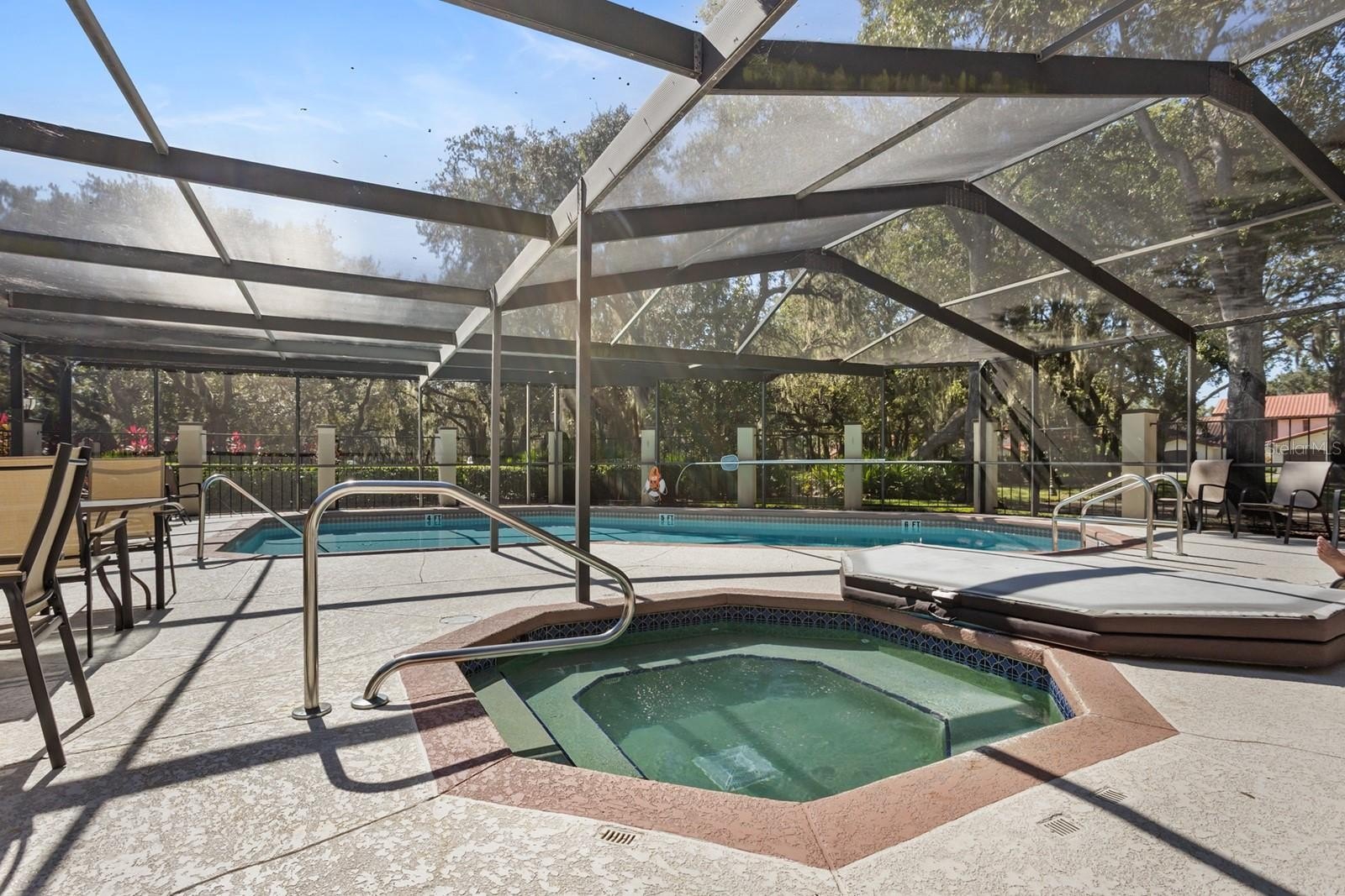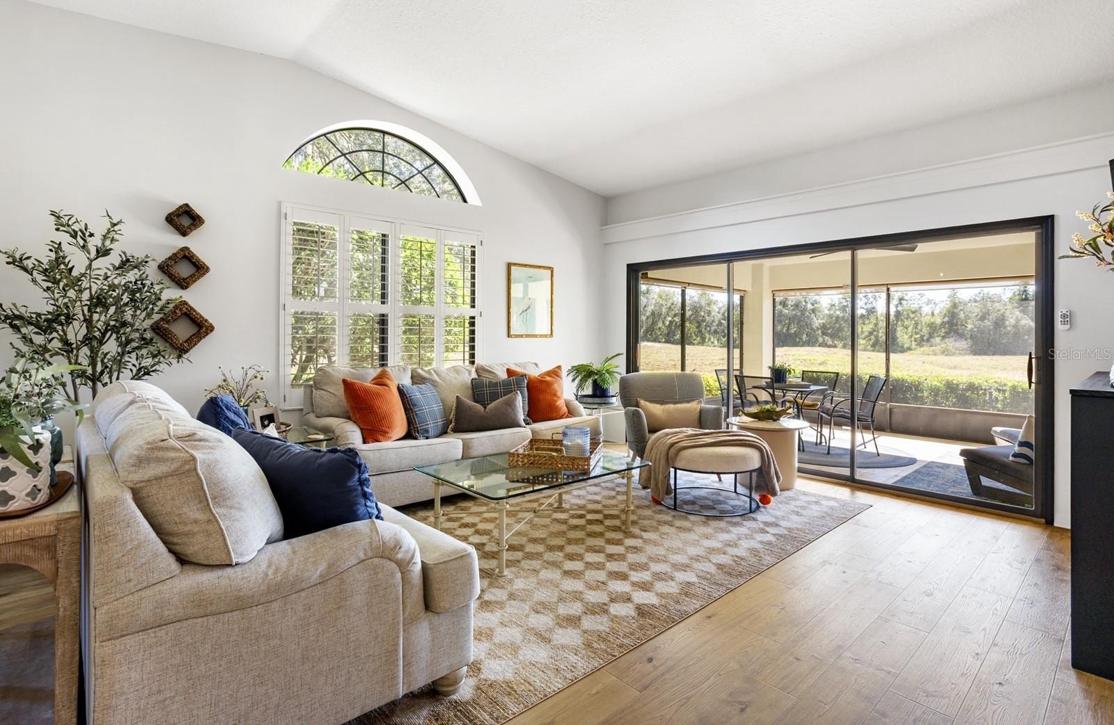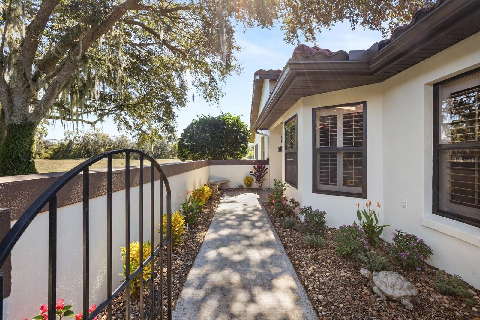 Spacious Single-Level Townhome Surrounded by Nature! Welcome to this beautifully maintained 3-bedroom, 2-bathroom townhome offering 1,897 square feet of comfortable single-level living in a peaceful, wooded setting. Built in 1997, this home combines modern updates with timeless design, featuring vaulted ceilings, an open floor plan, and abundant natural light through a large triple slider in the living room. Enjoy sunrise views from the screened-in back porch with privacy sunshades and access from both the living room and primary suite, or unwind with sunset views from the gated front courtyard. The spacious primary suite includes a large walk-in closet, water closet, walk-in shower with bench, and a relaxing soaking tub. The secondary suite area is thoughtfully separated for privacy. Additional highlights include a flex room with a built-in desk, custom shutter window treatments, keyless Wi-Fi entry, inside laundry room, and a cozy fireplace. The large two-car garage features a new soft-close opener, and a tile roof. Recent updates include a new A/C (2022), new water heater (2024), and matching Whirlpool kitchen appliances (2025). Residents enjoy access to exceptional community amenities—including a pool, jacuzzi, sauna, gym, locker rooms with showers, library, and clubhouse—all within walking distance. Exciting new additions are coming soon, including a 9-hole golf course, driving range, splash pad, dog park, nature trails, and a grocery shopping center nearby. This home also allows short-term rentals (1-month minimum)—perfect for flexible living or investment opportunities. Experience the tranquility, comfort, and convenience of this stunning townhome today!