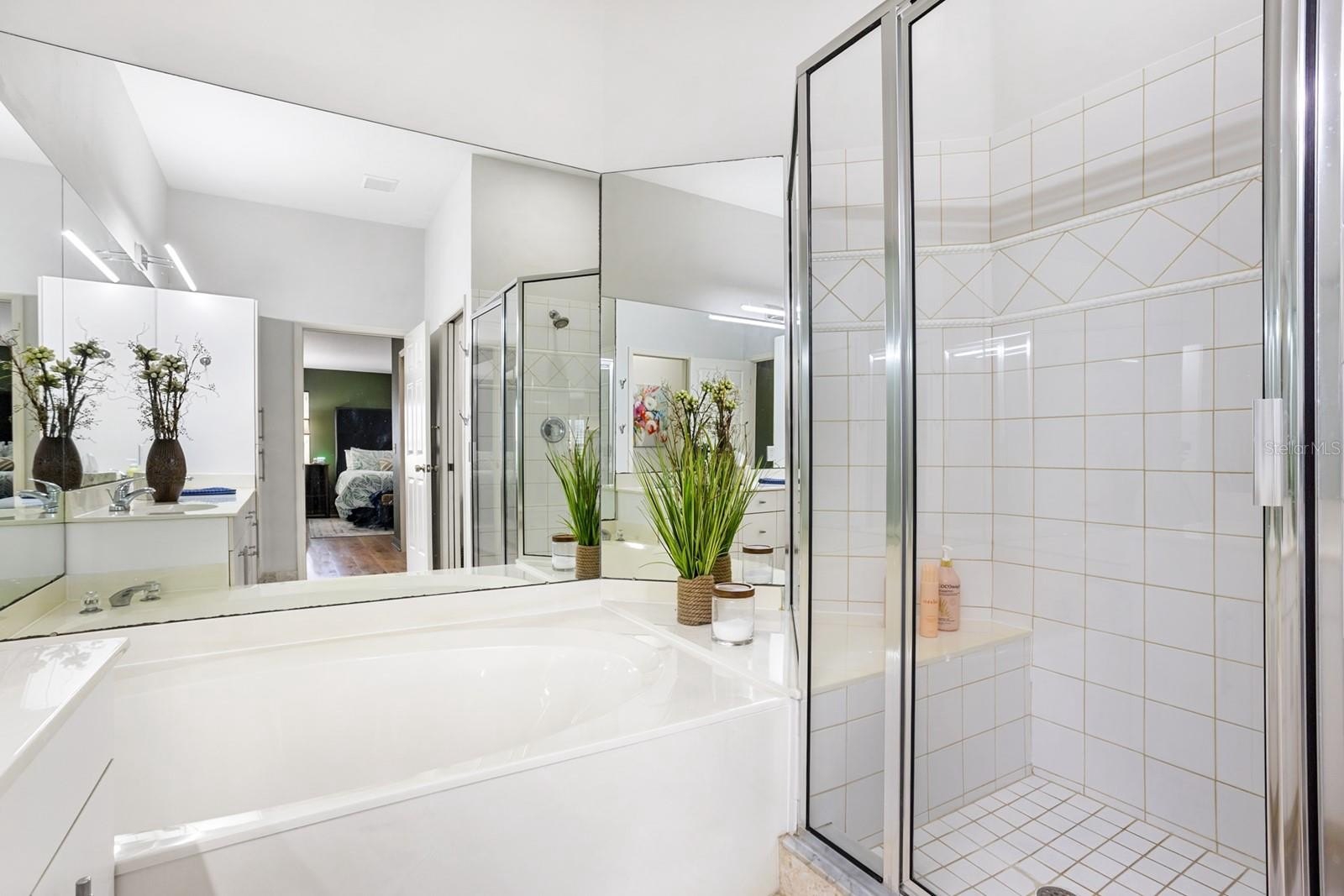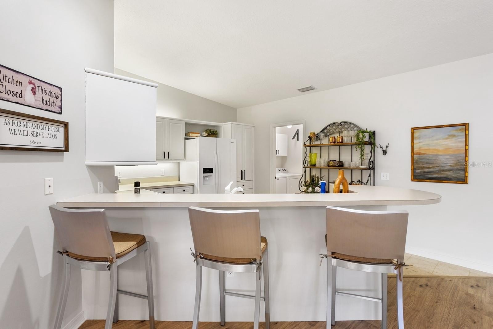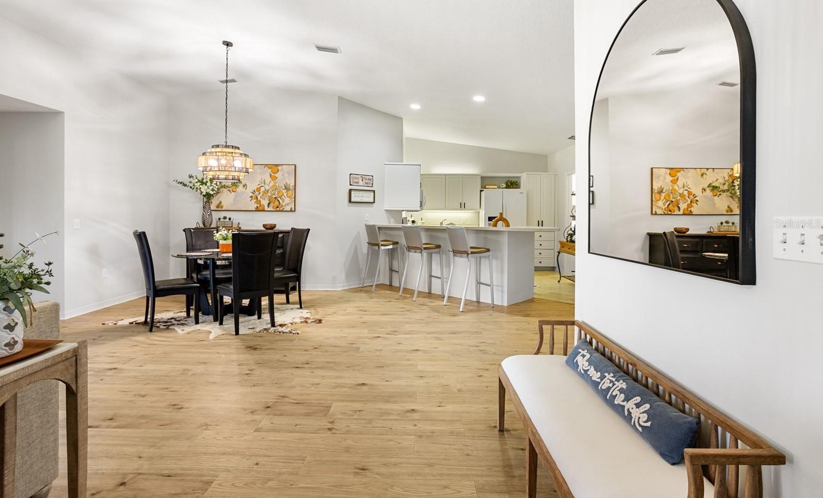 Spacious Single-Level Townhome Surrounded by Nature! Welcome to this beautifully maintained 3-bedroom, 2-bathroom townhome offering 1,897 square feet of comfortable single-level living in a peaceful, wooded setting. Built in 1997, this home combines modern updates with timeless design, featuring vaulted ceilings, an open floor plan, and abundant natural light through a large triple slider in the living room. Enjoy sunrise views from the screened-in back porch with privacy sunshades and access from both the living room and primary suite, or unwind with sunset views from the gated front courtyard. The spacious primary suite includes a large walk-in closet, water closet, walk-in shower with bench, and a relaxing soaking tub. The secondary suite area is thoughtfully separated for privacy. Additional highlights include a flex room with a built-in desk, custom shutter window treatments, keyless Wi-Fi entry, inside laundry room, and a cozy fireplace. The large two-car garage features a new soft-close opener, and a tile roof. Recent updates include a new A/C (2022), new water heater (2024), and matching Whirlpool kitchen appliances (2025). Residents enjoy access to exceptional community amenities—including a pool, jacuzzi, sauna, gym, locker rooms with showers, library, and clubhouse—all within walking distance. Exciting new additions are coming soon, including a 9-hole golf course, driving range, splash pad, dog park, nature trails, and a grocery shopping center nearby. This home also allows short-term rentals (1-month minimum)—perfect for flexible living or investment opportunities. Experience the tranquility, comfort, and convenience of this stunning townhome today!