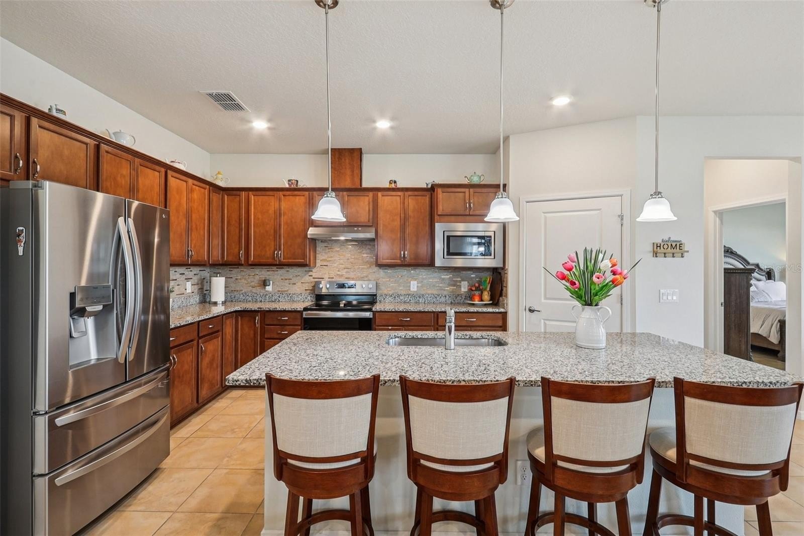 **SELLER CONTRIBUTION TO CLOSING COSTS AVAILABLE** Great opportunity and price for this immaculately maintained home inside the GATED 55+ Tohoqua Reserve. This split floor plan 3/2 with a den / flex space which can be easily converted to a 4th bedroom, office, or living area, features luxurious details such as neutral ceramic tile floors throughout the entire home, kitchen with oversized island, 42" cabinets with crown moulding, granite countertops and stainless steel appliances, overlooking the living and dining room, for an open concept designed for entertaining, which flows seamlessly into a covered screened-in extended patio, facing a large backyard with no rear neighbors for added privacy and enjoying nature. The primary bedroom is located in the back of the home, providing a tranquil retreat which includes an en-suite bathroom featuring a fully tiled super-shower with a bench, double vanity, huge walk-in closet and quartz countertops. The remaining bedrooms are spacious and comfortable for your guests or occupants alike, and the secondary bathroom has a tub perfect for soaking and relaxing. The home is rounded off by a convenient inside laundry room with a washer and dryer, a 2 car garage with extra mounted storage space, and paved driveway for additional vehicles. The community features private amenities like a Clubhouse with Fitness Center, resort-style pool and outdoor fire pit, pickleball and bocce ball courts, dog park and more – exclusively reserved for those 55 and older. Residents also have access to Tohoqua's amenities outside the reserve, including another resort style pool for younger guests, and there are more than 5 miles of trails winding throughout the community for walking, running and bicycling to enjoy the Florida Lifestyle. The Tohoqua trails connect to trails outside the community, including the Twin Oaks Conservation Area trail that takes you to the shores of Lake Tohopekaliga. For those who prefer to paddle, you can launch a canoe or kayak into the Saint Cloud Canal and go north to East Lake Tohopekaliga or south to Lake Tohopekaliga. Restaurants, shopping centers, medical facilities and major roads like the Turnpike and 192 are minutes away, and less than an hour from the East Coast beaches and theme parks. Come see this home today!