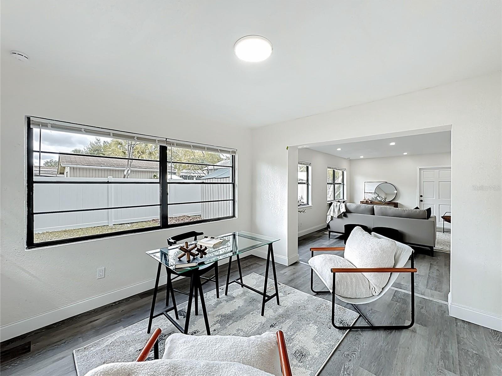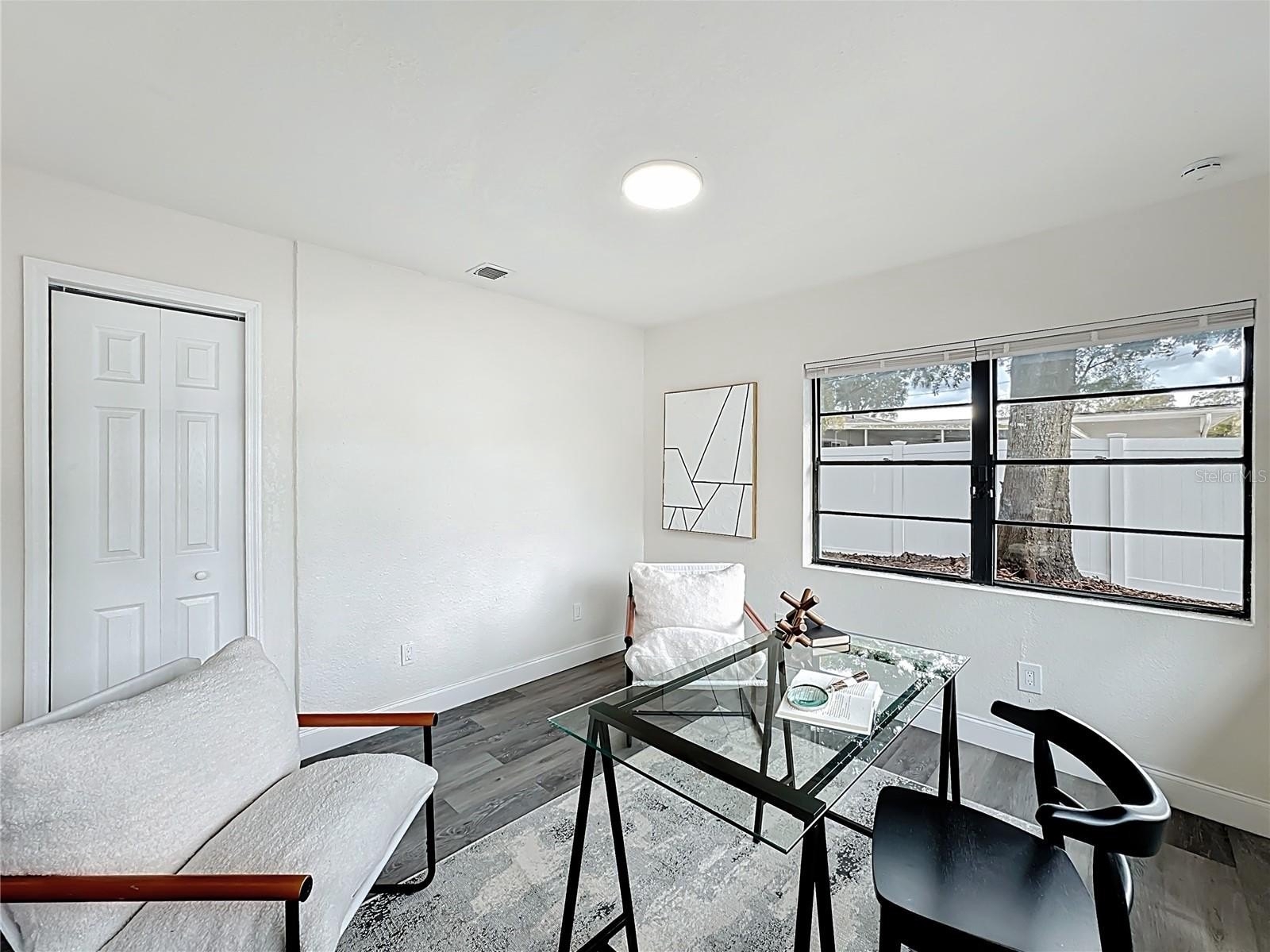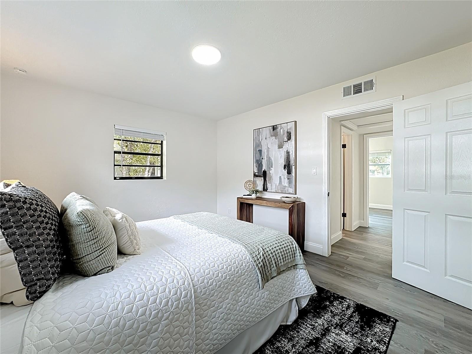 Welcome to Audubon Park, one of Orlando’s most desirable and vibrant communities! Discover this beautiful 3-bedroom, 2-bath home perfectly situated near Baldwin Park, offering easy access to major highways, avenues, top-rated restaurants, shops, and popular attractions. This move-in ready home has been freshly painted inside and out and features luxury vinyl flooring throughout, combining modern style with easy maintenance. The home welcomes you with charming and well-maintained front landscaping, creating a warm invitation from the moment you arrive. Inside, you’ll find a stunning modern kitchen with quartz countertops, elegant cabinetry, and stainless steel appliances — perfect for cooking enthusiasts and entertainers alike. A spacious family room provides the ideal gathering space, complemented by an additional area that could serve as a home office, reading nook, or craft room, adding even more versatility to the property. The primary suite offers a private retreat with a spacious walk-in closet and a luxurious bathroom featuring illuminated mirrors and elegant tile flooring, creating a contemporary ambiance. The roof was replaced in 2021, providing peace of mind and energy efficiency. Outside, the backyard includes a shed for extra storage, plus additional storage space in the carport for convenience. We have furnished some areas of the house to help you envision yourself in your new home. Don’t miss the opportunity to live in Audubon Park, where residential charm meets urban convenience. Come see it today — and fall in love with your next home!