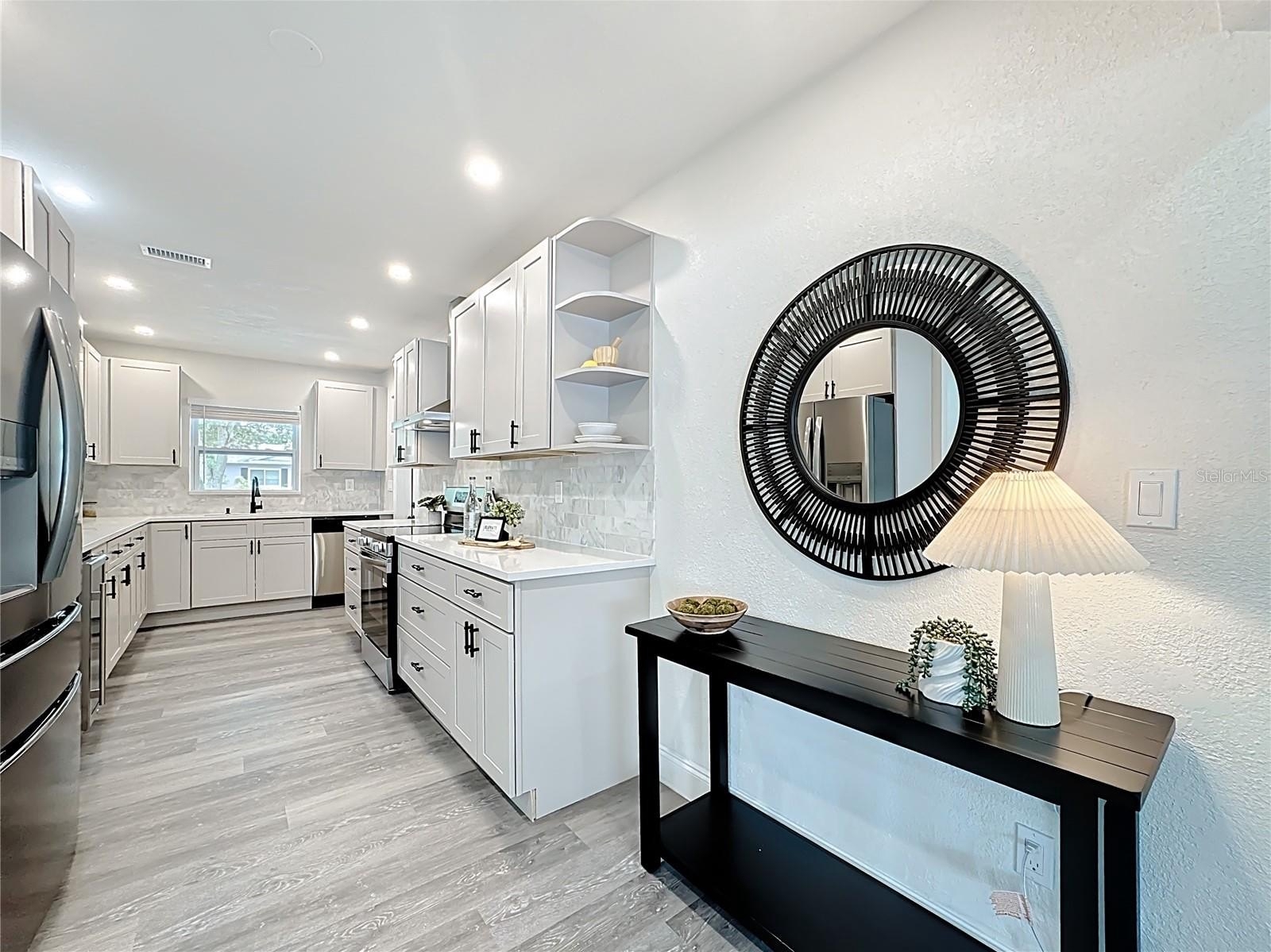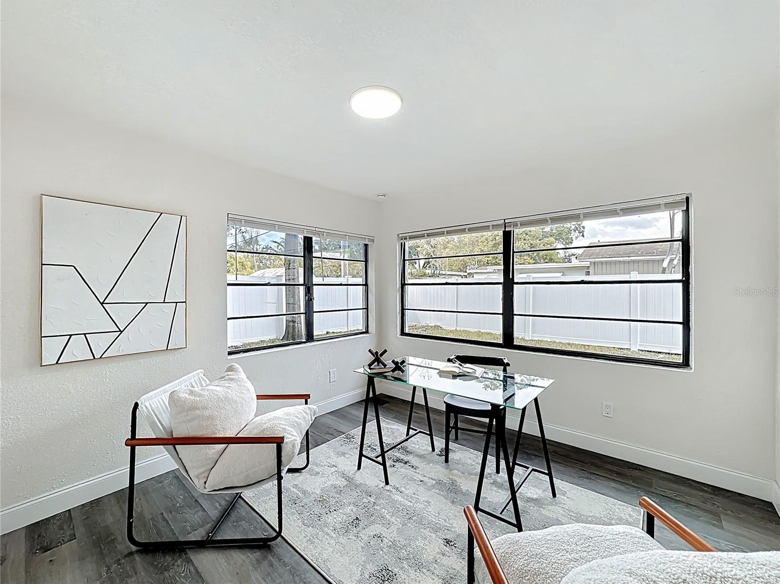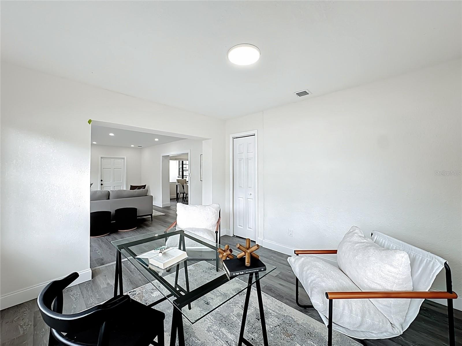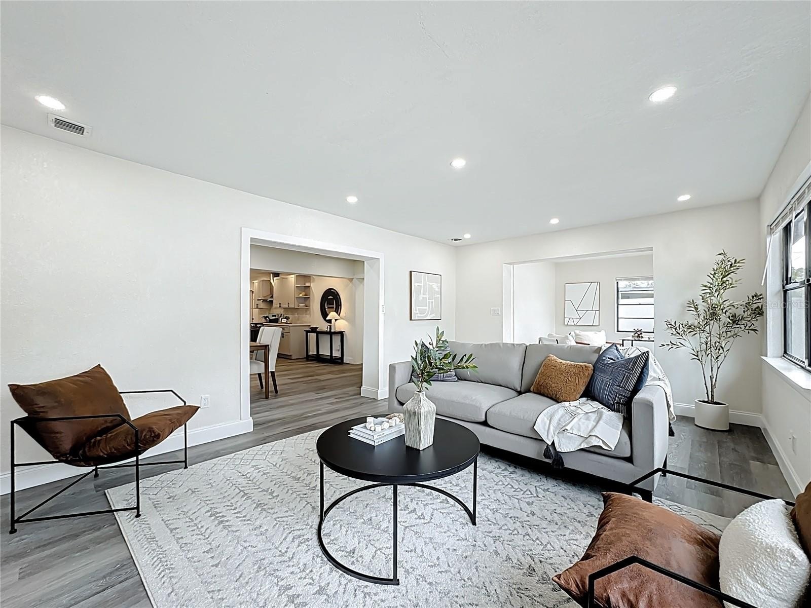 Welcome to Audubon Park, one of Orlando’s most desirable and vibrant communities! Discover this beautiful 3-bedroom, 2-bath home perfectly situated near Baldwin Park, offering easy access to major highways, avenues, top-rated restaurants, shops, and popular attractions. This move-in ready home has been freshly painted inside and out and features luxury vinyl flooring throughout, combining modern style with easy maintenance. The home welcomes you with charming and well-maintained front landscaping, creating a warm invitation from the moment you arrive. Inside, you’ll find a stunning modern kitchen with quartz countertops, elegant cabinetry, and stainless steel appliances — perfect for cooking enthusiasts and entertainers alike. A spacious family room provides the ideal gathering space, complemented by an additional area that could serve as a home office, reading nook, or craft room, adding even more versatility to the property. The primary suite offers a private retreat with a spacious walk-in closet and a luxurious bathroom featuring illuminated mirrors and elegant tile flooring, creating a contemporary ambiance. The roof was replaced in 2021, providing peace of mind and energy efficiency. Outside, the backyard includes a shed for extra storage, plus additional storage space in the carport for convenience. We have furnished some areas of the house to help you envision yourself in your new home. Don’t miss the opportunity to live in Audubon Park, where residential charm meets urban convenience. Come see it today — and fall in love with your next home!
