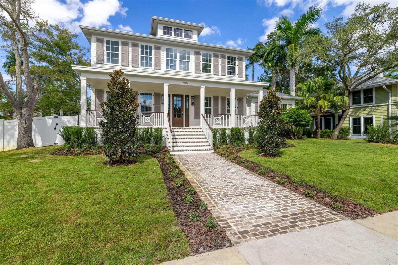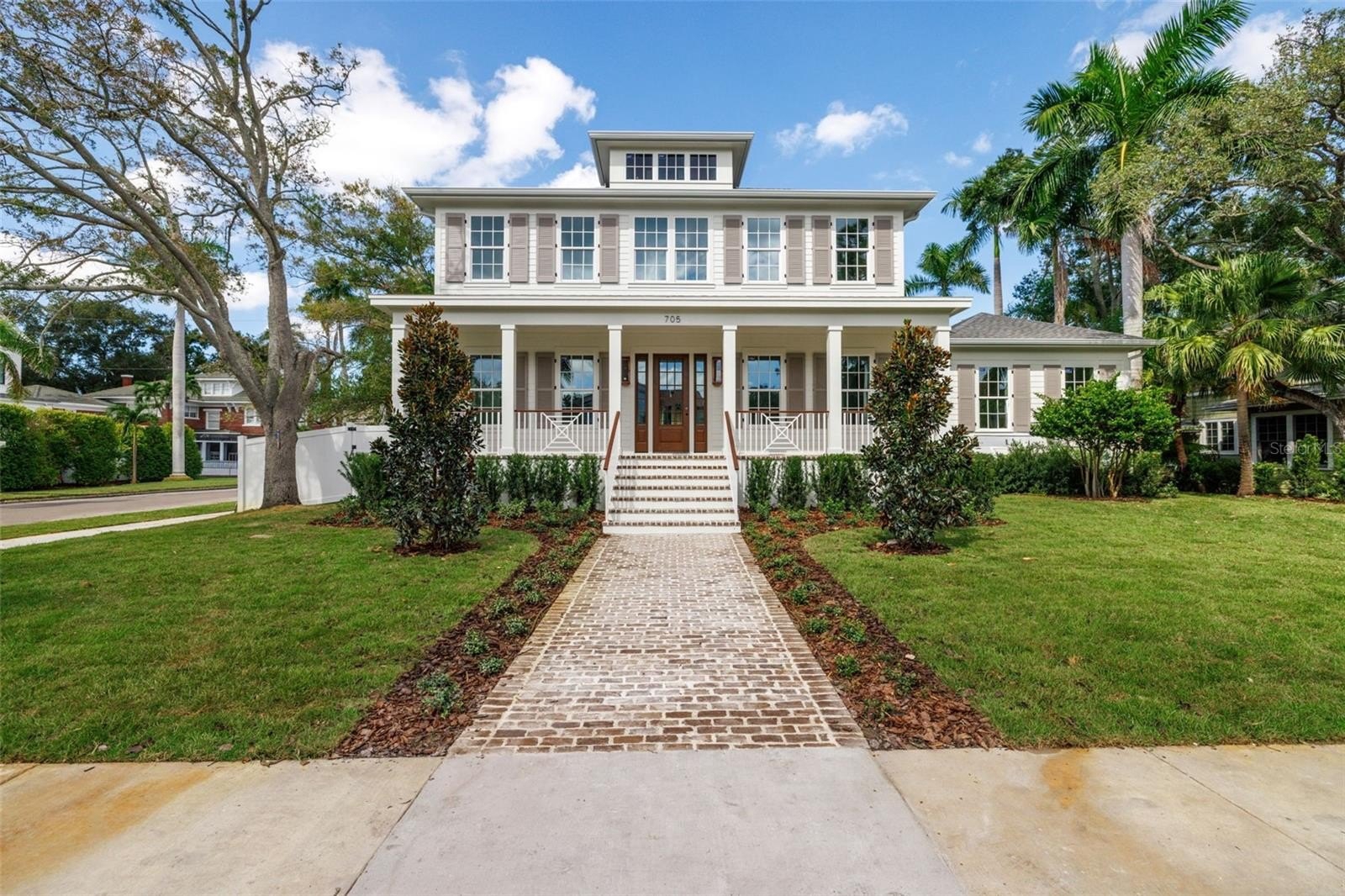 Under Construction. Est. Completion: December 2025 | This is a CANOPY SIGNATURE HOME in collaboration with LAUREN LEITNER DESIGN. Would you love to live just steps from BEACH DRIVE in St. Petersburg’s coveted Historic Old Northeast in a custom designed Canopy Home? Here’s your chance to make that dream a reality with Canopy Builders – St. Petersburg’s most trusted name in luxury home construction. This new build sits on a desirable 89 x 110 sq ft corner lot and offers 4 Bedrooms + Study + Loft, 4 Baths, an oversized 2-car garage, pool and spa, plus an Accessory Dwelling Unit (ADU) with 1 bedroom and 1 bath. The main residence boasts 3,985 sq ft of living space, with the ADU adding 589 sq ft for a total of 4,574 sq ft under air. The ADU includes a full kitchen, laundry, and walk-in closet—ideal for guests, extended family, or rental income. Surrounded by brick streets and mature oak trees, this home blends modern luxury with timeless character, just a 10-minute walk to downtown St. Pete and the waterfront parks. From the welcoming front porch, you enter a foyer with tongue-and-groove paneling and designer lighting, while the formal dining room showcases grasscloth wallpaper, wainscoting, and a statement chandelier. The great room boasts a fireplace and coffered ceilings, flowing seamlessly into the kitchen, designed as both a chef’s dream and a gathering space. The kitchen features a La Cornue range, paneled Sub-Zero refrigerator, Bosch dishwasher, and inset custom cabinetry, anchored by a white oak island with Calcutta marble countertops, tongue-and-groove ceiling, and a custom reeded range hood. A breakfast nook with a gold pendant sits just beyond, while the butler’s pantry impresses with a paneled Avalon wine cooler, deep green cabinetry, brass shelving, marble counters, and gold hardware. The main level also includes a mudroom with dark cabinetry and brick herringbone flooring, a powder room with wallpaper and a soapstone vanity, and a laundry with custom cabinetry, marble checkerboard floors, and Calcutta counters. The primary suite offers wood-beamed ceilings and a spa-like bath with gold accents, fluted vanities, and Calcutta marble. Upstairs, a loft opens to three bedrooms, each with its own en suite, including designs with navy handcrafted tile and dark wood vanity, gingham tile with marble accents, and a white reeded vanity with silver hardware. The upstairs laundry includes deep green tile, Carrera marble counters, and soft white cabinetry. Canopy not only designed the interior but also customized all exterior finishes. Out back, enjoy a custom pool and spa, outdoor kitchen with grill and brick hood, and lush surroundings. The detached ADU includes quartz counters, white cabinetry, and subway tile backsplash. Planned features include Hardie Board siding, a tankless gas water heater, impact-resistant windows, and engineered hardwood floors throughout. Dual digital thermostats allow independent climate control. Additional luxuries include 10’ ceilings on the first floor, 9’ ceilings on the second, 8’ interior doors, and Canopy’s signature gas sconces on the porch. This home is walking distance to waterfront North Shore Park, biking distance to downtown, and just a 20-minute drive to St. Pete Beach or Tampa. Contact us to learn more about the custom finishes that make this home truly one of a kind.