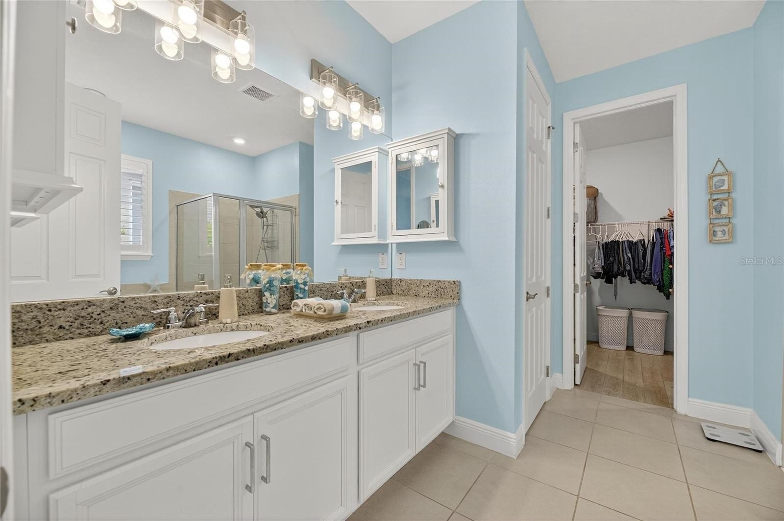 The open concept layout makes it easy to entertain or enjoy everyday living. The large kitchen is the heart of the home and overlooks the dining area and great room, creating a seamless flow. The kitchen features stainless steel Samsung appliances, granite counters, a large island, and plenty of cabinet space. Oversized windows, plantation shutters throughout, and double sliding doors fill the home with natural light and provide beautiful views of your private pool.