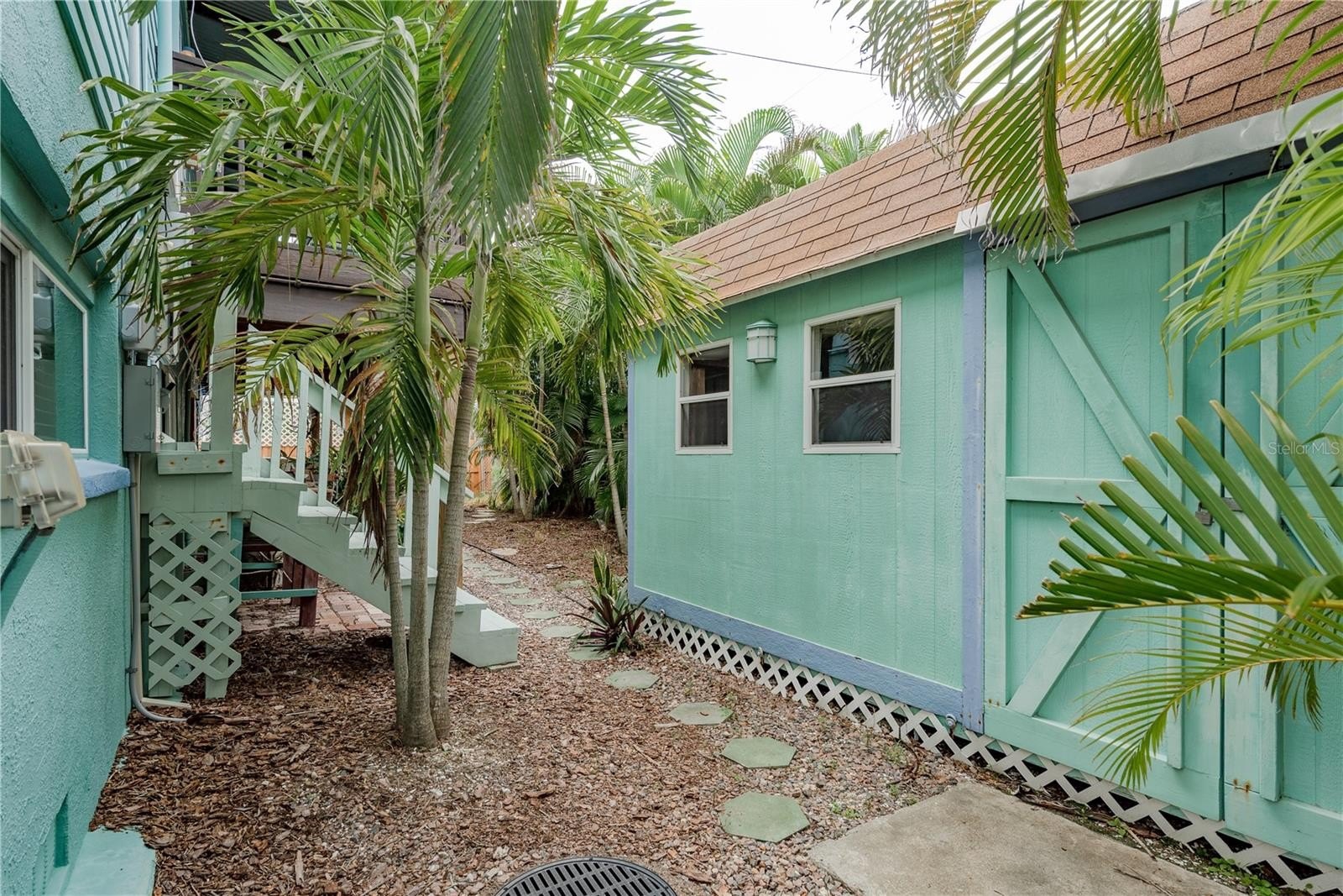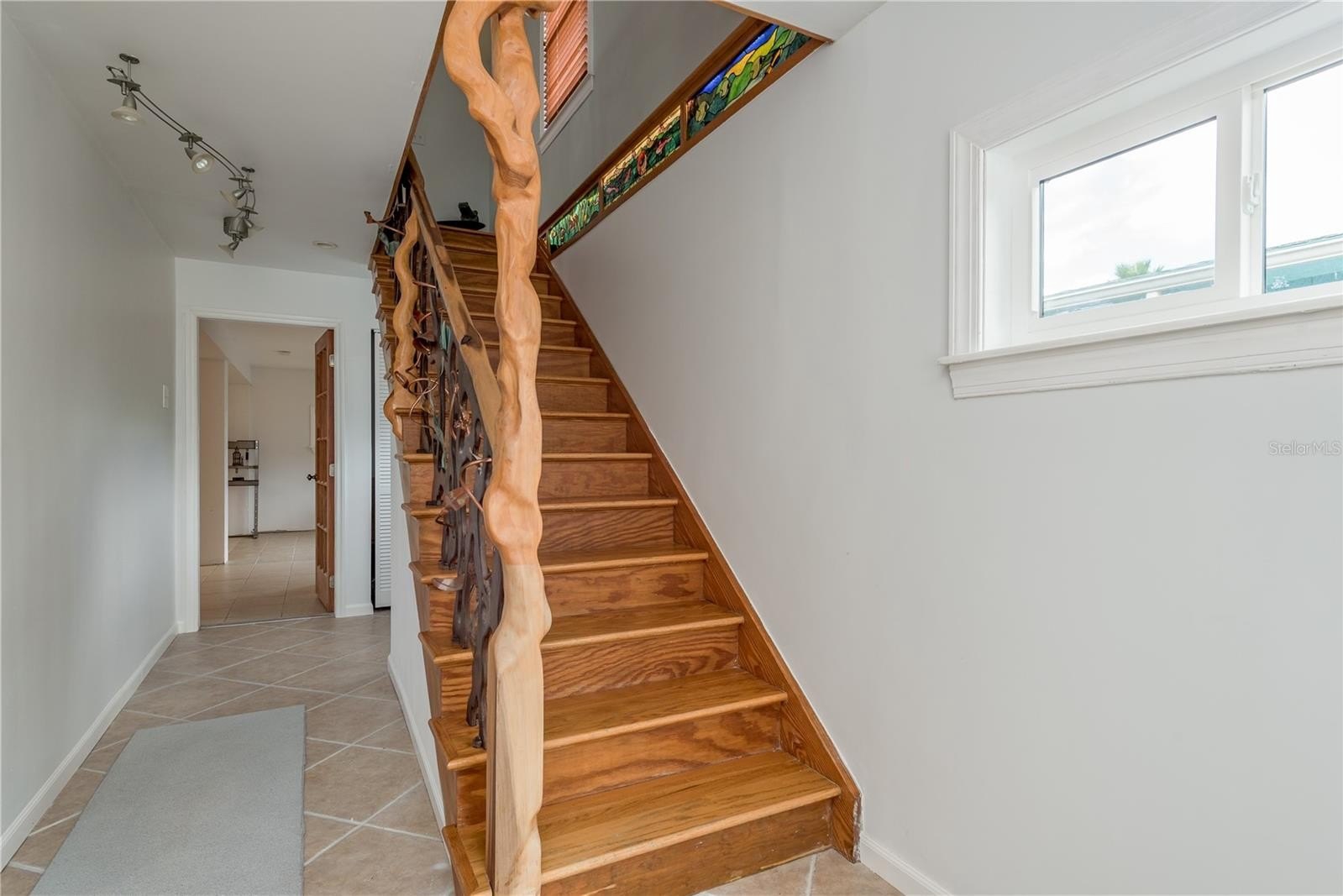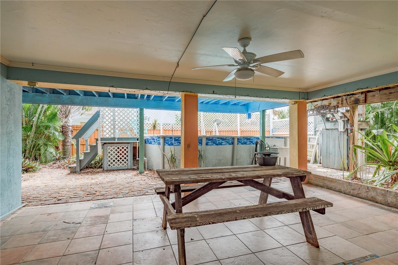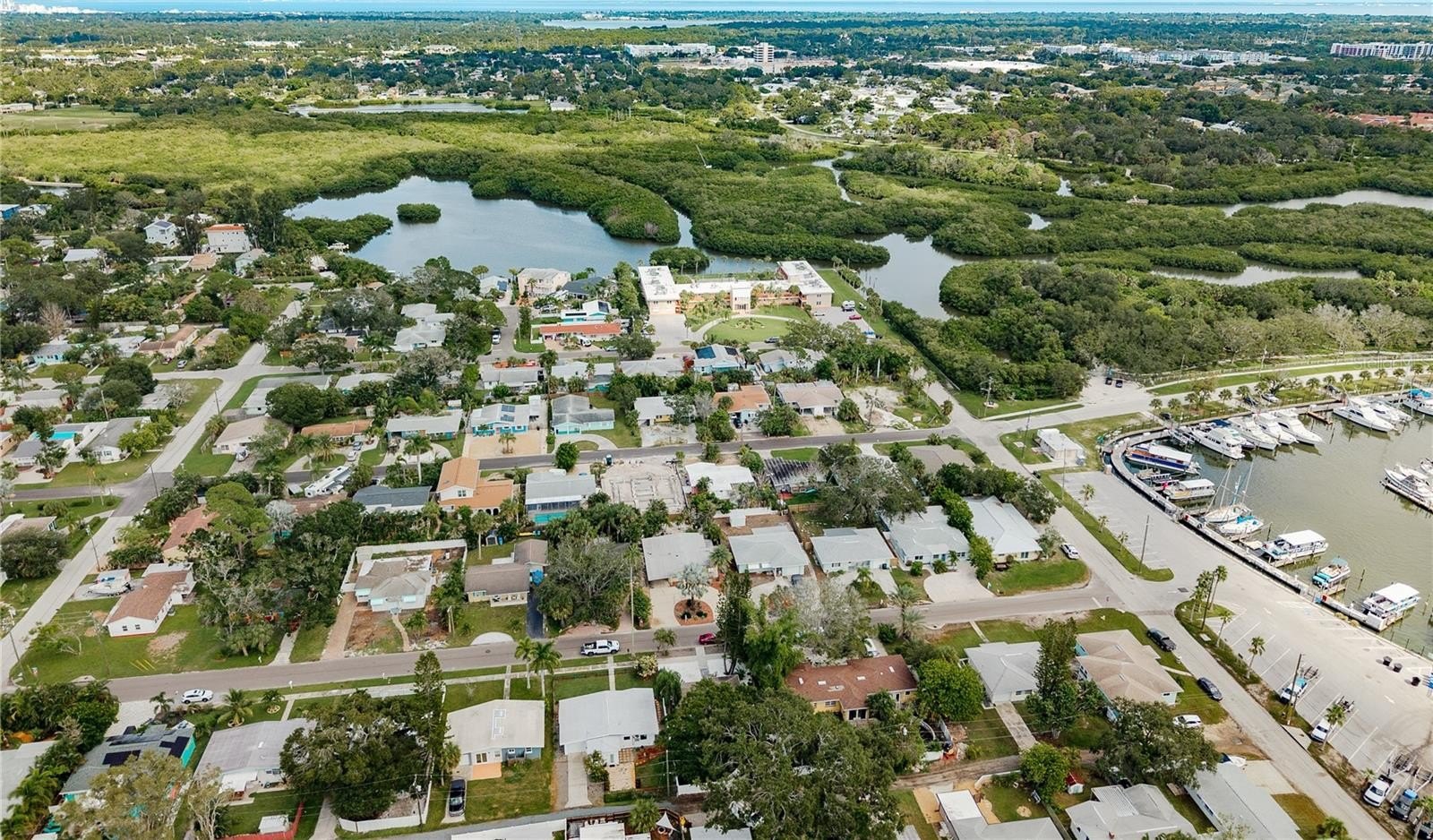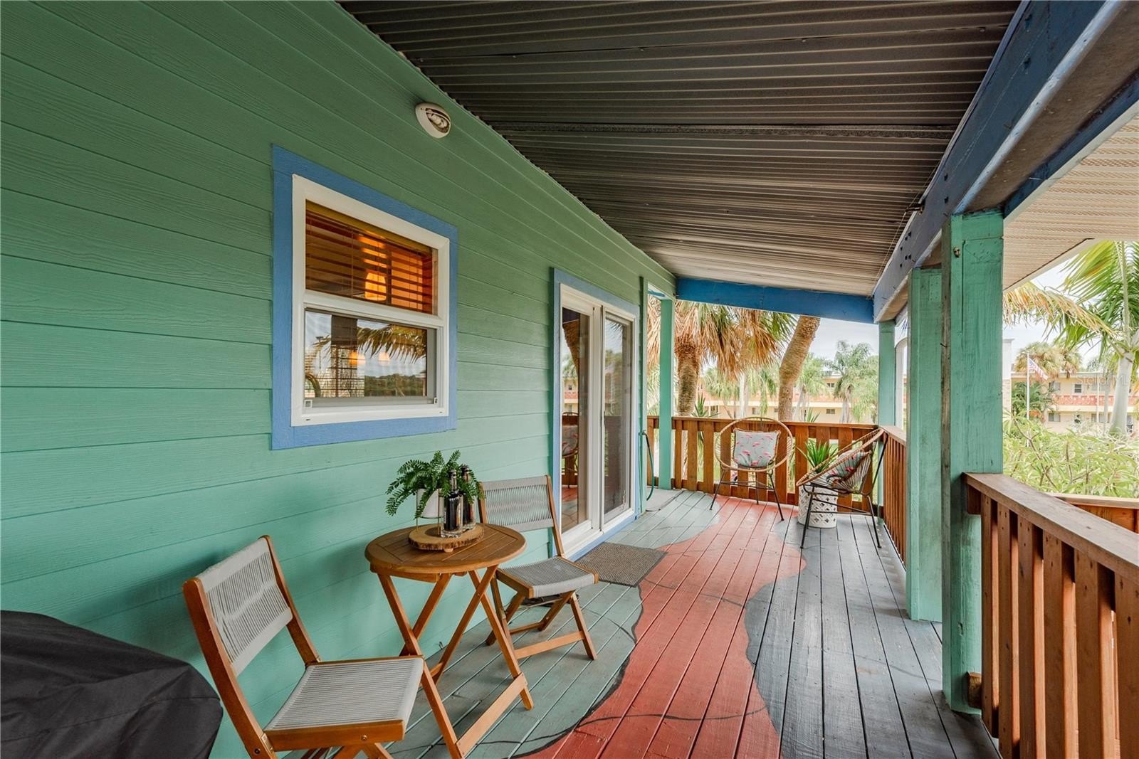 DISCOVER EXTRAORDINARY KEY WEST STYLE - stilt home, perfectly situated adjacent to the vibrant Gulfport Marina and minutes from downtown Gulfport. This unique property boasts an artistic flair from the moment you arrive. The incredible staircase was custom-designed and built by a local artisan. You have to see it to appreciate it. It's lighted and is one of a kind. The main level has just been painted a serene coastal blue complementing the BAMBOO FLOORING throughout. The handsome wood cabinets and shelving system in the living and dining rooms adds a lot of storage. The chef's kitchen features new soft-close cabinets with undermount lighting, GRANITE COUNTERTOPS and stylish tile backsplash with a suite of STAINLESS STEEL APPLIANCES. The split bedroom layout features a primary ensuite bedroom with walk-in closet, double custom vanities, spacious walk-in shower with 2 shower heads and a jetted tub for a relaxing soak. The sunny guest room has a walk-in closet, sliders to the balcony and is adjacent to the second bath also with a tiled walk-in shower. The third bedroom is currently being used as an office but could be yoga studio, craft room or whatever your imagination wants it to be! The lower level BONUS ROOM has been completely renovated with moisture-resistant DUROCK walls and PVC trim and elevated electrical system. A great space for a home gym, pool table or playroom. Safety and efficiency are paramount in this ECO-FRIENDLY home. All WINDOWS and SLIDERS are IMPACT-RESISTANT, it's completely SOLAR-POWERED including the hot water heater, a NEST thermostat was recently installed and the roof was replaced in 2018. Practical features like FRENCH DRAINS and sump pumps and gutters that drain to the pumps provide excellent water management. Enjoy the Florida lifestyle around the POOL with NEW LINER (2024) and solar pump (2024) or up on the deck surrounding sides of the house. Panoramic views of unforgettable sunsets and the marina await up on the rooftop deck. STORAGE abounds with an oversized two-car garage, gated RV/Boat storage complete with flood lights, power and water and an elevated shed perfect for an art studio, playhouse or workshop. You're close to beaches, shopping and dining and all the UNIQUE LIFESTYLE THAT GULFPORT OFFERS! This truly is a ONE-OF-A-KIND COASTAL GEM!