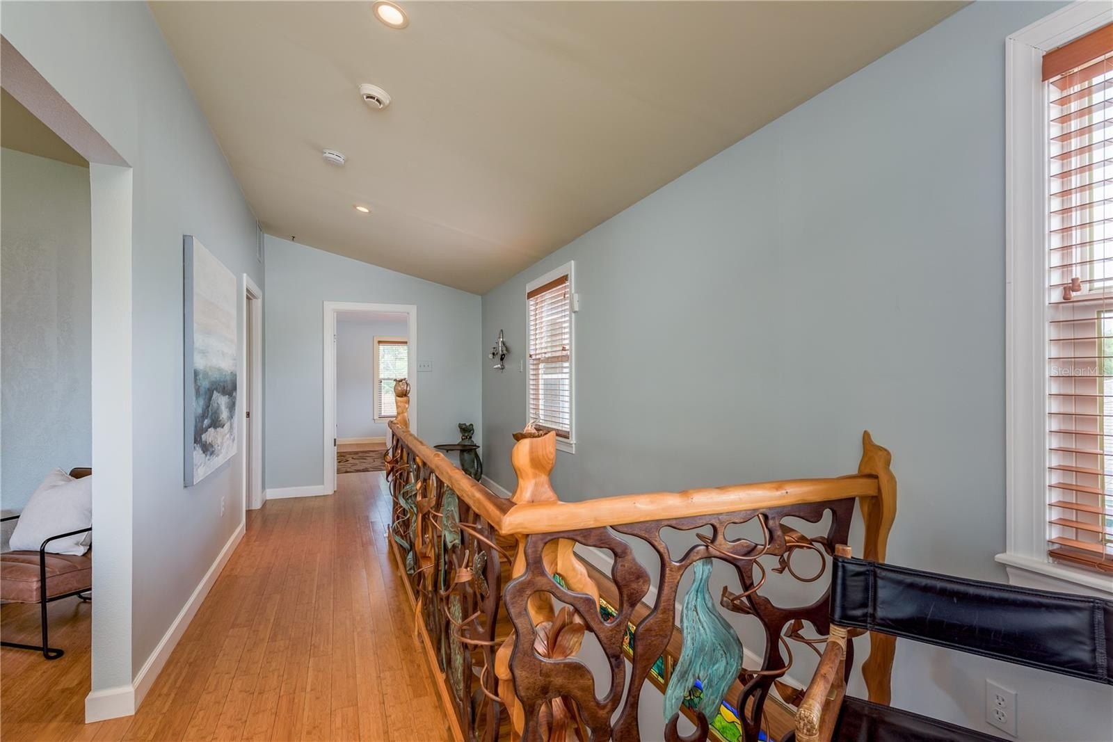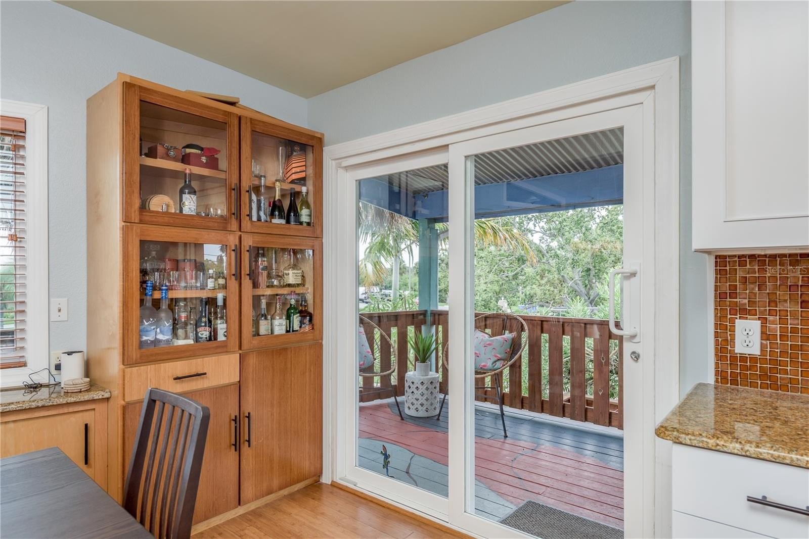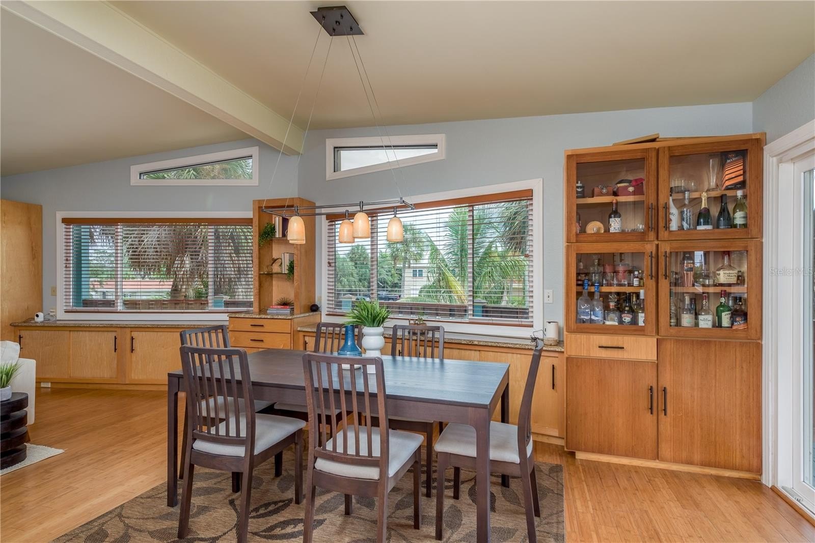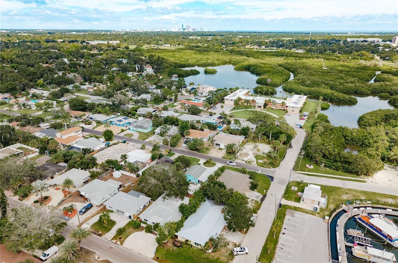 DISCOVER EXTRAORDINARY KEY WEST STYLE - stilt home, perfectly situated adjacent to the vibrant Gulfport Marina and minutes from downtown Gulfport. This unique property boasts an artistic flair from the moment you arrive. The incredible staircase was custom-designed and built by a local artisan. You have to see it to appreciate it. It's lighted and is one of a kind. The main level has just been painted a serene coastal blue complementing the BAMBOO FLOORING throughout. The handsome wood cabinets and shelving system in the living and dining rooms adds a lot of storage. The chef's kitchen features new soft-close cabinets with undermount lighting, GRANITE COUNTERTOPS and stylish tile backsplash with a suite of STAINLESS STEEL APPLIANCES. The split bedroom layout features a primary ensuite bedroom with walk-in closet, double custom vanities, spacious walk-in shower with 2 shower heads and a jetted tub for a relaxing soak. The sunny guest room has a walk-in closet, sliders to the balcony and is adjacent to the second bath also with a tiled walk-in shower. The third bedroom is currently being used as an office but could be yoga studio, craft room or whatever your imagination wants it to be! The lower level BONUS ROOM has been completely renovated with moisture-resistant DUROCK walls and PVC trim and elevated electrical system. A great space for a home gym, pool table or playroom. Safety and efficiency are paramount in this ECO-FRIENDLY home. All WINDOWS and SLIDERS are IMPACT-RESISTANT, it's completely SOLAR-POWERED including the hot water heater, a NEST thermostat was recently installed and the roof was replaced in 2018. Practical features like FRENCH DRAINS and sump pumps and gutters that drain to the pumps provide excellent water management. Enjoy the Florida lifestyle around the POOL with NEW LINER (2024) and solar pump (2024) or up on the deck surrounding sides of the house. Panoramic views of unforgettable sunsets and the marina await up on the rooftop deck. STORAGE abounds with an oversized two-car garage, gated RV/Boat storage complete with flood lights, power and water and an elevated shed perfect for an art studio, playhouse or workshop. You're close to beaches, shopping and dining and all the UNIQUE LIFESTYLE THAT GULFPORT OFFERS! This truly is a ONE-OF-A-KIND COASTAL GEM!