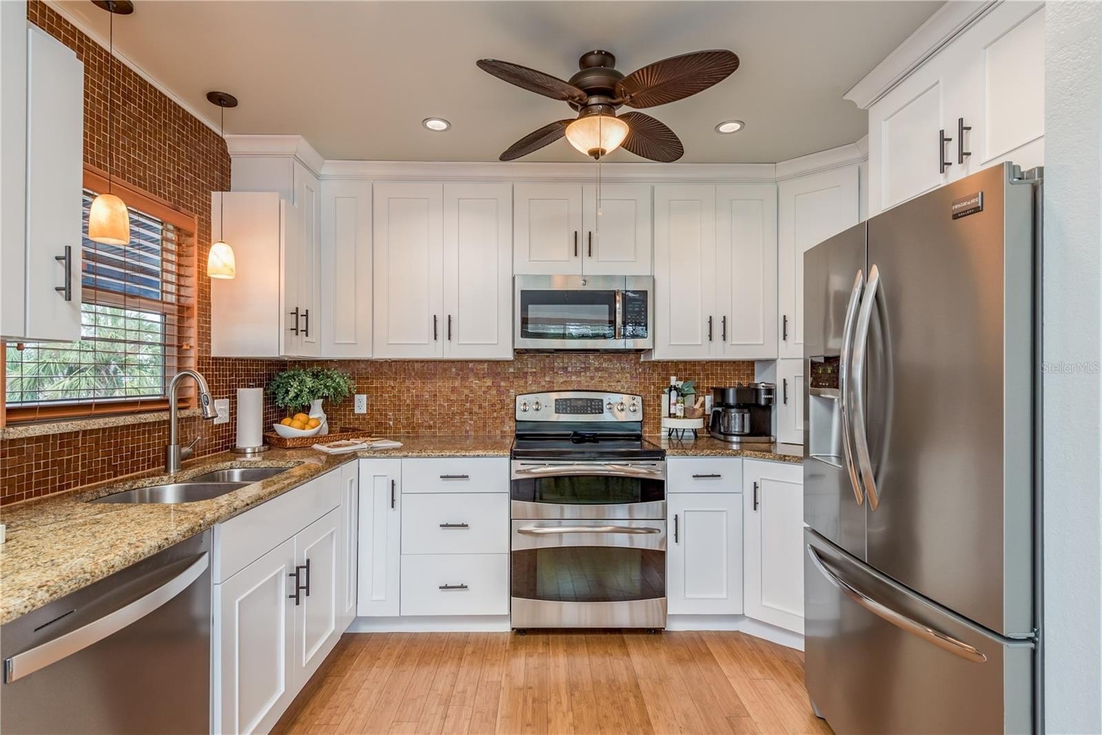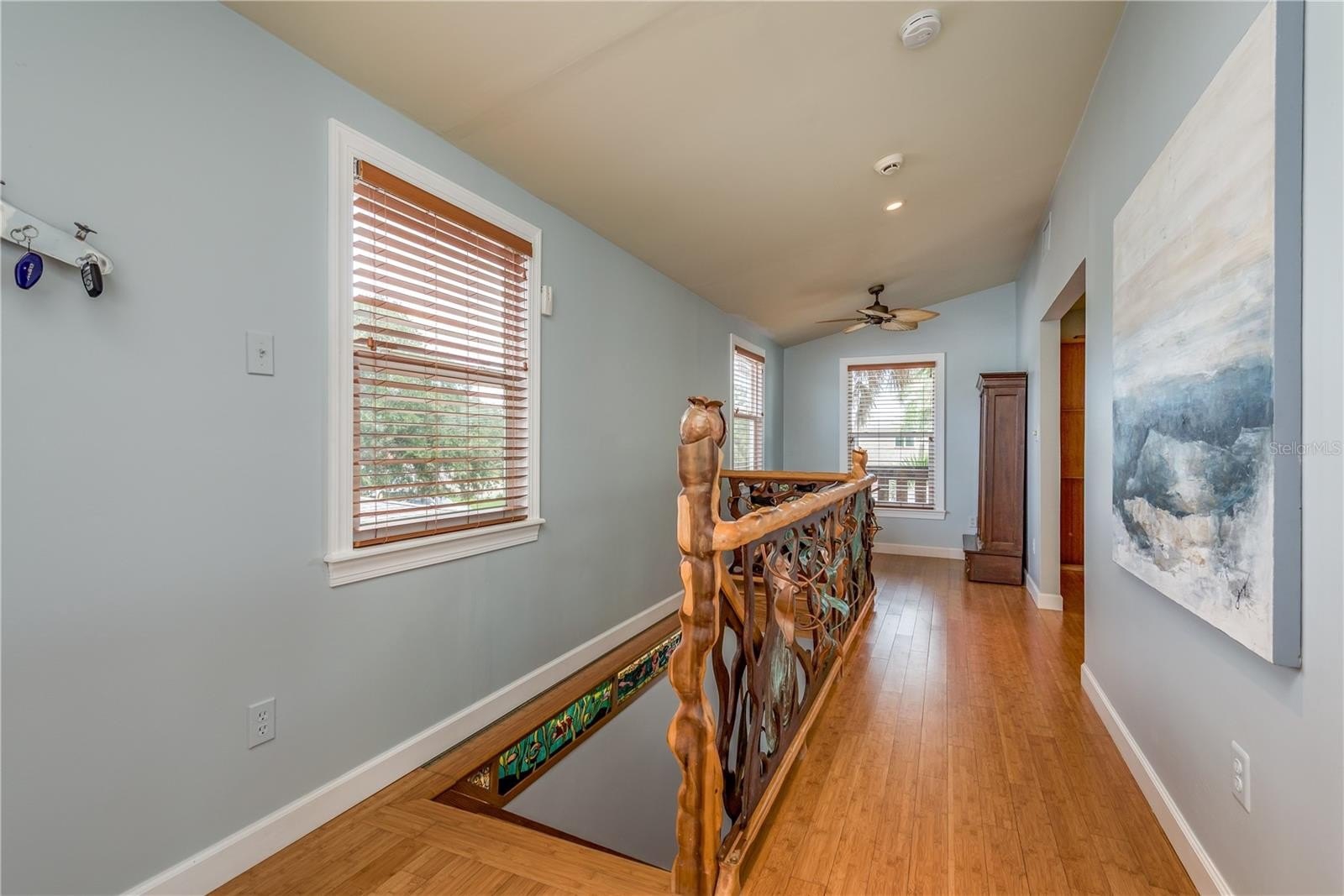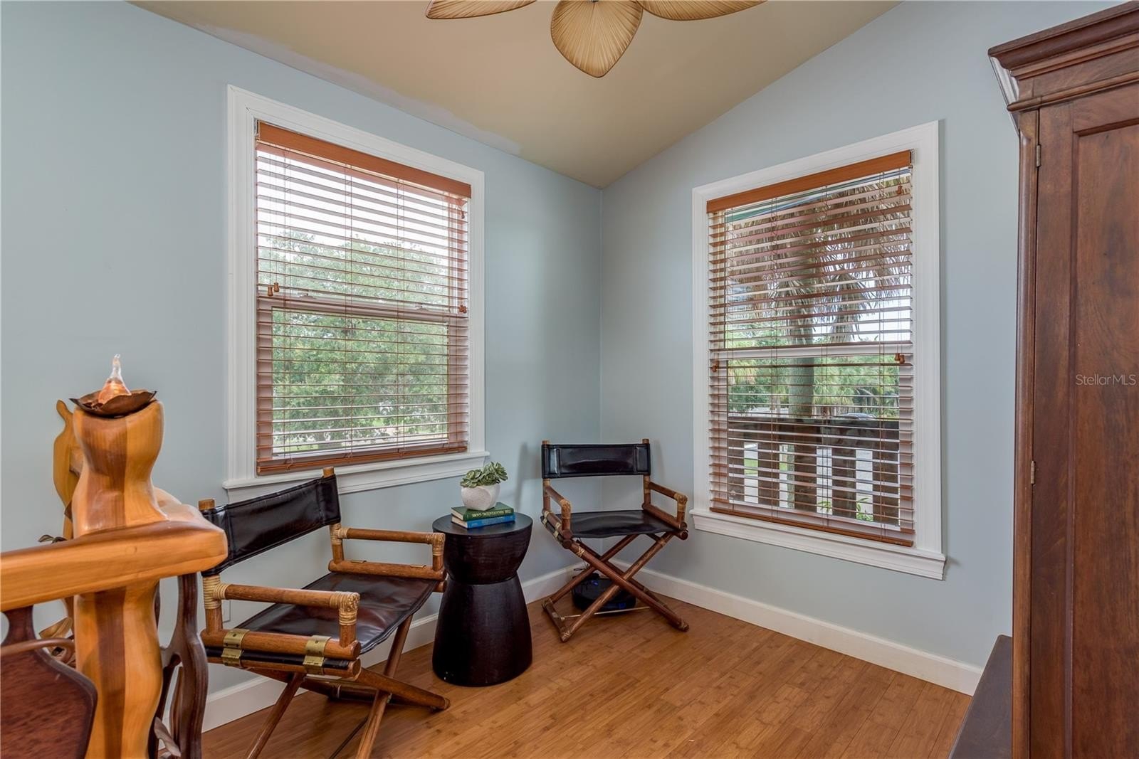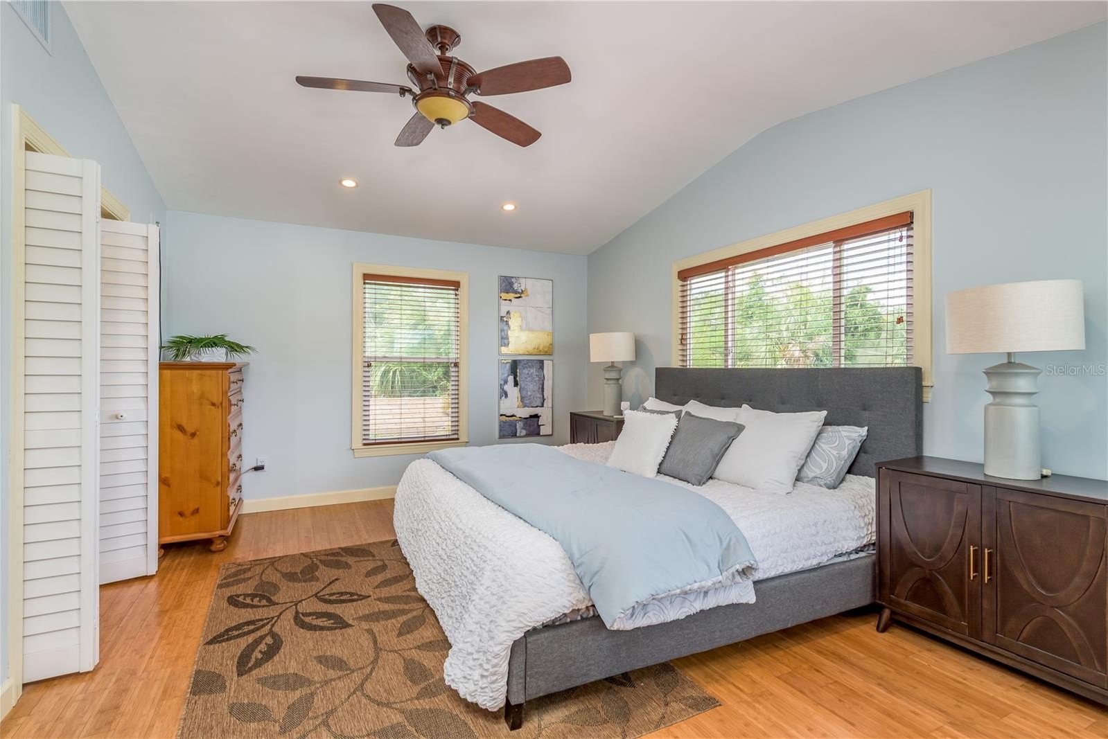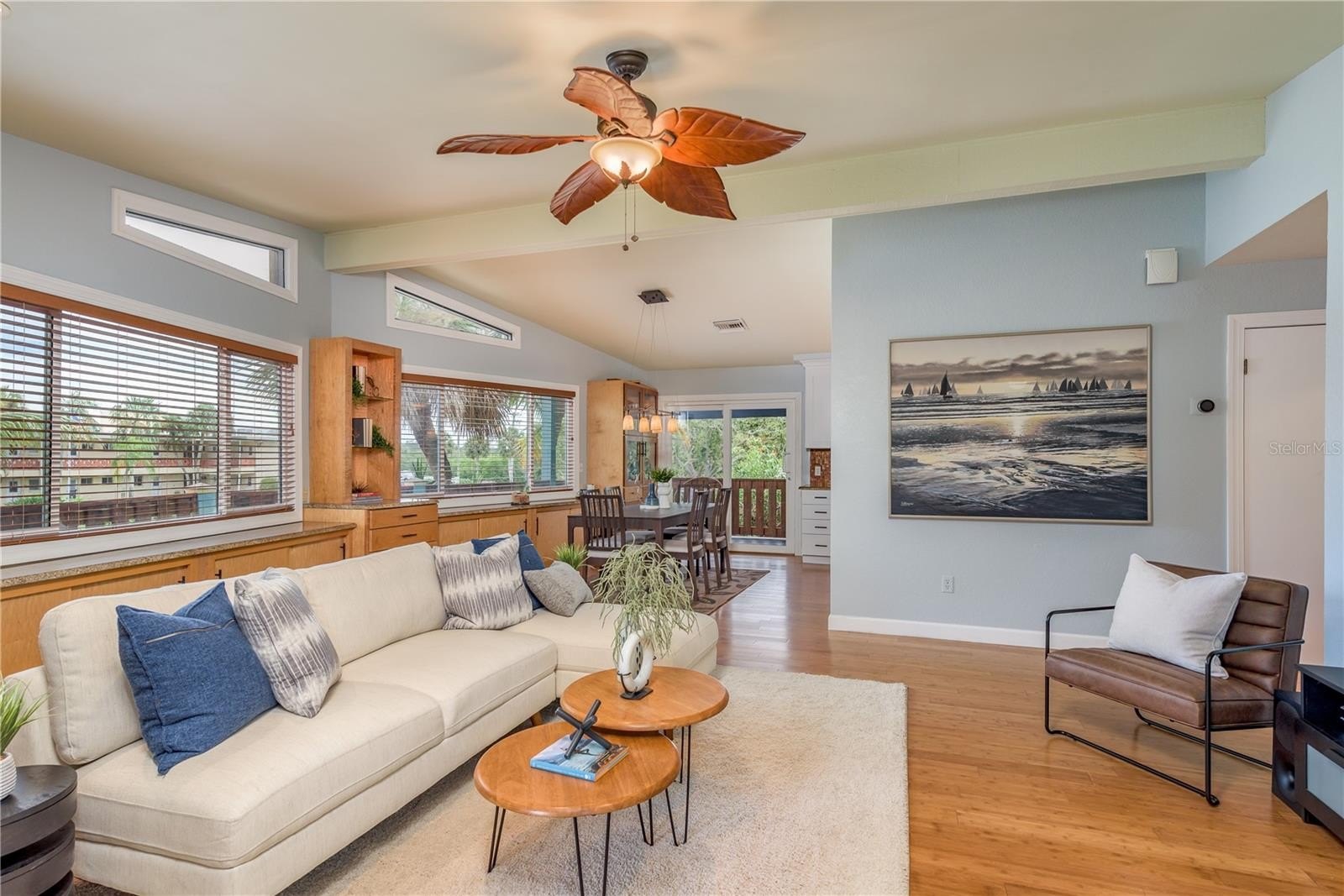 DISCOVER EXTRAORDINARY KEY WEST STYLE - stilt home, perfectly situated adjacent to the vibrant Gulfport Marina and minutes from downtown Gulfport. This unique property boasts an artistic flair from the moment you arrive. The incredible staircase was custom-designed and built by a local artisan. You have to see it to appreciate it. It's lighted and is one of a kind. The main level has just been painted a serene coastal blue complementing the BAMBOO FLOORING throughout. The handsome wood cabinets and shelving system in the living and dining rooms adds a lot of storage. The chef's kitchen features new soft-close cabinets with undermount lighting, GRANITE COUNTERTOPS and stylish tile backsplash with a suite of STAINLESS STEEL APPLIANCES. The split bedroom layout features a primary ensuite bedroom with walk-in closet, double custom vanities, spacious walk-in shower with 2 shower heads and a jetted tub for a relaxing soak. The sunny guest room has a walk-in closet, sliders to the balcony and is adjacent to the second bath also with a tiled walk-in shower. The third bedroom is currently being used as an office but could be yoga studio, craft room or whatever your imagination wants it to be! The lower level BONUS ROOM has been completely renovated with moisture-resistant DUROCK walls and PVC trim and elevated electrical system. A great space for a home gym, pool table or playroom. Safety and efficiency are paramount in this ECO-FRIENDLY home. All WINDOWS and SLIDERS are IMPACT-RESISTANT, it's completely SOLAR-POWERED including the hot water heater, a NEST thermostat was recently installed and the roof was replaced in 2018. Practical features like FRENCH DRAINS and sump pumps and gutters that drain to the pumps provide excellent water management. Enjoy the Florida lifestyle around the POOL with NEW LINER (2024) and solar pump (2024) or up on the deck surrounding sides of the house. Panoramic views of unforgettable sunsets and the marina await up on the rooftop deck. STORAGE abounds with an oversized two-car garage, gated RV/Boat storage complete with flood lights, power and water and an elevated shed perfect for an art studio, playhouse or workshop. You're close to beaches, shopping and dining and all the UNIQUE LIFESTYLE THAT GULFPORT OFFERS! This truly is a ONE-OF-A-KIND COASTAL GEM!