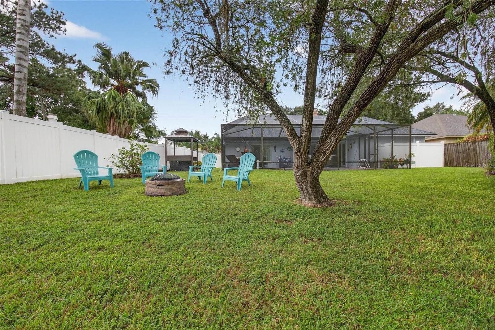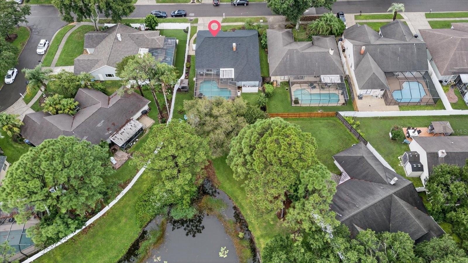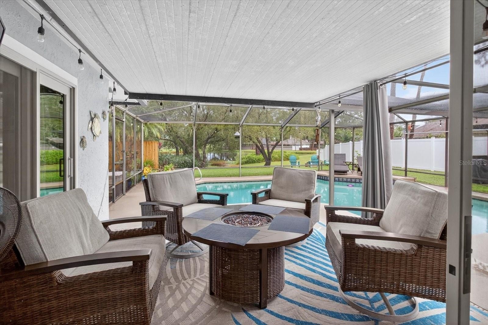Enjoy Florida living at its finest in your private backyard retreat, complete with a covered outdoor seating area, firepit, and sparkling pool overlooking the serene pond. Whether hosting guests or unwinding after a long day, this outdoor oasis is perfect year-round.