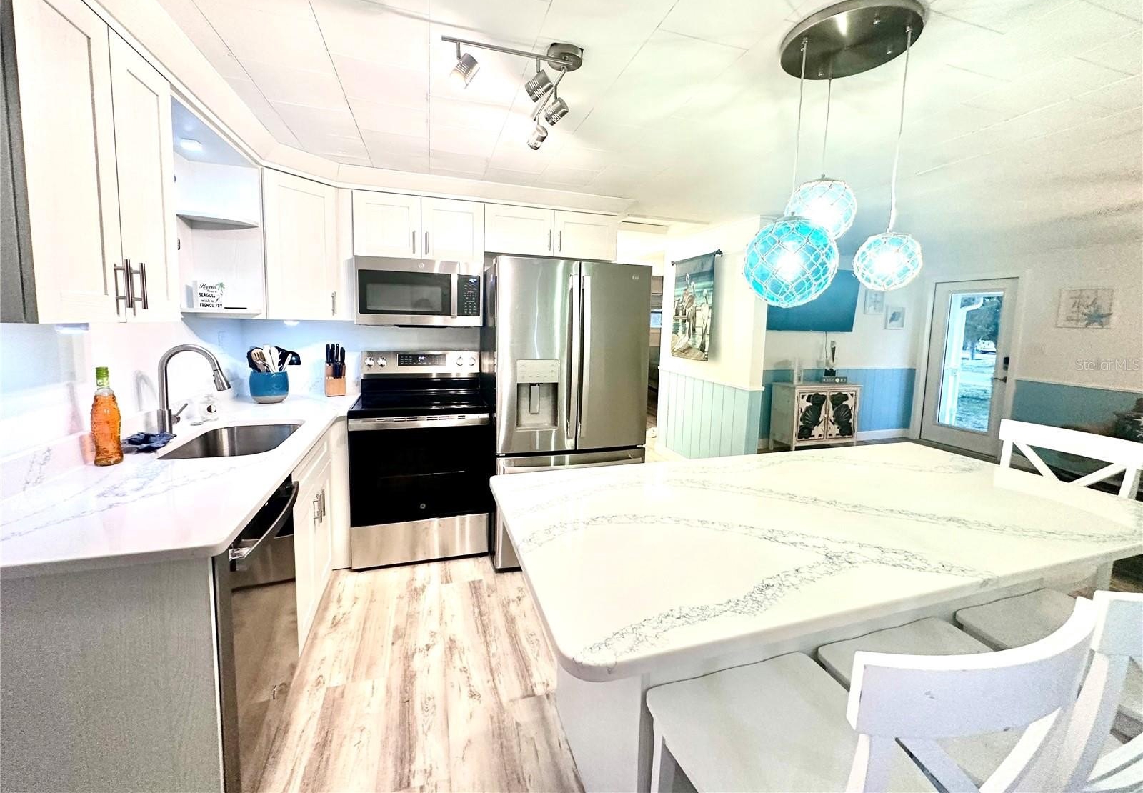 Discover true Old Florida paradise in this beautifully remodeled 2-bedroom, 1-bath home featuring a bonus room that could be used as a 3rd bedroom and possible 2nd bathroom and a bright Florida room—perfect for relaxing or entertaining with a view! Every inch of this home has been thoughtfully updated for modern coastal living, with luxurious waterproof vinyl plank flooring, waterproof Endura wall panels, and custom waterproof kitchen and bathroom cabinetry designed to withstand the Florida lifestyle. 4 Head mini split AC and heat with wall unit ac's in two of the bedrooms. Hurricane impact front and back doors. Roof was replaced in 2017. Furnishings are negotiable.