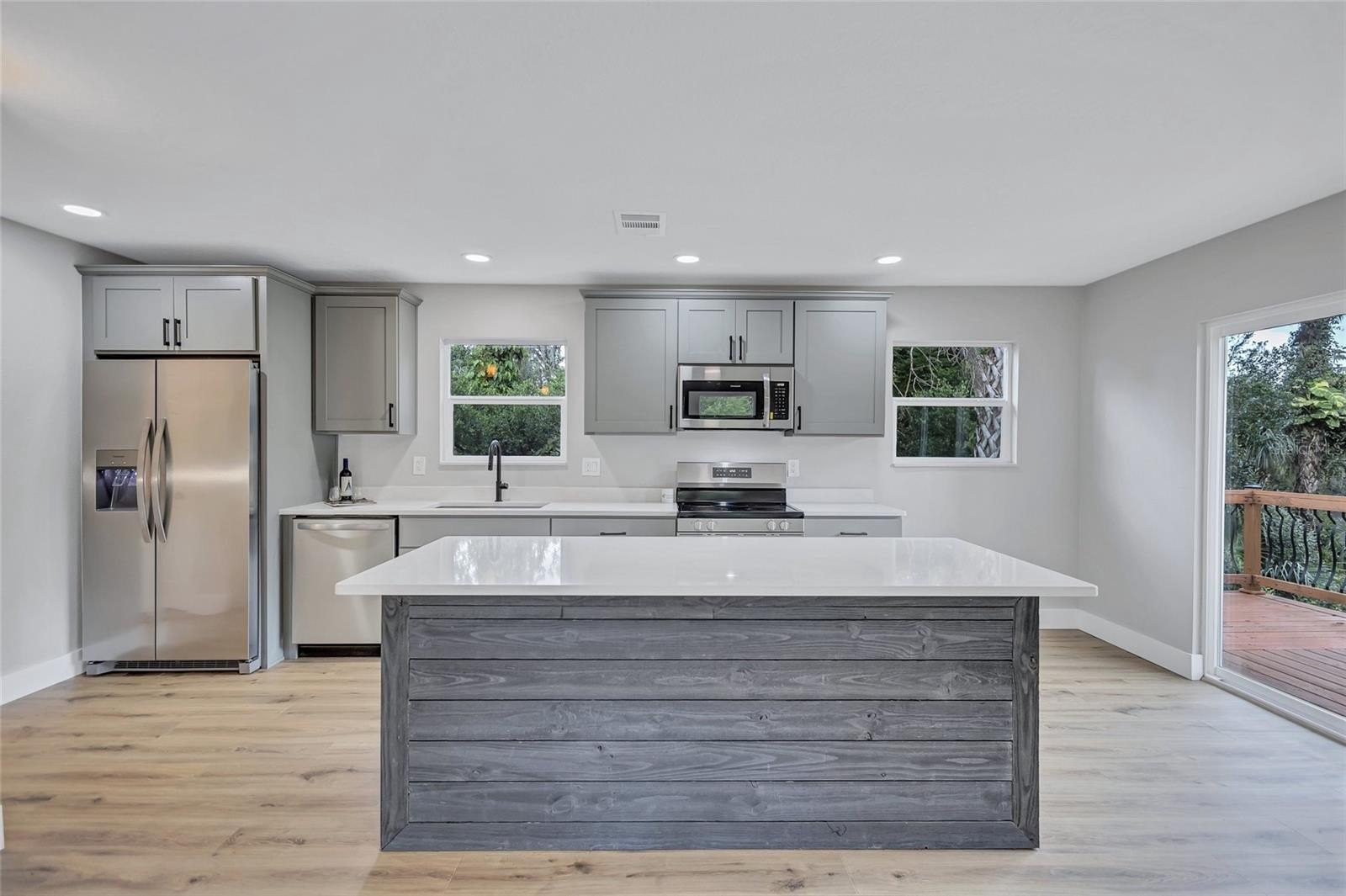 Inside, you’ll find a brand-new kitchen with wood cabinets, quartz counters, a center prep island, and stainless steel appliances. Enjoy new waterproof laminate flooring throughout home, new windows and sliders, updated electric, updated plumbing. Updated ductwork & a new A/C. BRAND NEW ROOF INSTALLED PRIOR TO CLOSING!
