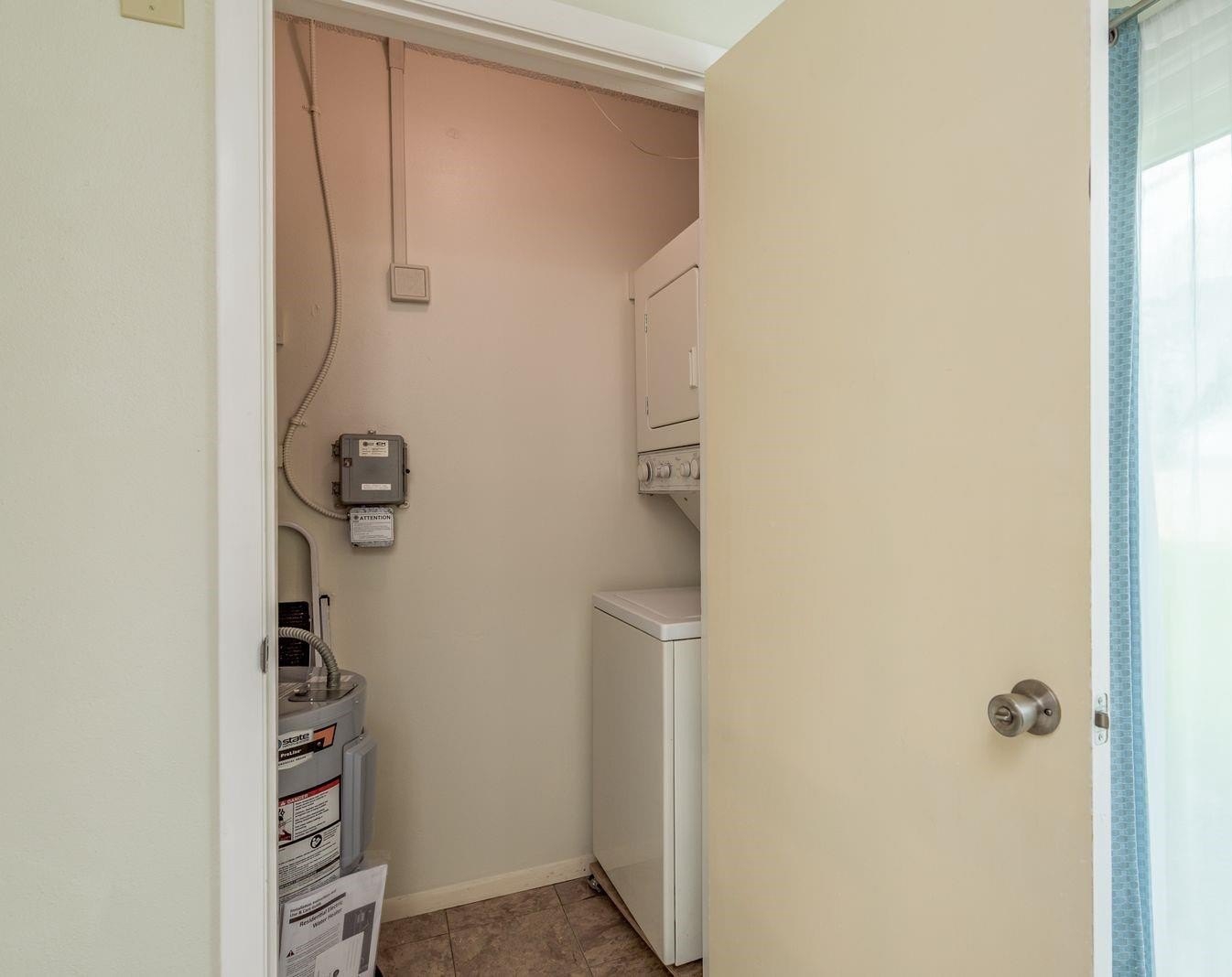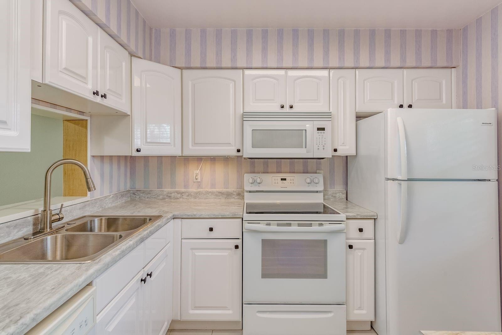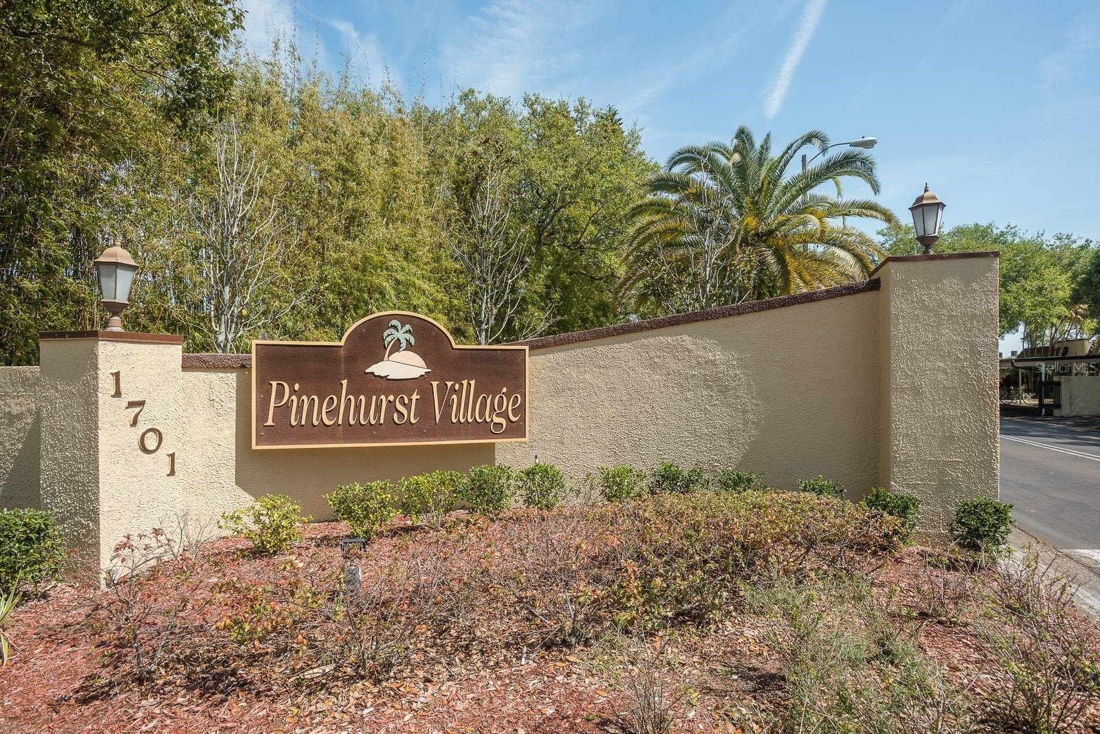 One or more photo(s) has been virtually staged. Welcome to this beautifully maintained 1-bedroom, 1-bath villa style condo located in the sought-after Pinehurst Village, a manicured 55+ community offering a maintenance-free lifestyle in the heart of Dunedin. Tucked away at the end of a quiet cul-de-sac, this unit provides both privacy and tranquility, with a serene backyard green space view from the enclosed bonus room. Inside, you'll find numerous recent updates including luxury vinyl flooring throughout, hurricane-impact windows and sliding door, new countertops and appliances, a recently installed hot water heater, a renovated bathroom, upgraded electrical panel, newer fans/lighting, and kitchen sink/faucet. The roof was replaced in 2024, and the in-unit laundry closet with washer and dryer adds extra convenience. The HVAC system is maintained bi-annually. Freshly painted interior! The attic is easily accessible for storage and has recent added insulation! Your assigned covered parking spot is located directly in front of the unit, making access easy and hassle-free. Community amenities include a heated pool, clubhouse, shuffleboard courts, and an outdoor grilling area with picnic tables, ideal for gatherings and socializing with neighbors. This prime location places you just minutes from downtown Dunedin, the Dunedin Marina, Community Center, Dunedin Fine Arts Center (DFAC), TD Ballpark featuring Toronto Blue Jays Spring Training, and the scenic Dunedin Causeway leading to Honeymoon Island State Park. Whether you're seeking a seasonal retreat or a full-time Florida residence, this move-in ready villa offers the best of easy living and coastal charm.
