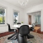 The main level includes two powder rooms, including one conveniently placed near the rear entry. Upstairs, four generous bedrooms and three full baths offer comfort and flexibility. Three of the bedrooms feature en-suite bathrooms, a highly desirable feature that enhances privacy and usability for residents and guests alike. The thoughtful floor plan allows for numerous lifestyle possibilities, making this home well-suited for an owner-occupied bed and breakfast, a creative live-work environment, or a distinctive primary residence filled with character and warmth.