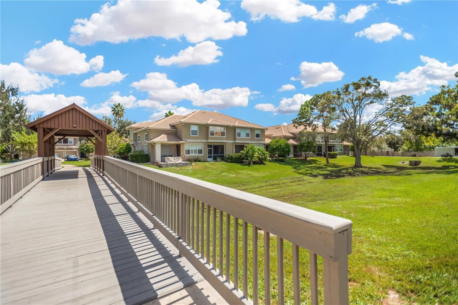 This stunning 2- bedroom,2-bathroom townhome with a 2-car garage is a must-see property. The modern kitchen boasts ample cabinet space and sleek stainless-steel appliances. The kitchen overlooks the dining and living room. The expansive loft area upstairs is ideal for a home office, sitting area, or TV lounge. Both bedrooms, bathrooms and laundry closet are conveniently located on this floor. The spacious primary bedroom offers a breathtaking view of the covered bridge while the primary bathroom features a beautiful walk-in shower. The second bedroom is generously sized, and the screened in porch provides a serene spot to relax or enjoy your morning coffee. If a beautiful, move-in ready townhome is what you desire, then this is the perfect place for you.