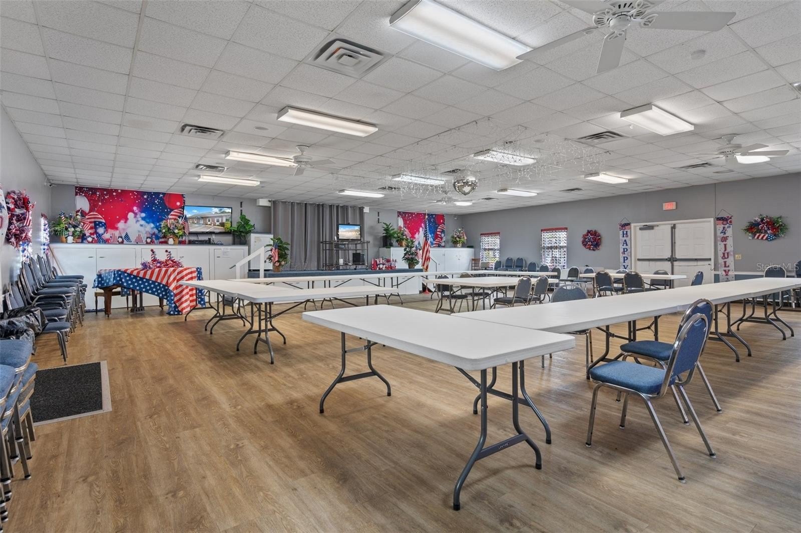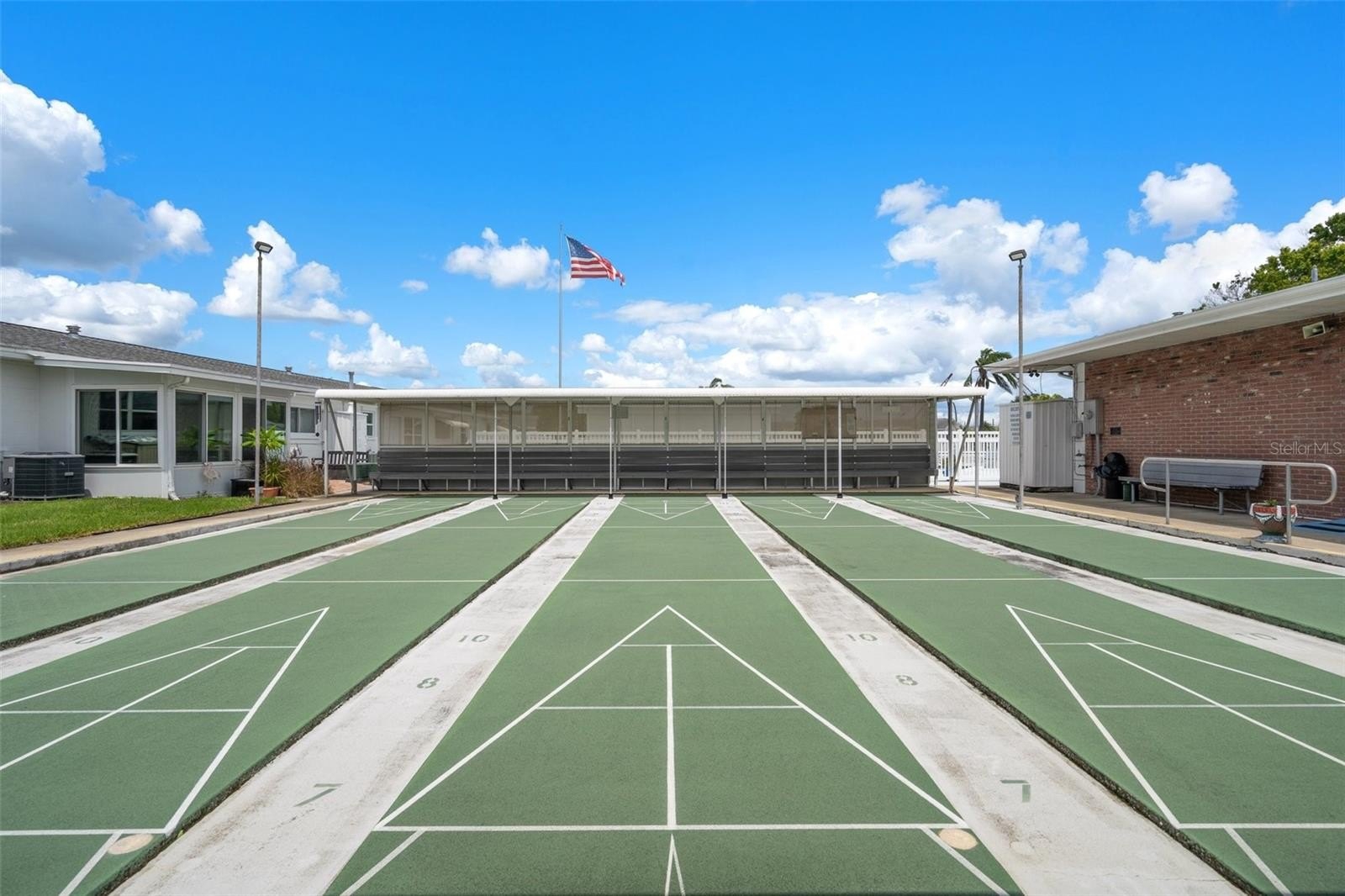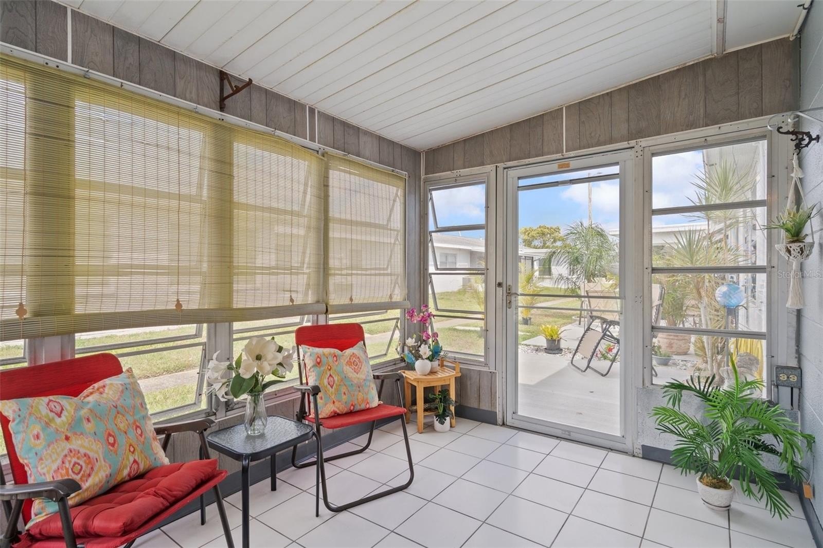 Completely Move In Ready! Fantastic location in a well-managed and beautifully maintained 55+ community — and not in a flood zone! This highly desirable end unit offers extra windows for abundant natural light and great cross-breezes. Recent updates include: HVAC replaced in 2021, Electrical panel updated in 2017. Additionally, 2023–2024 improvements include: new bathroom vanity, refaced kitchen cabinets, fresh paint and wallpaper, window treatments/blinds, tile foyer, and a stylish wood accent wall in the primary bedroom. Enjoy the spacious Florida room — perfect for morning coffee or evening cocktails — plus a brand-new porch just outside, adding more space to relax or entertain. Easy-attach hurricane shutters for peace of mind during travel.. Located right across the street from the pool, pond, and recreation center! HOA only $475/month and covers everything except electric, making this a truly low-maintenance lifestyle. Community amenities include: Heated pool, sauna, shuffleboard, game room with pool table, BBQ area, library, social events, women’s and men’s luncheons, dances, cards, Bunco, Bingo, and more. This is a no-pet community, though service animals are permitted in accordance with community rules. There is a $1500 capital contribution for all buyers.