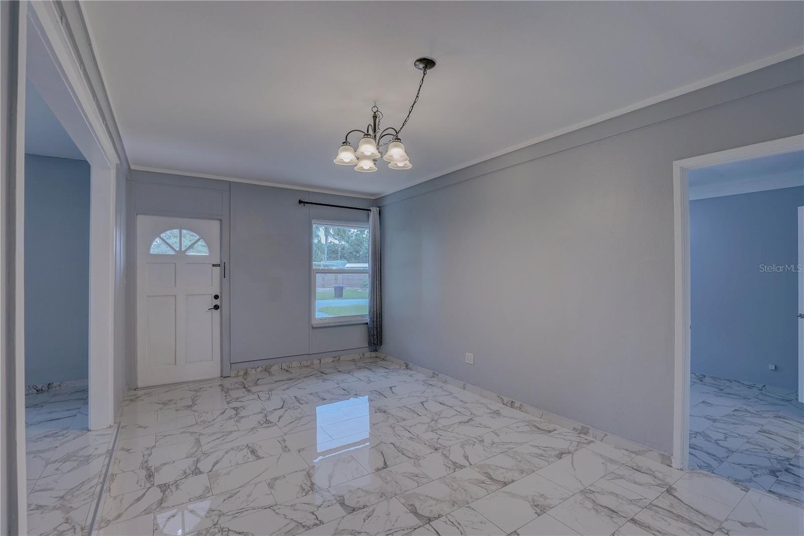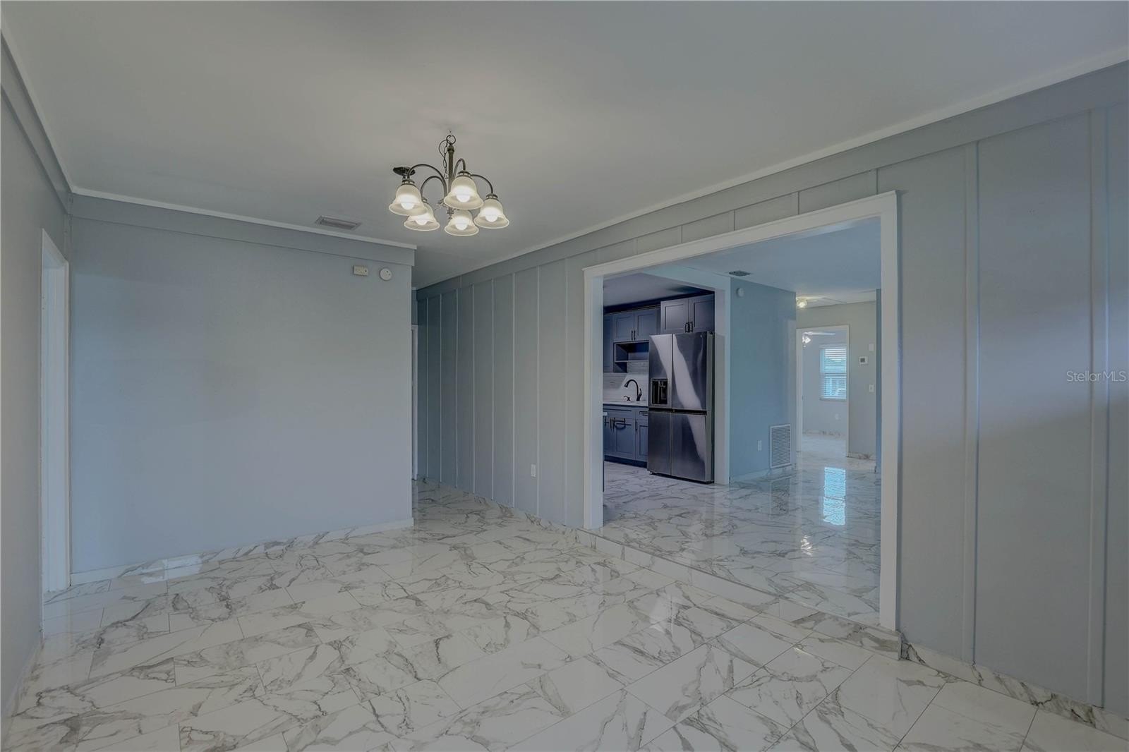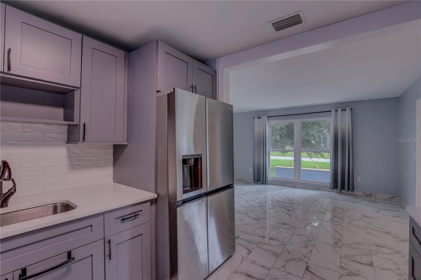 Step inside, and you're greeted with a thoughtfully flowing floor plan where every inch feels curated. The living and dining spaces are open, airy, and full of natural light, with terrazzo, tile, and carpeted floors that balance warmth and function. The central air conditioning keeps things cool and crisp, while the layout flows easily for everyday living or effortless entertaining.