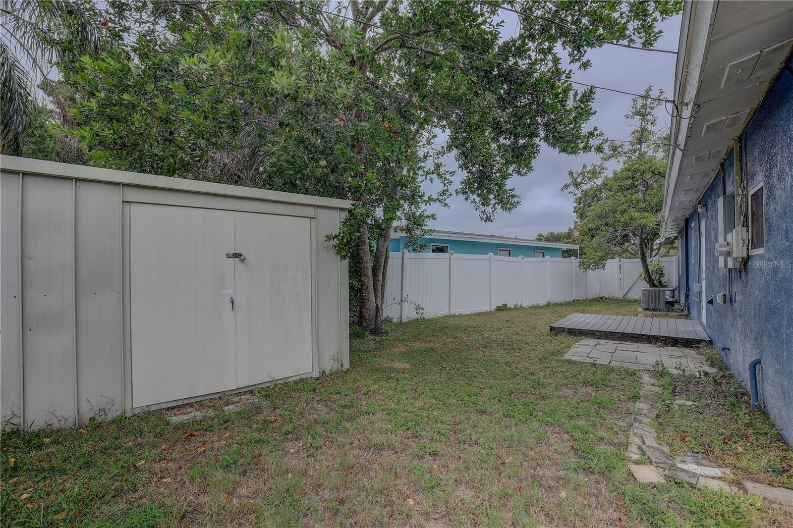Outside, there’s more to love. A shed provides extra storage space for tools, bikes, or your weekend DIY projects. The vinyl siding keeps maintenance minimal, while sliding glass doors lead to outdoor possibilities — whether it's future patio dreams or a simple lounge setup under the stars.