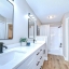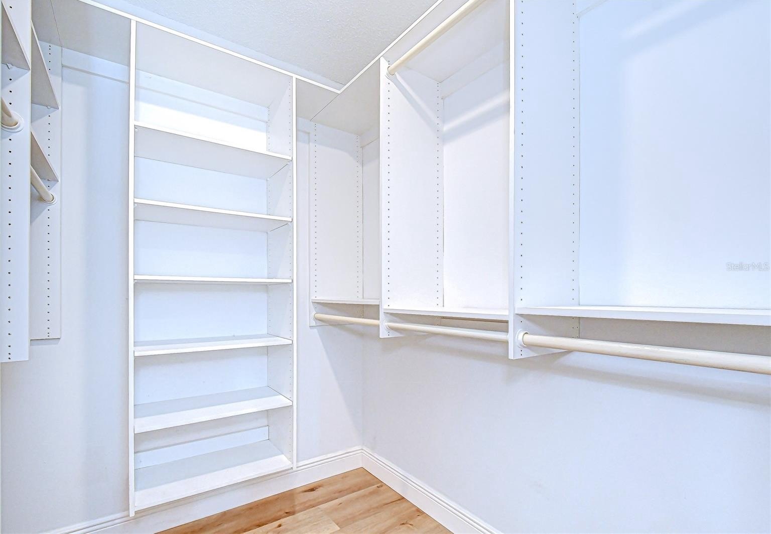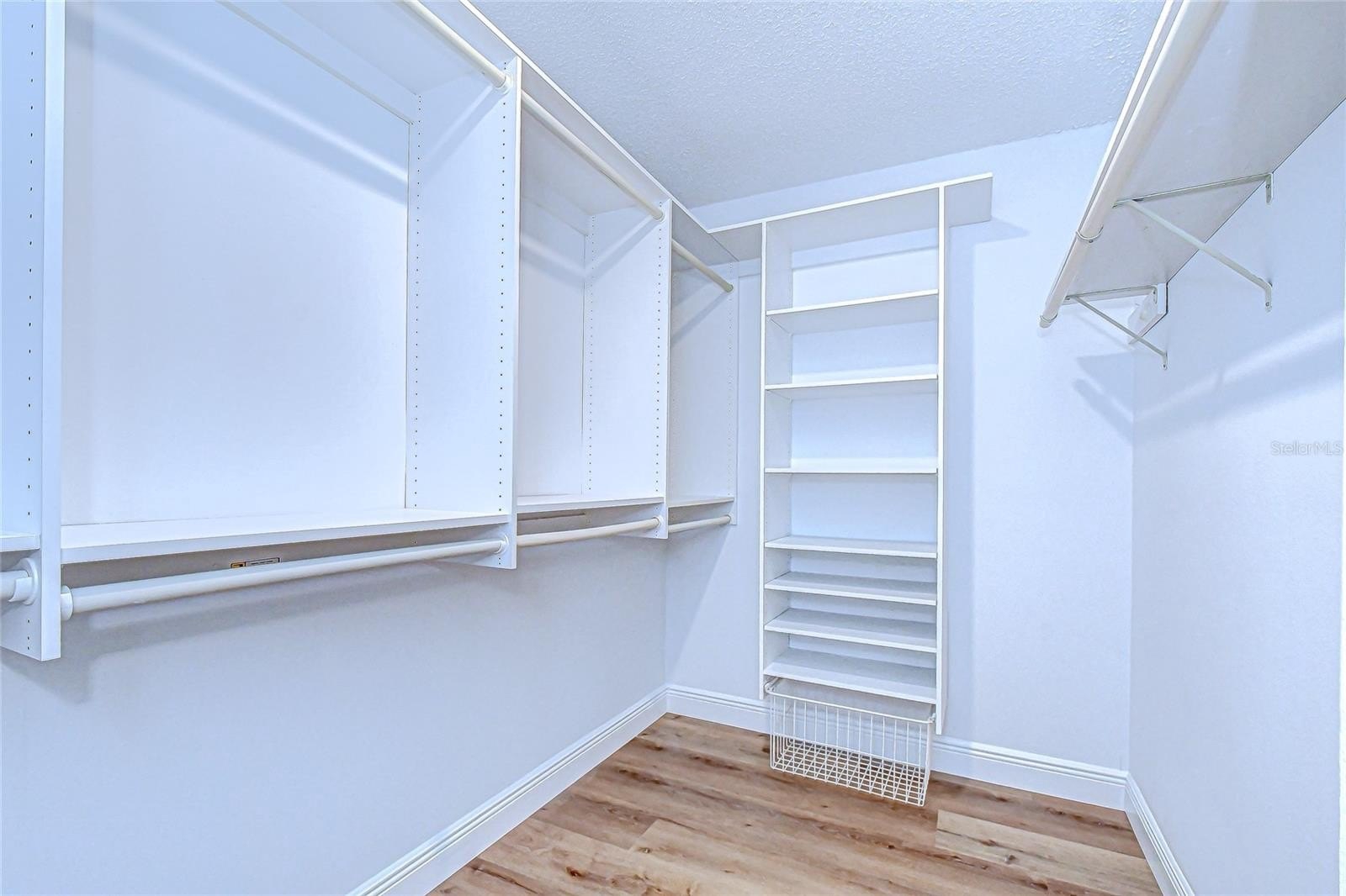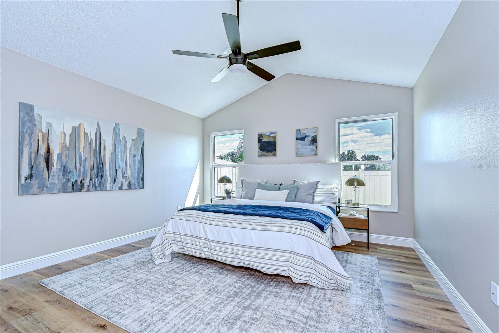 Enjoy two spacious primary suites, each offering NEW double vanities with drawers, quartz countertops, and undermount sinks. The main suite stands out with vaulted ceilings, a NEW ceiling fan, dual walk-in closets with built-in organizers, a linen closet, and a beautifully tiled tub/shower with glass enclosure.