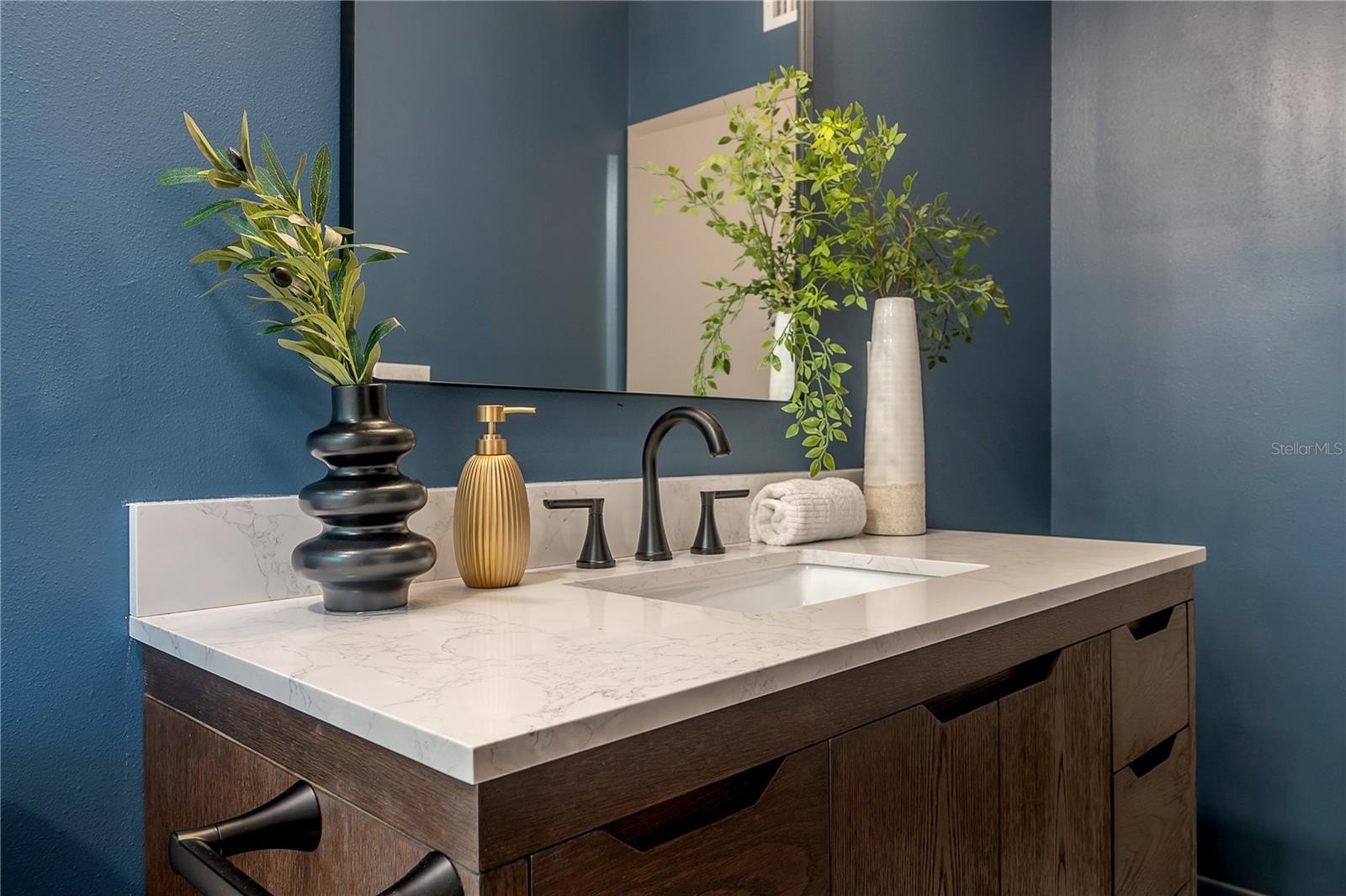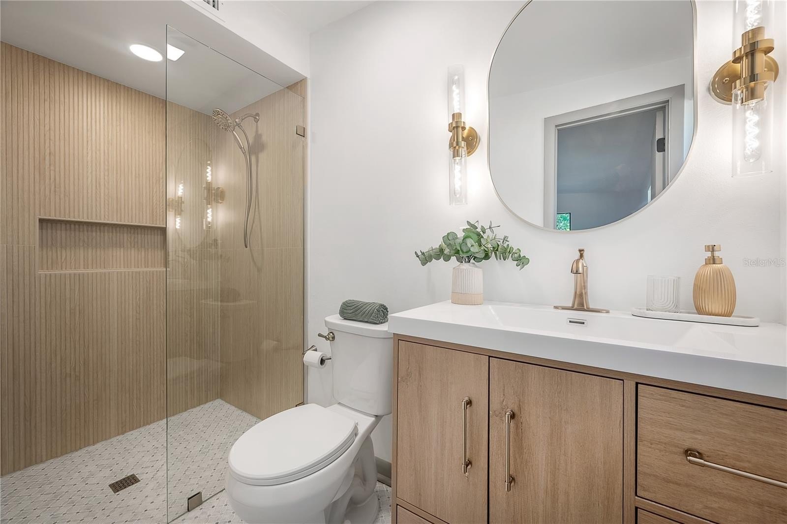 The primary suite brings all the modern comfort with a marble-tiled ensuite and luxe gold fixtures. Two spacious guest bedrooms, a stylish guest bath, and a roomy laundry space make everyday living a breeze.