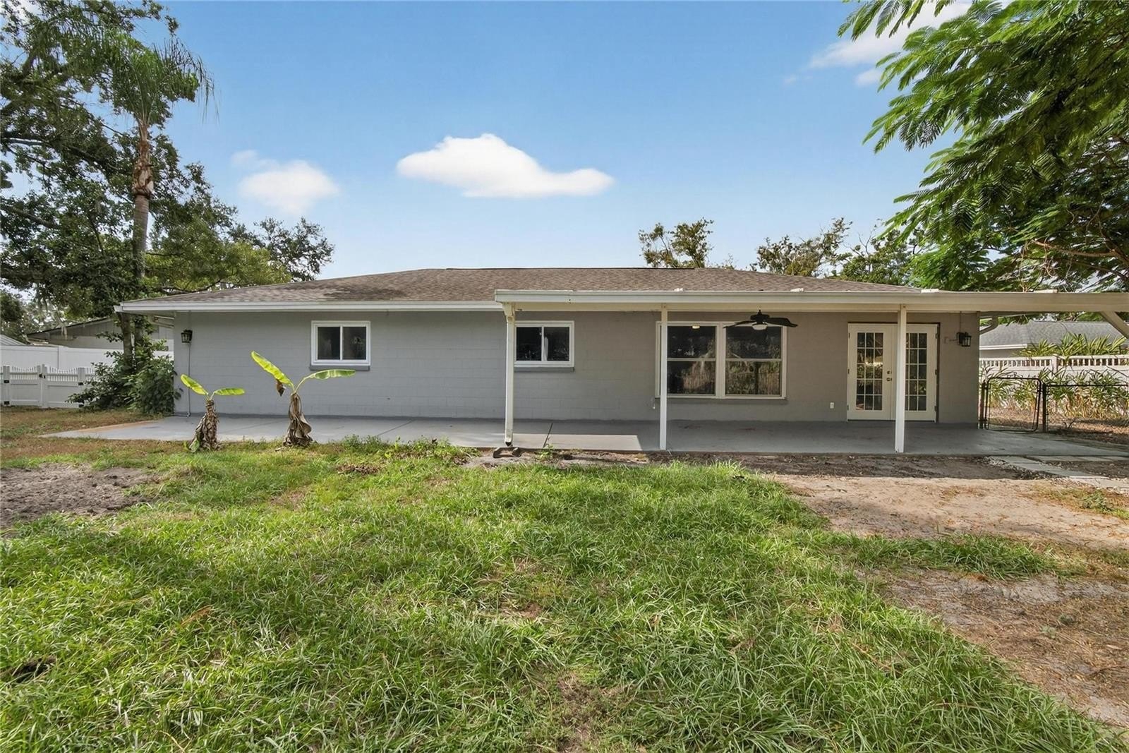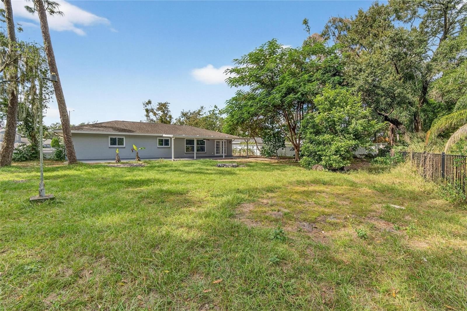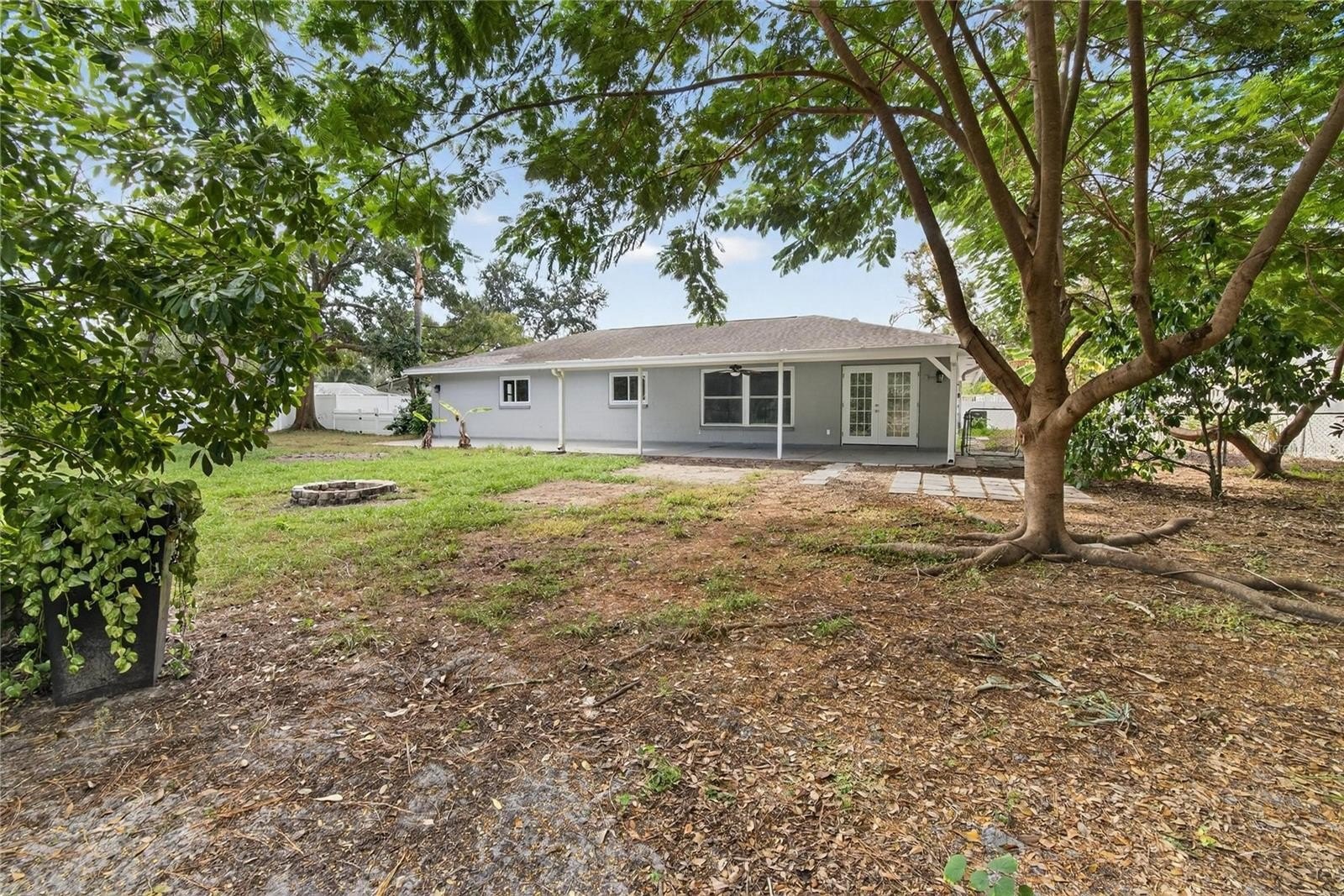 Look no further! Here's your opportunity to own a property that's close to everything, yet feels very private. Situated on a cul-de-sac, this home has a big backyard that is fully fenced and backs up to wooded public lands - no back neighbors! No HOA or CDD! This ranch style, block home offers 4 bedrooms and 2 full baths. The owner's suite includes an en suite bathroom and walk-in closet. Two separate living areas provide space for everyone to "do their own thing". The updated kitchen sports contemporary gray cabinetry and beautiful stone countertops. A nice sized closet pantry provides the extra storage that we all need and appreciate. New range and refrigerator. Meals are a breeze with a dining space that is conveniently located adjacent to the kitchen. The french doors present a lovely view and access to the backyard. Can we talk about this yard?? There's so much potential here! Plant a vegetable garden, create a tropical oasis, or enjoy the beauty of nature just as it is. The covered patio is the ideal spot to enjoy your coffee in the morning or relax in the evening. Roof and windows were replaced in 2018. Spacious two car garage. What are you waiting for?!