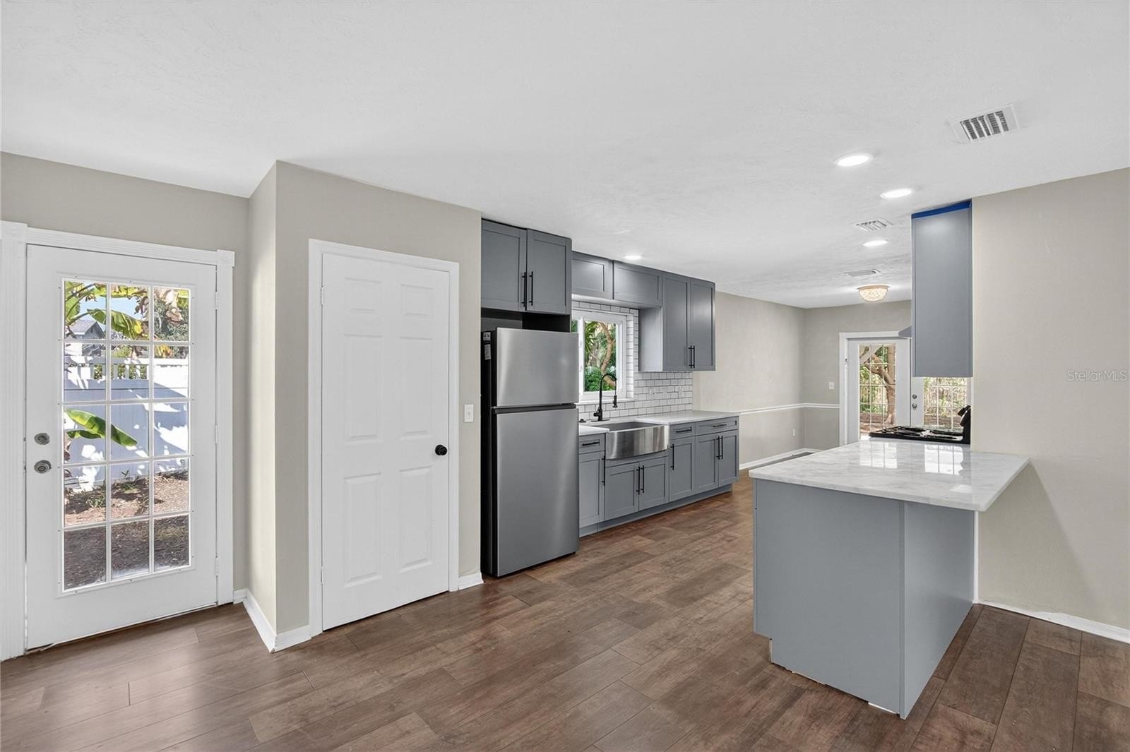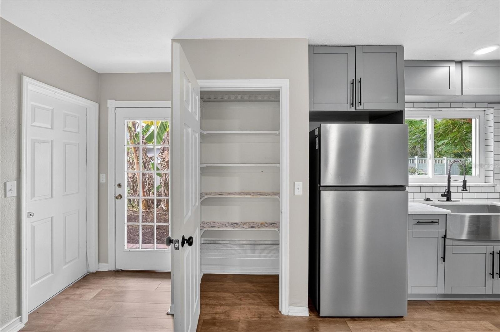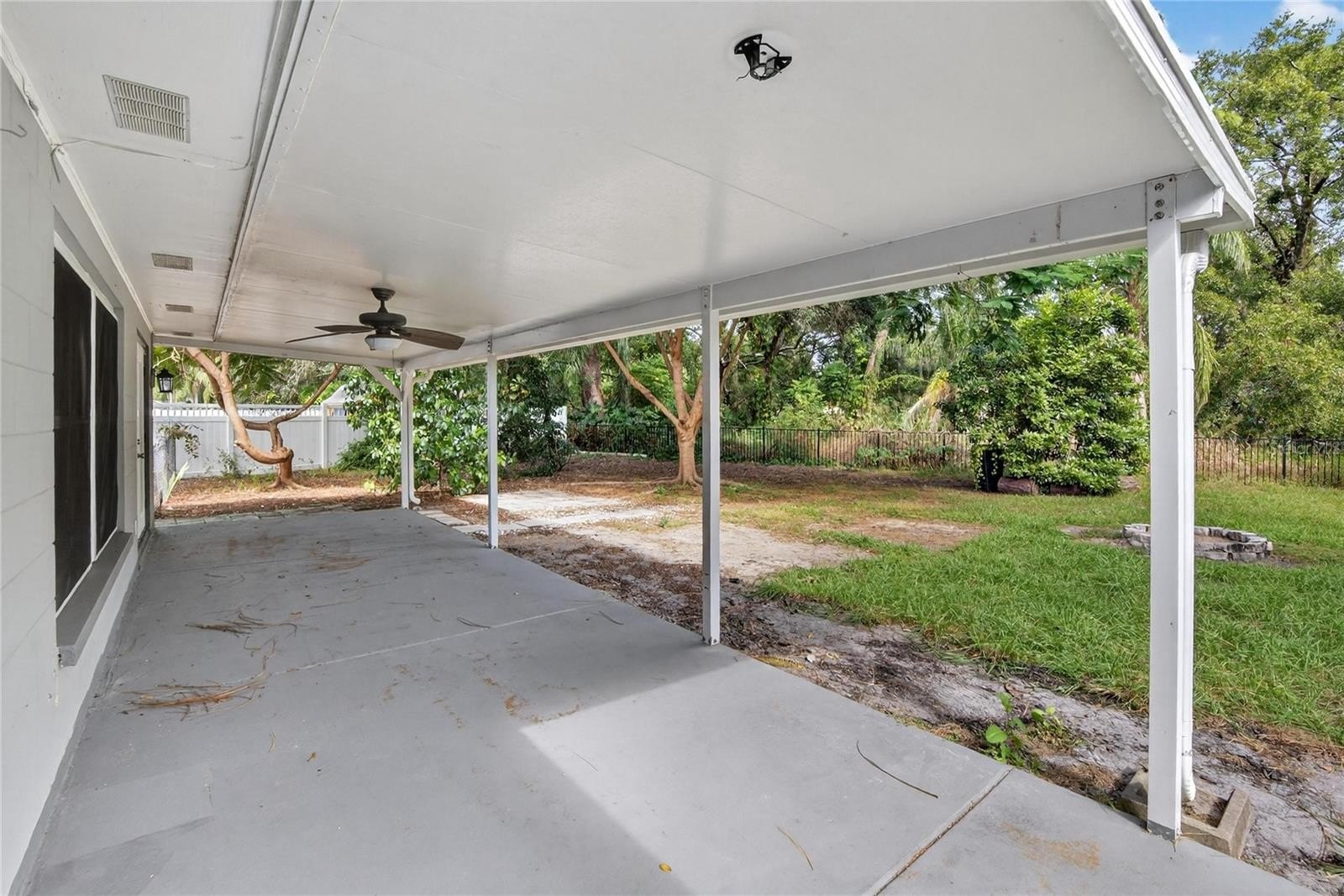Look no further! Here's your opportunity to own a property that's close to everything, yet feels very private. Situated on a cul-de-sac, this home has a big backyard that is fully fenced and backs up to wooded public lands - no back neighbors! No HOA or CDD! This ranch style, block home offers 4 bedrooms and 2 full baths. The owner's suite includes an en suite bathroom and walk-in closet. Two separate living areas provide space for everyone to "do their own thing". The updated kitchen sports contemporary gray cabinetry and beautiful stone countertops. A nice sized closet pantry provides the extra storage that we all need and appreciate. New range and refrigerator. Meals are a breeze with a dining space that is conveniently located adjacent to the kitchen. The french doors present a lovely view and access to the backyard. Can we talk about this yard?? There's so much potential here! Plant a vegetable garden, create a tropical oasis, or enjoy the beauty of nature just as it is. The covered patio is the ideal spot to enjoy your coffee in the morning or relax in the evening. Roof and windows were replaced in 2018. Spacious two car garage. What are you waiting for?!