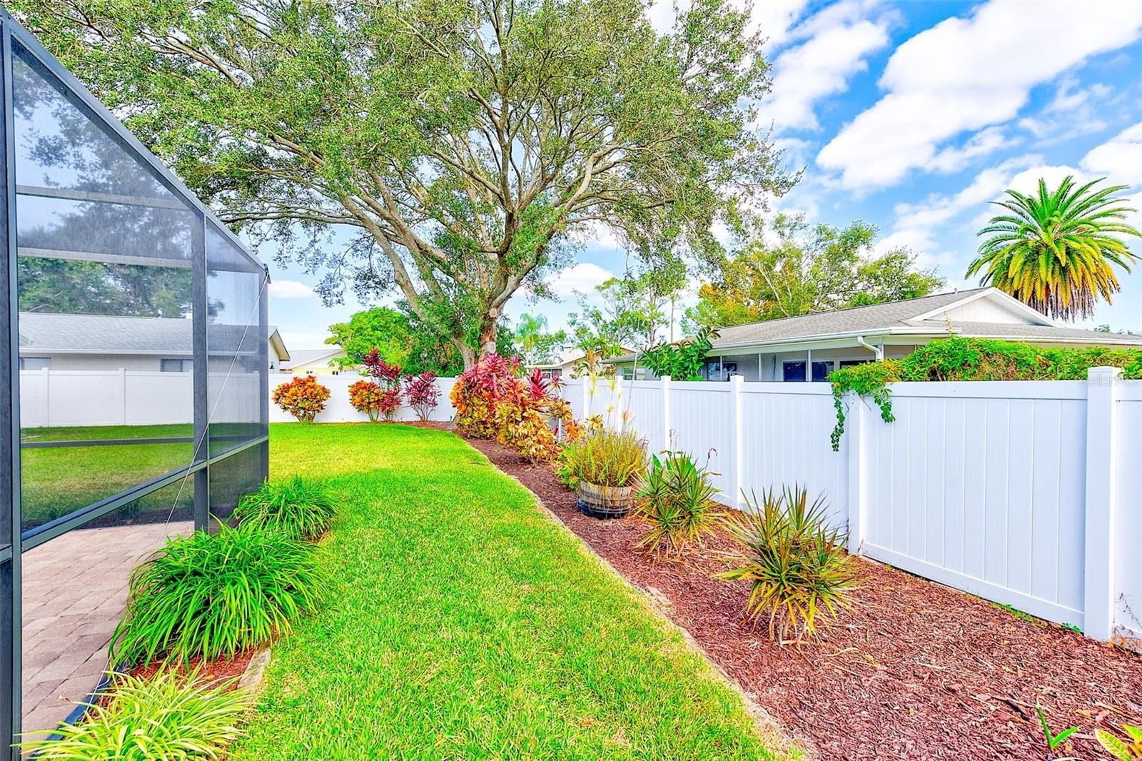 Step outside to a true backyard retreat. The pool and lanai were completely redone in 2025—including new screening, pump, and resurfacing—creating a sparkling centerpiece for the expansive outdoor space. The large vinyl-fenced yard offers plenty of room for entertaining or play, while the extended paver driveway provides extra parking for guests, a boat or recreational toys.