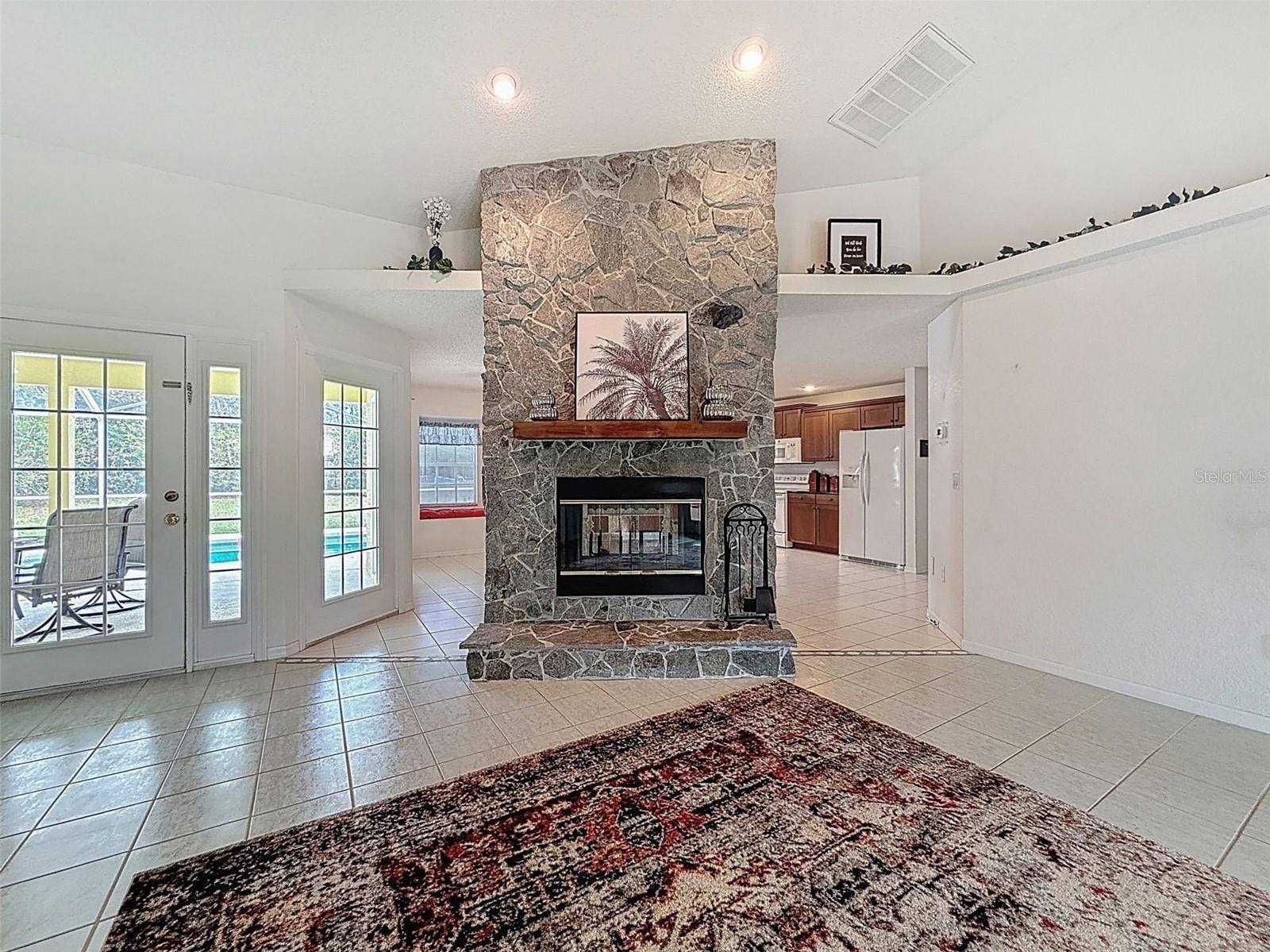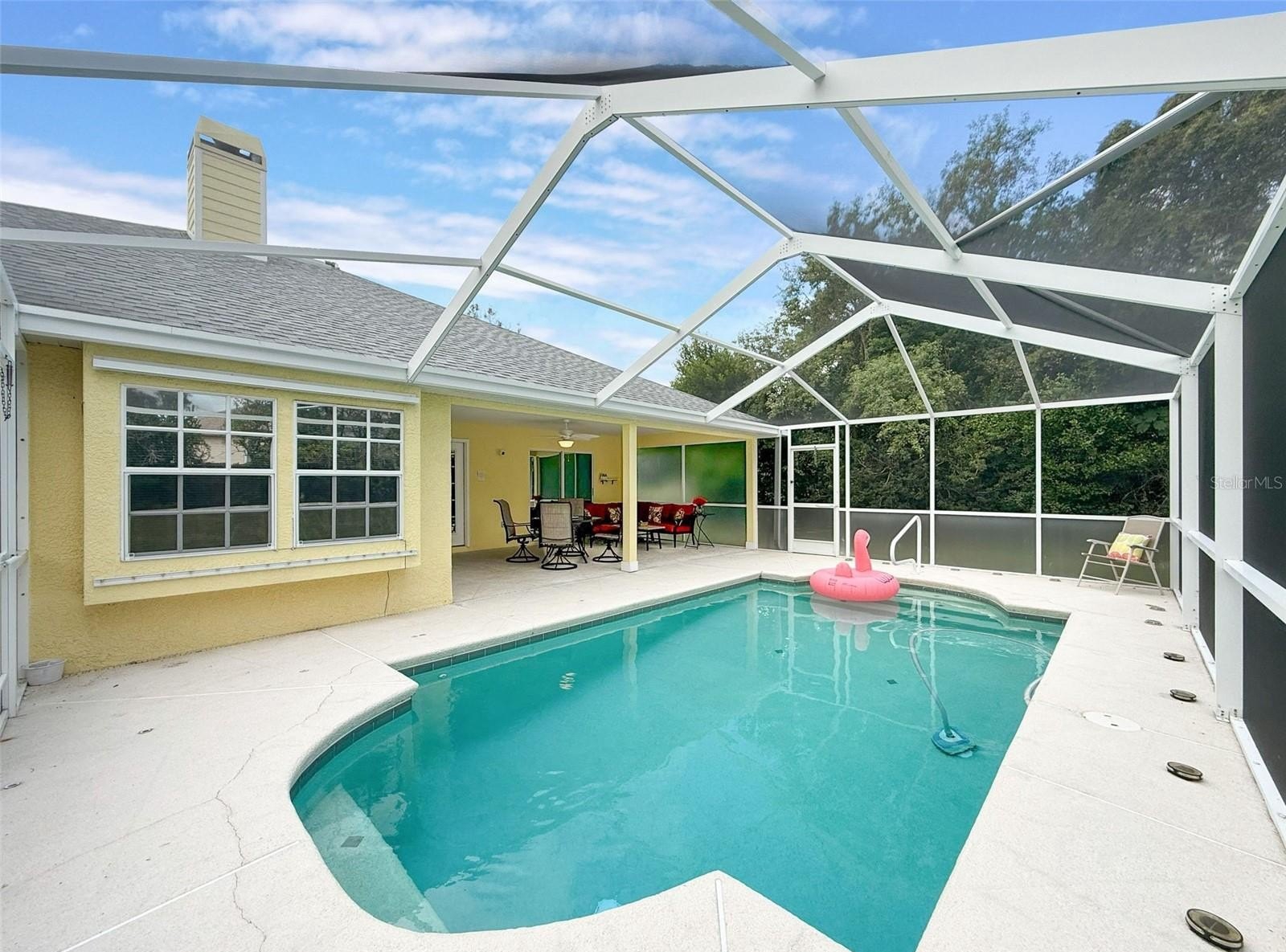 New to market -- do not wait to tour this absolutely stunning, one owner Bozzi Builders Laguna III model custom home. Built in 2003 and meticulously cared for, this 3 bedroom (split plan), 2 bath pool home is beautiful inside and out. Step on to the inviting front porch and enter through French doors that reveal cathedral ceilings and the dramatic focal point; a towering stone, dual-sided fireplace. Continue on through the well-appointed kitchen where you will also find the convenient laundry closet. The kitchen adjoins a spacious dining area with views of the backyard and pool area. French doors lead out to the covered, screened lanai where there is plenty of room to gather and entertain, or enjoy outdoor dining. The oversized fenced yard is 1/3 acre and even includes a separately fenced dog run. For the ultimate in convenience, the home features a central vacuum system making cleanup a breeze. The roof was replaced in 2023, fresh exterior paint 2025, and hurricane shutters are included for all windows. This home is located a mile from the intersection of US 19 and Cortez Blvd. (SR50); very convenient to the central business district and minutes away from shopping, services and restaurants. The Suncoast Parkway is about 12 minutes away for an easy commute to Tampa International Airport.