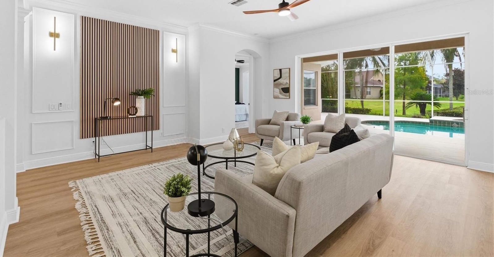 EXQUISITELY RENOVATED POOL HOME in the guard-gated Arbor Greene community! 4,040 SF of pristine living space featuring 5 spacious bedrooms, plus Office and 3.5 designer baths. Enter to dramatic high ceilings, oversize island in a chef’s dream kitchen (custom range hood, built-in appliances, double-stack shaker cabinets), and brand-new flooring throughout. The master suite feels like a luxury retreat with a spa-style bath finished in large-format tile and elegant detail. Key mechanicals are modern: roof was replaced in 2020; HVAC 1 - (2024) and HVAC 2 (2023) — you’ll enjoy peace of mind along with luxury. Step outside to your own private pool oasis and enjoy the community’s spectacular amenities: junior Olympic heated pool, additional resort-style pool, tennis courts, pickle-ball, full fitness center, and the security of a 24-hour guard gate — all wrapped in a low-fee HOA. Located in one of Tampa’s top-rated school zones and minutes to shopping, dining and major commuter routes. Spacious, modern, move-in ready — this home in Arbor Greene checks every box. Schedule your tour today!