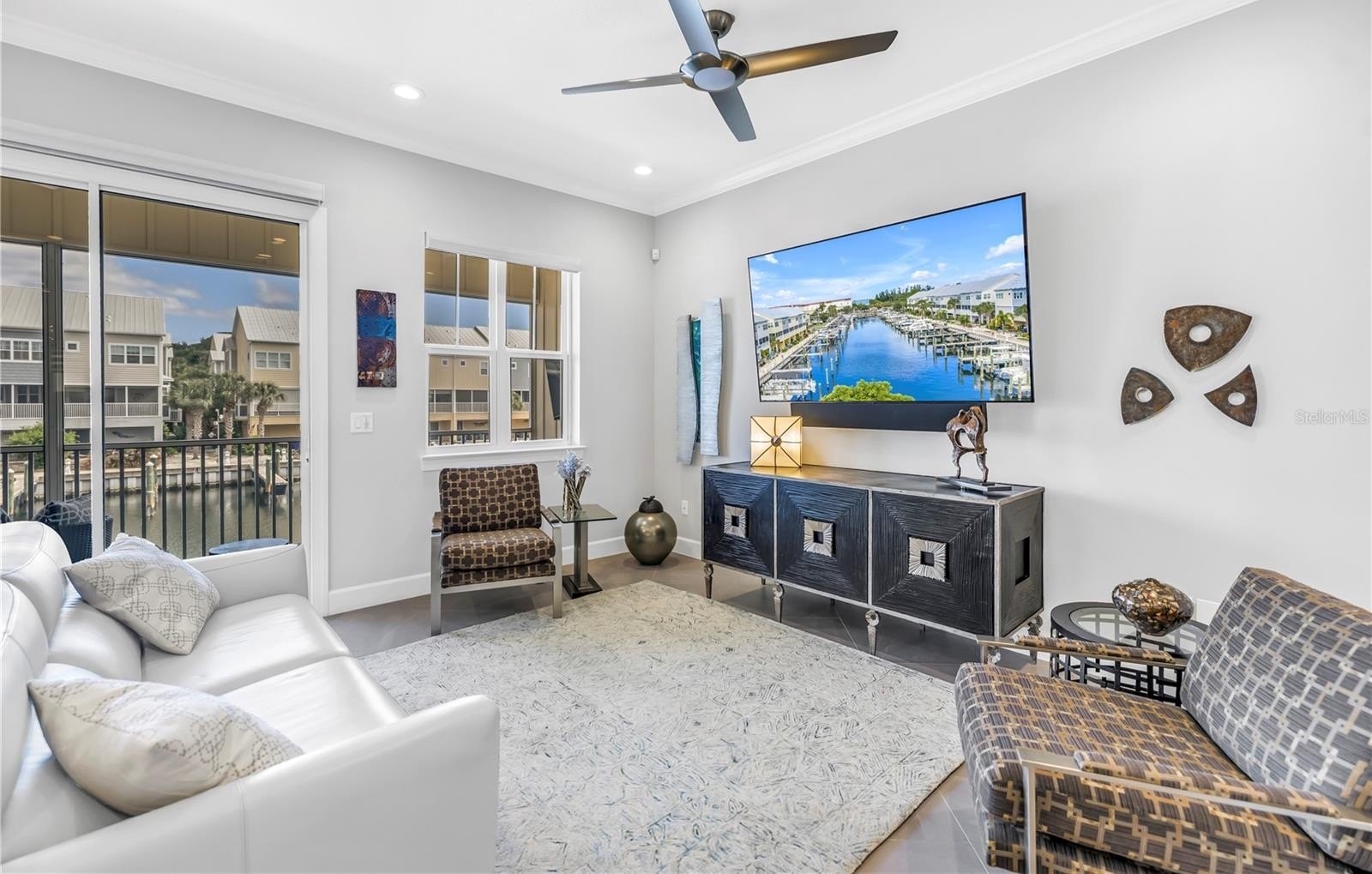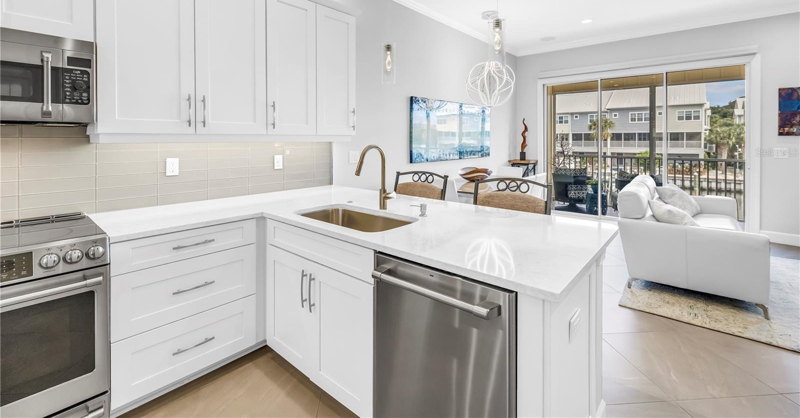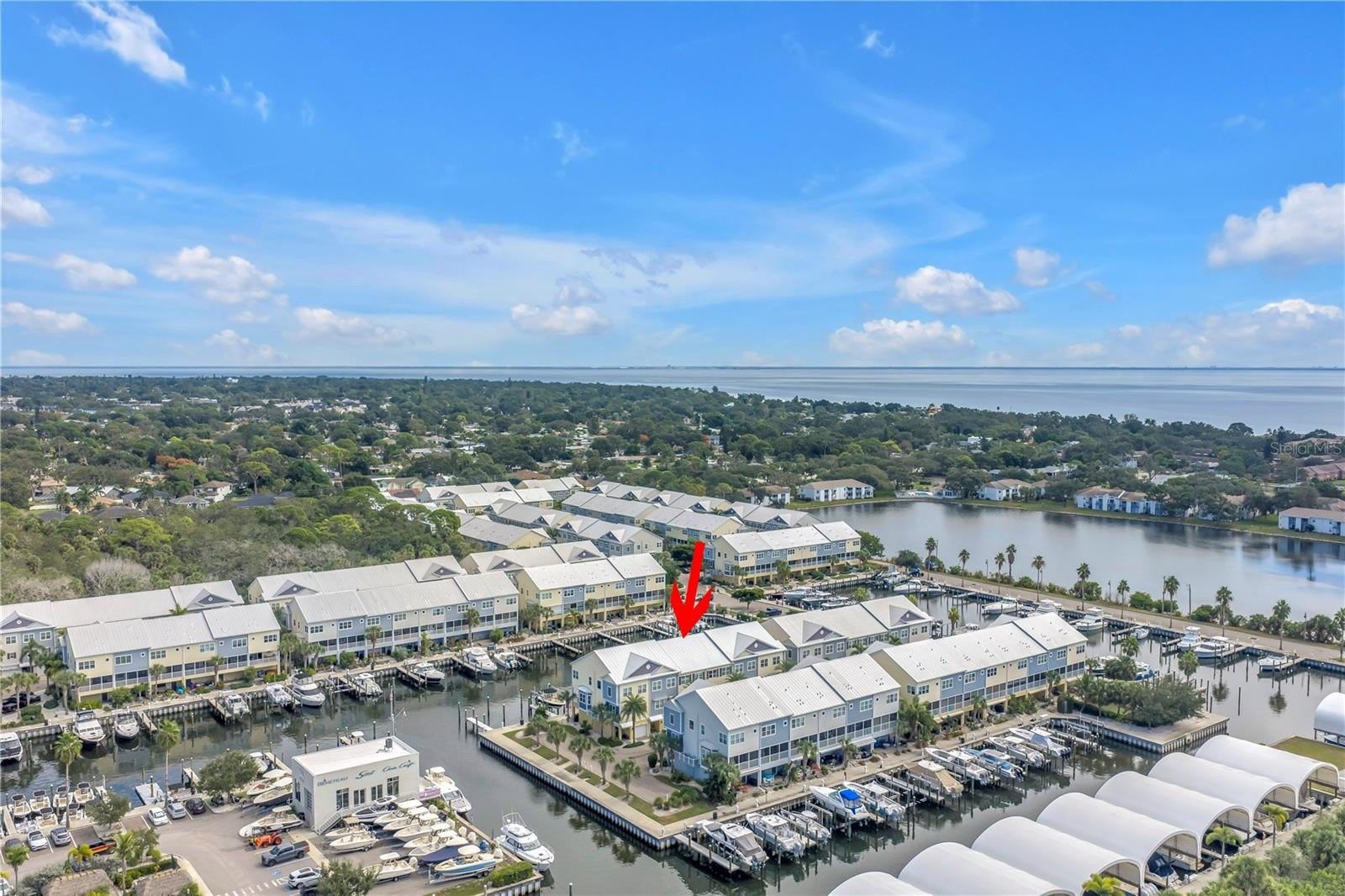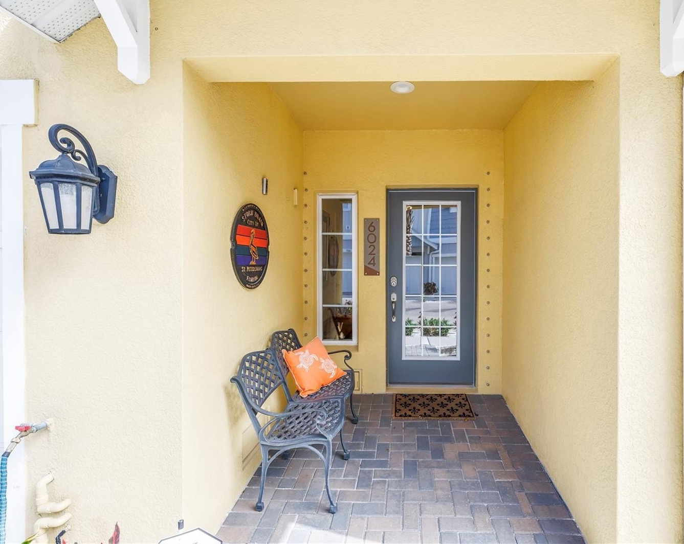 Architecturally designed for both beauty and function, the custom kitchen serves as the centerpiece of this waterfront townhome in The Cove at Loggerhead Marina — a private, gated community inspired by Key West charm. Experience refined coastal living at its finest in this impeccably upgraded residence, perfectly suited for boaters and nature lovers alike. The community is uniquely situated within the grounds of Loggerhead Marina, offering convenient access to its full-service marina and open waterways including Tampa Bay, Boca Ciega Bay, and the Gulf. This three-story home features a private elevator, 3 bedrooms, 2.5 baths, and a versatile bonus room ideal for a home office, den, or guest space. The main living level showcases an open-concept design with volume ceilings and the home’s bespoke, architecturally designed kitchen, featuring a 7-foot island, 42” cabinetry, quartz countertops, and premium stainless steel appliances including a built-in Thermador refrigerator/freezer and induction range. The adjoining living and dining areas flow seamlessly to a screened-in porch overlooking the water, where you can relax or entertain while taking in views of the marina and watching dolphins and manatees glide by. A custom stair railing with integrated gate extends throughout all levels of the home, adding both architectural character and functional design.Upstairs, the spacious primary suite offers tranquil water views, a cozy sitting area, walk-in closet, and a luxurious en-suite bath with dual vanities, a seamless walk-in shower, and a private water closet. Two additional bedrooms, a remodeled guest bath with custom vanity and walk-in shower (no tub), and a convenient laundry room complete the upper level. The oversized tandem two-car garage offers abundant storage for bikes, paddleboards, and beach gear. The extended lanai, equipped with outdoor televisions and speakers, provides the perfect setting for year-round entertaining. Enjoy peaceful water views and gentle breezes from this inviting space — ideal for unwinding at the end of the day or hosting friends in a relaxed coastal setting. Both the lanai and screened-in porch are equipped with outdoor speakers and televisions, enhancing every gathering — from quiet morning coffee to sunset cocktails. This property also offers peace of mind, having experienced no flooding during recent Hurricanes Helene and Milton. Community amenities include a resort-style pool with Tiki hut (equipped with cable TV and power), the Captain’s Lounge for gatherings, scenic walking trails, and community-wide mosquito control — all included in the HOA dues along with other covered services and utilities. Unbeatable location: just 8 minutes to vibrant downtown St. Petersburg, 10 minutes to world-famous St. Pete Beach, and 25 minutes to Tampa via I-275. Discover where coastal elegance meets effortless living — at The Cove at Loggerhead Marina.