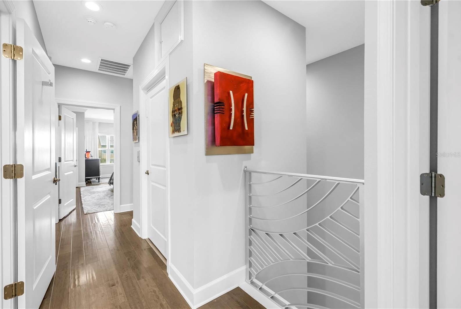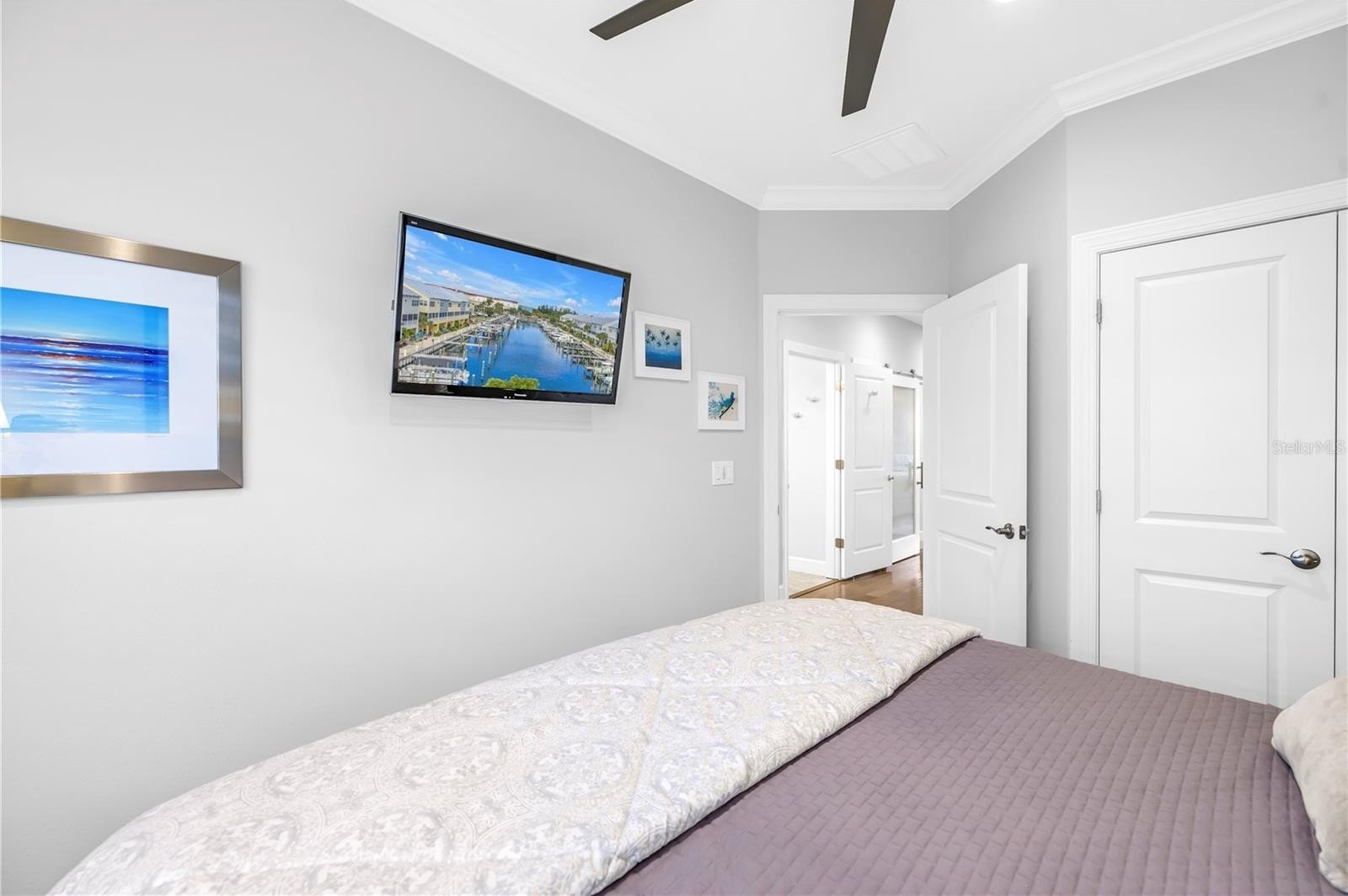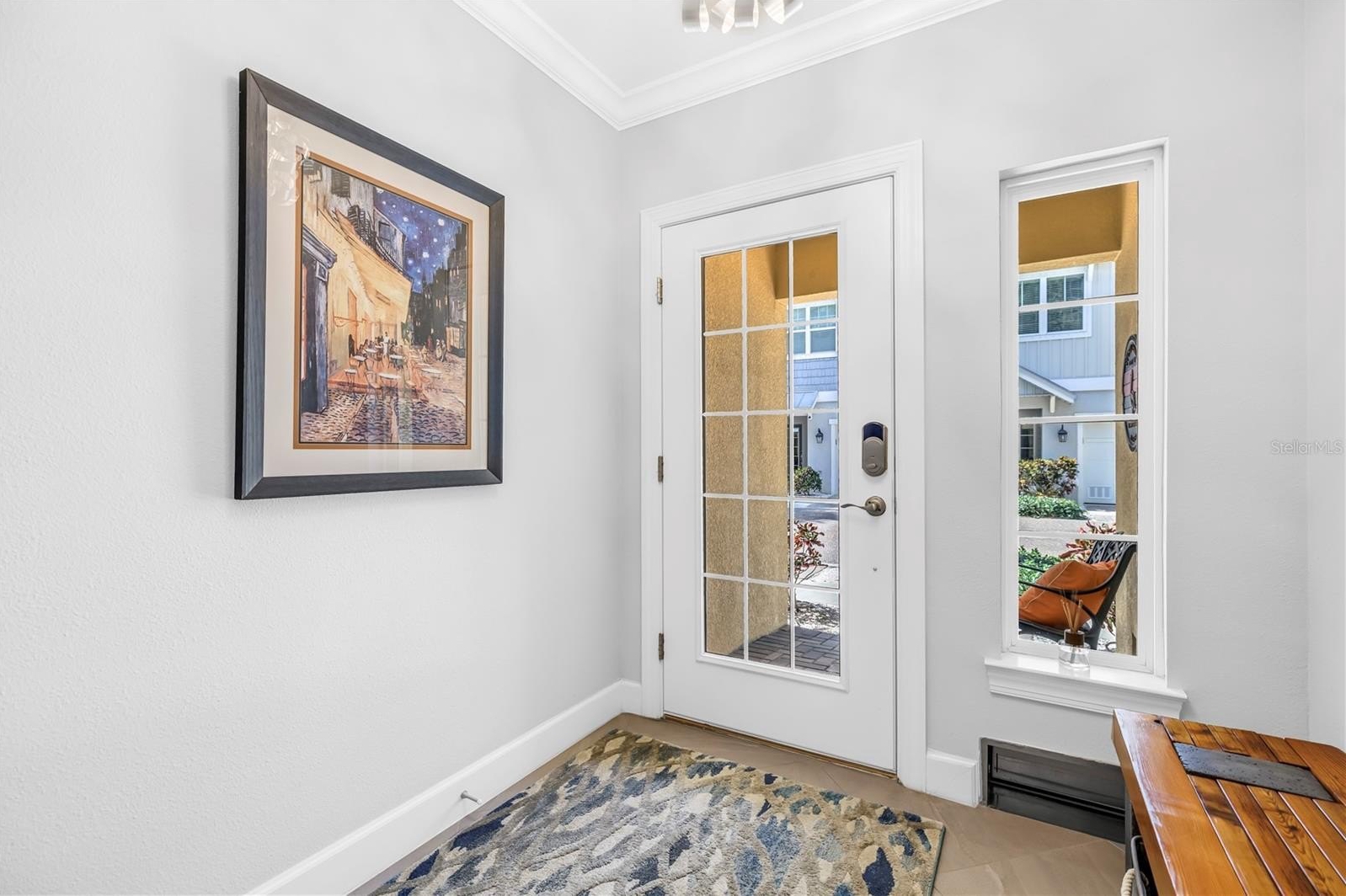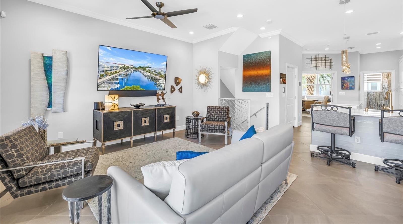 Architecturally designed for both beauty and function, the custom kitchen serves as the centerpiece of this waterfront townhome in The Cove at Loggerhead Marina — a private, gated community inspired by Key West charm. Experience refined coastal living at its finest in this impeccably upgraded residence, perfectly suited for boaters and nature lovers alike. The community is uniquely situated within the grounds of Loggerhead Marina, offering convenient access to its full-service marina and open waterways including Tampa Bay, Boca Ciega Bay, and the Gulf. This three-story home features a private elevator, 3 bedrooms, 2.5 baths, and a versatile bonus room ideal for a home office, den, or guest space. The main living level showcases an open-concept design with volume ceilings and the home’s bespoke, architecturally designed kitchen, featuring a 7-foot island, 42” cabinetry, quartz countertops, and premium stainless steel appliances including a built-in Thermador refrigerator/freezer and induction range. The adjoining living and dining areas flow seamlessly to a screened-in porch overlooking the water, where you can relax or entertain while taking in views of the marina and watching dolphins and manatees glide by. A custom stair railing with integrated gate extends throughout all levels of the home, adding both architectural character and functional design.Upstairs, the spacious primary suite offers tranquil water views, a cozy sitting area, walk-in closet, and a luxurious en-suite bath with dual vanities, a seamless walk-in shower, and a private water closet. Two additional bedrooms, a remodeled guest bath with custom vanity and walk-in shower (no tub), and a convenient laundry room complete the upper level. The oversized tandem two-car garage offers abundant storage for bikes, paddleboards, and beach gear. The extended lanai, equipped with outdoor televisions and speakers, provides the perfect setting for year-round entertaining. Enjoy peaceful water views and gentle breezes from this inviting space — ideal for unwinding at the end of the day or hosting friends in a relaxed coastal setting. Both the lanai and screened-in porch are equipped with outdoor speakers and televisions, enhancing every gathering — from quiet morning coffee to sunset cocktails. This property also offers peace of mind, having experienced no flooding during recent Hurricanes Helene and Milton. Community amenities include a resort-style pool with Tiki hut (equipped with cable TV and power), the Captain’s Lounge for gatherings, scenic walking trails, and community-wide mosquito control — all included in the HOA dues along with other covered services and utilities. Unbeatable location: just 8 minutes to vibrant downtown St. Petersburg, 10 minutes to world-famous St. Pete Beach, and 25 minutes to Tampa via I-275. Discover where coastal elegance meets effortless living — at The Cove at Loggerhead Marina.