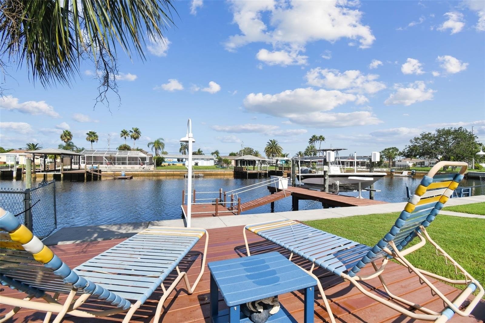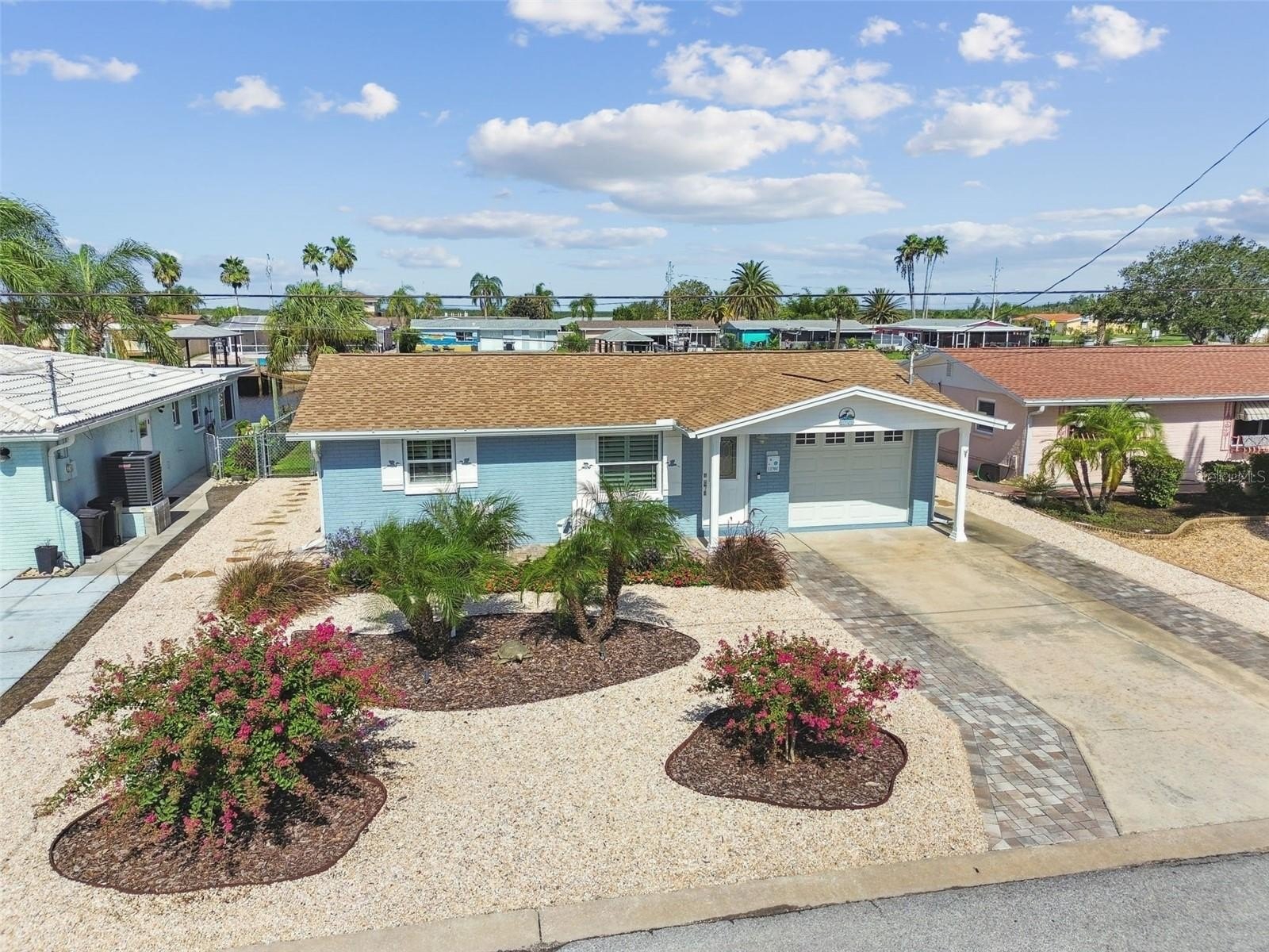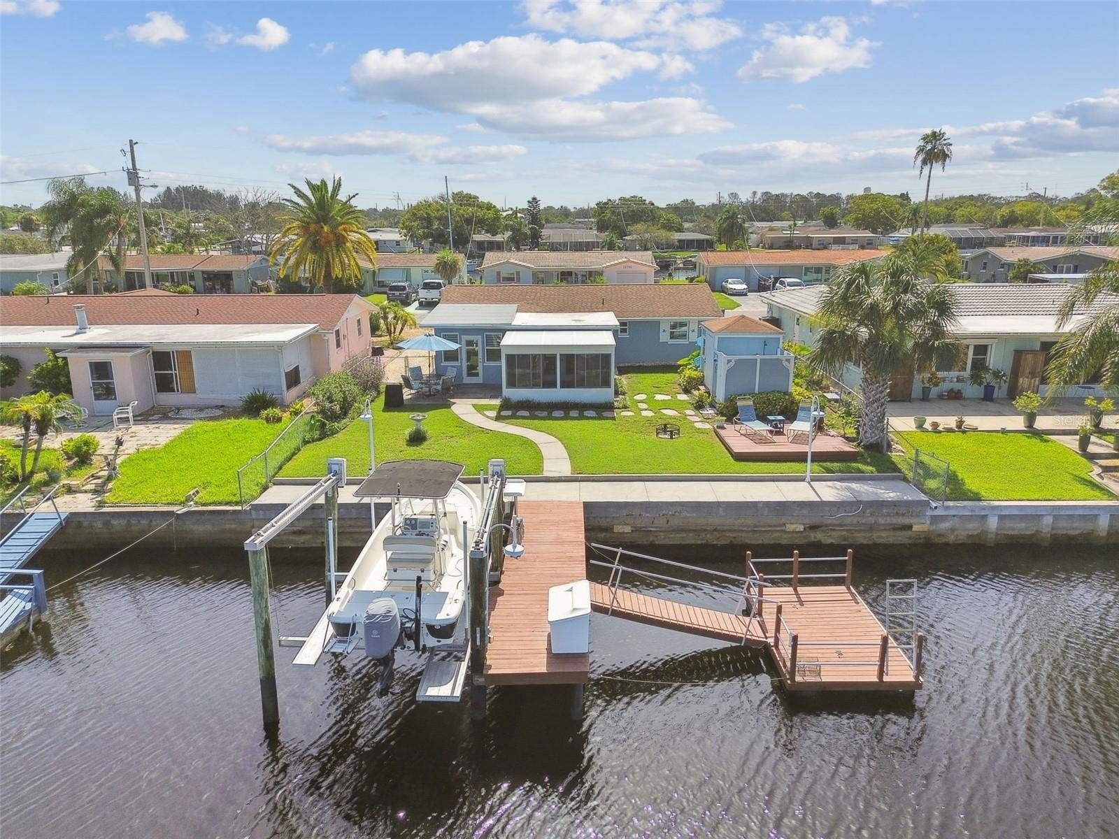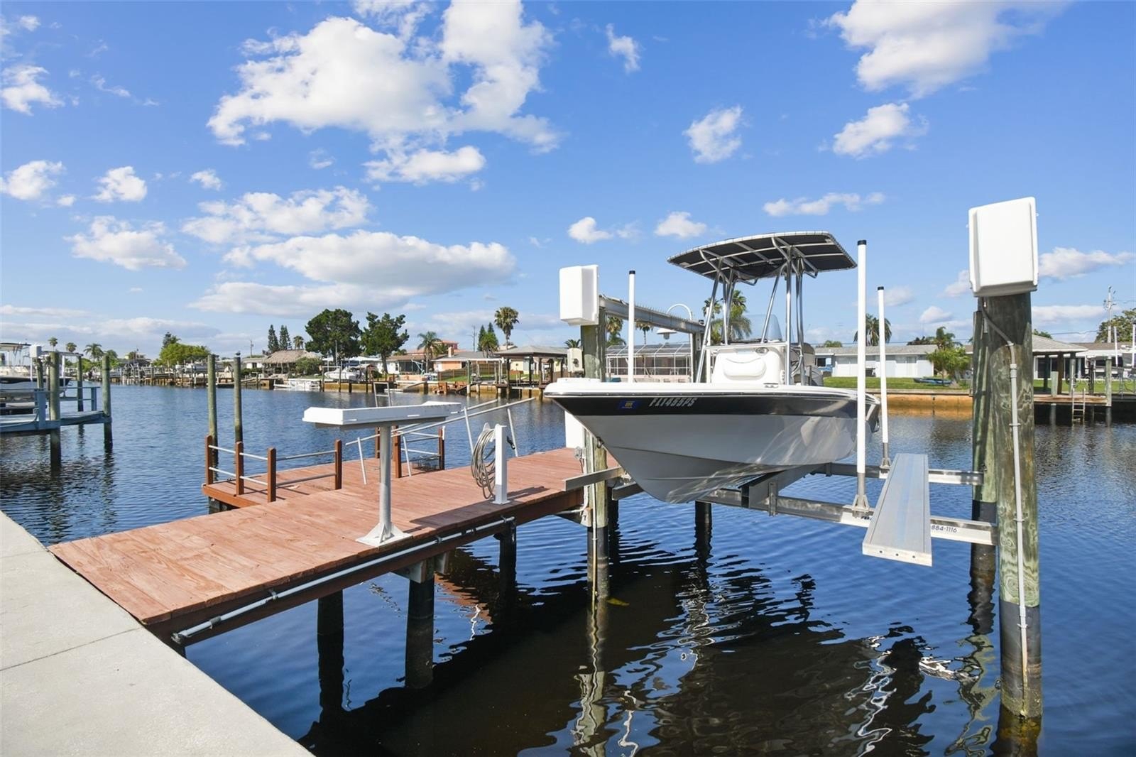 Charming Waterfront Retreat in Leisure Beach! Welcome to this beautifully updated concrete block home in one of Hudson’s most desirable waterfront communities—Leisure Beach. This property features 2 bedrooms, 1.5 baths, plus a versatile bonus room ideal for a guest space, home office, yoga studio, or playroom. Inside, you’ll love the coastal-inspired design with porcelain tile floors throughout, fresh beachy color palette, and 4” plantation shutters. The kitchen boasts new soft-close cabinetry, stainless steel appliances, and subway tile backsplash. Additional upgrades include hurricane-rated windows and doors, tamper-proof safety outlets with USB chargers in every room, and an updated electric panel with an RV hookup. Enjoy year-round relaxation in the spacious all-season screened lanai overlooking a fully fenced, beautifully landscaped backyard—perfect for pets or children. Step outside to your waterfront oasis: a 12’x12’ deck under swaying palms, a floating kayak dock, and an 8,000 lb boat lift with walk-out deck for easy access to the Gulf. With no bridges to navigate, you’ll be fishing, island-hopping, or visiting waterfront restaurants in minutes. After a day on the water, rinse off in the outdoor shower with hot/cold water and unwind under the lighted palms in your coastal-inspired yard, complete with a large storage shed for all your boating gear. This home truly embodies Florida waterfront living—don’t miss your chance to make it yours!